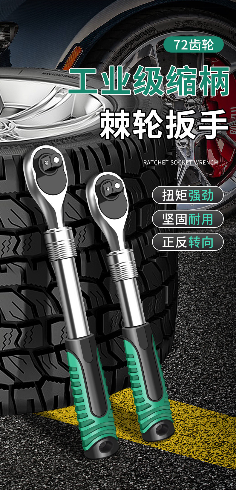 • 1/2 텔레스코픽 래칫 렌치 - 72개 치아 대형 플라이