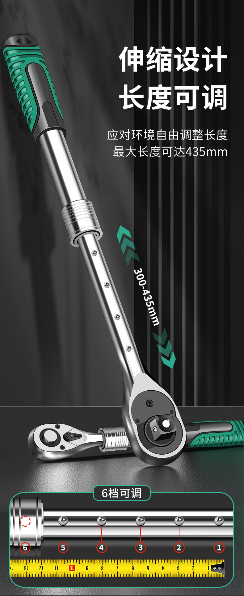 • 1/2 텔레스코픽 래칫 렌치 - 72개 톱니 대형 플라이 + 범용 소켓(11-32mm)