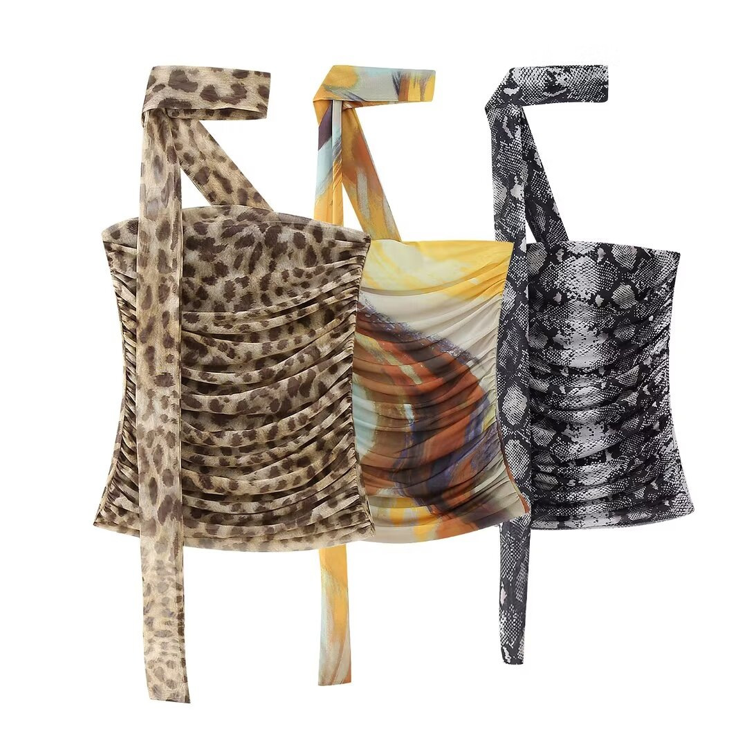 대외 무역 국경 도매 공급 유럽과 미국 2024 봄 새로운 여성 동물 인쇄 실크 그물 튜브 상단 오버 스커트 인쇄