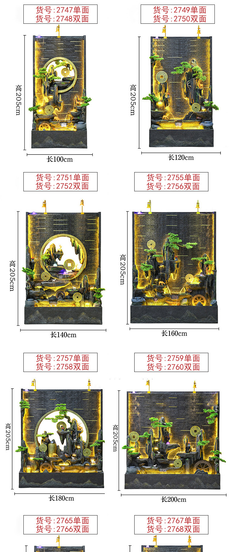 물 커튼 벽 흐르는 물 스크린 바위 분수 거실 안뜰 물고기 연못 발코니 실내 풍경 물고기 탱크 풍수 바퀴 장식품스토어 가기