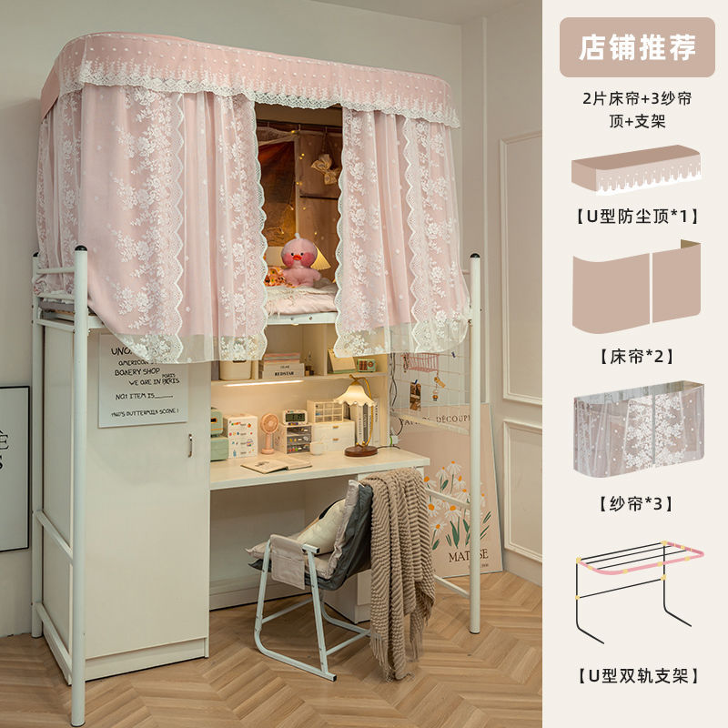 프랑스 프린세스 스타일 여성 학생 침대 커튼 U 자형 트랙 기숙사 상하 장차 커튼 기숙사 모기장 통합스토어 가기