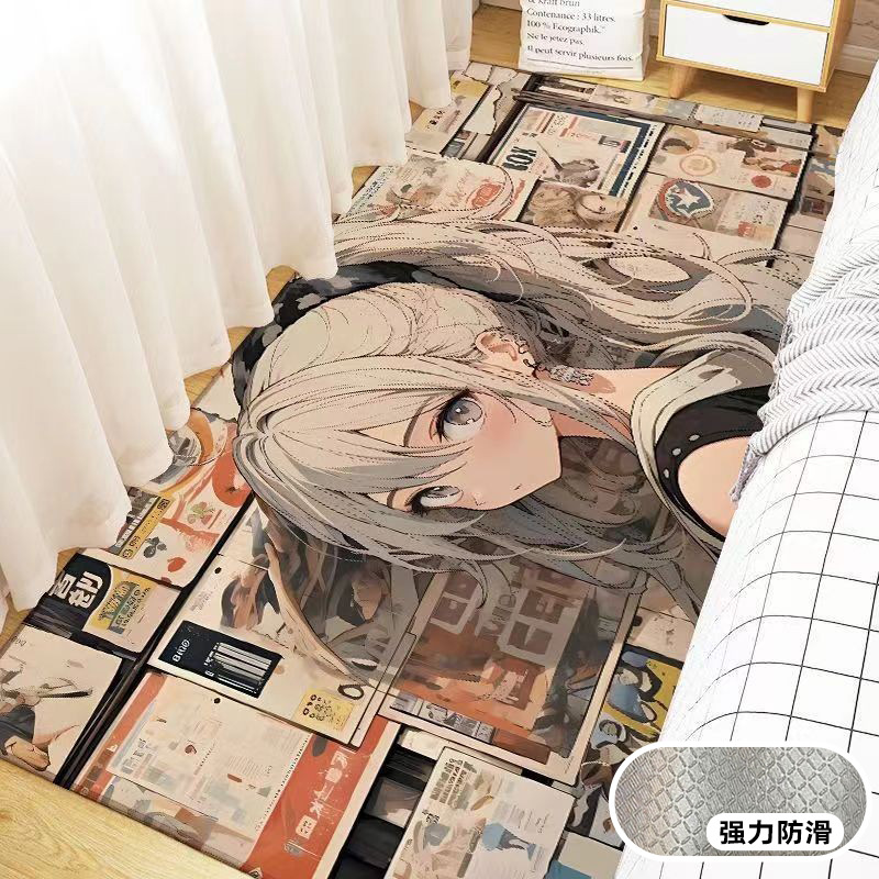 신문 소녀 만화 카펫 홈 침실 모조 캐시미어 침대 옆 담요 인터넷 인기 소녀 긴 미끄럼 방지 더러운 바닥 매트
