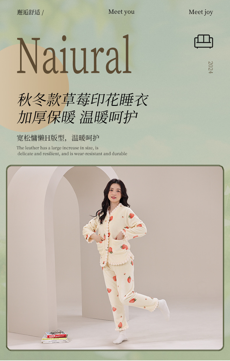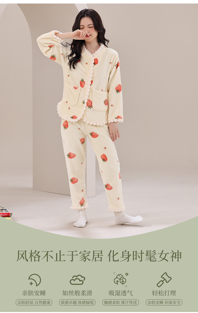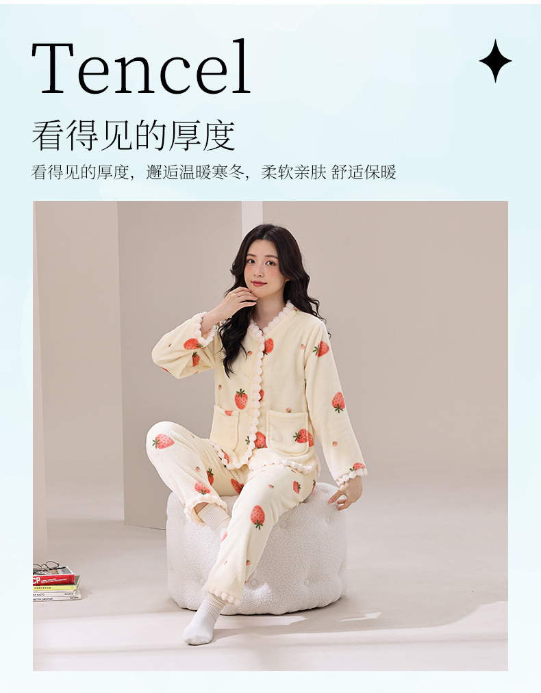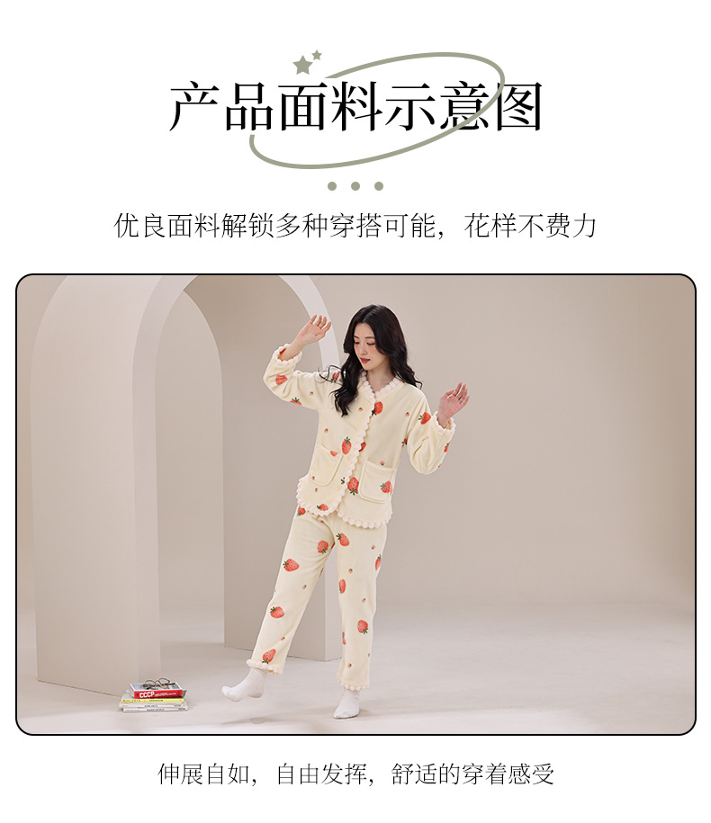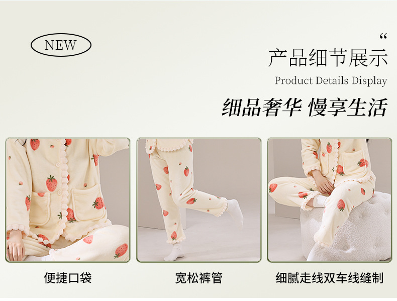 산호 양털 잠옷 여성의 기모 가을 겨울 럭셔리 작은 딸기 귀여운 스타일 홈 의류 플란넬 세트스토어 가기