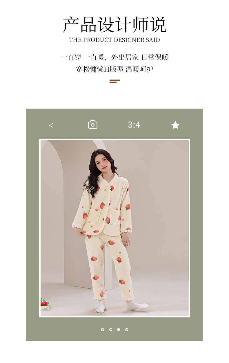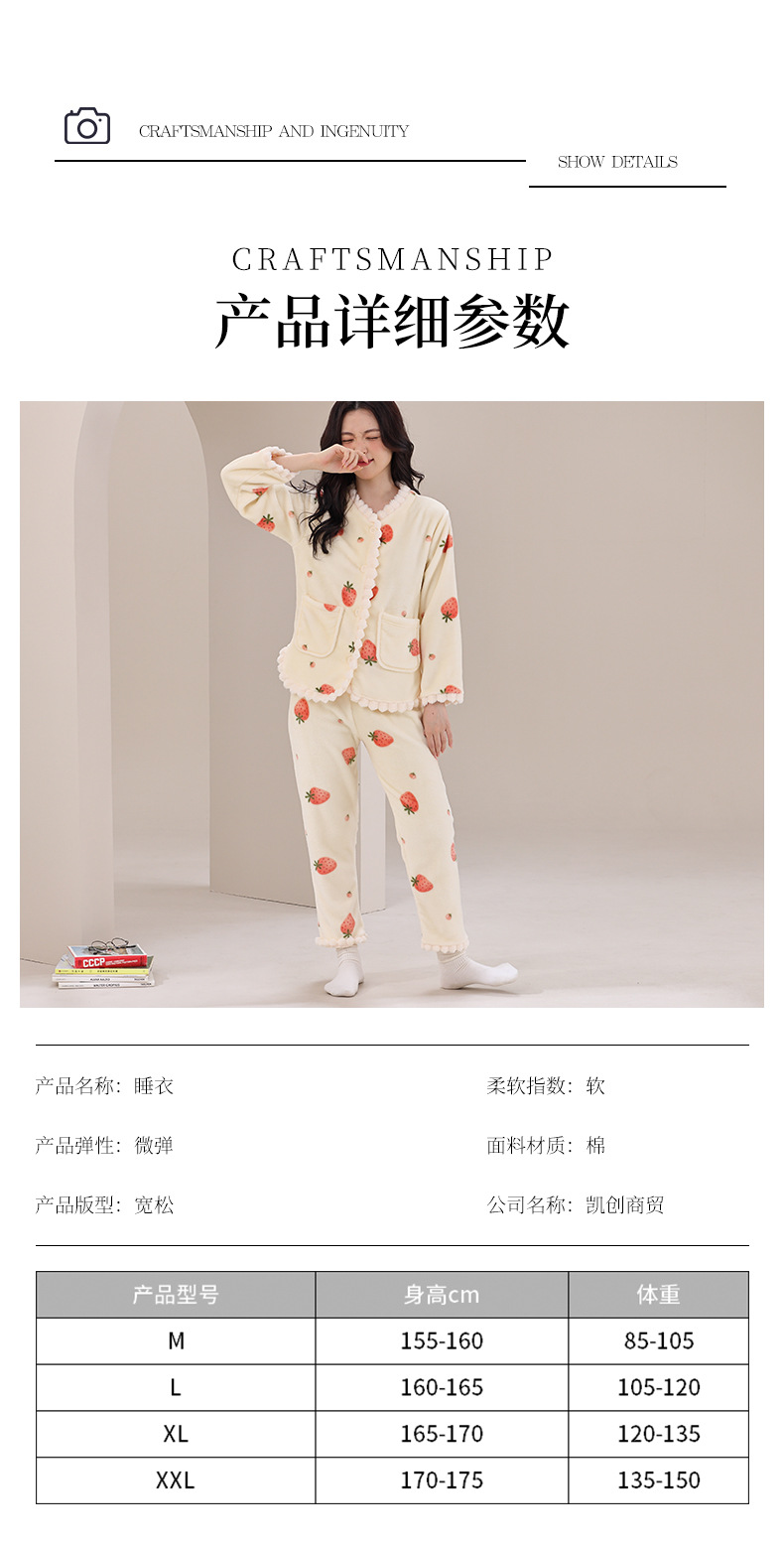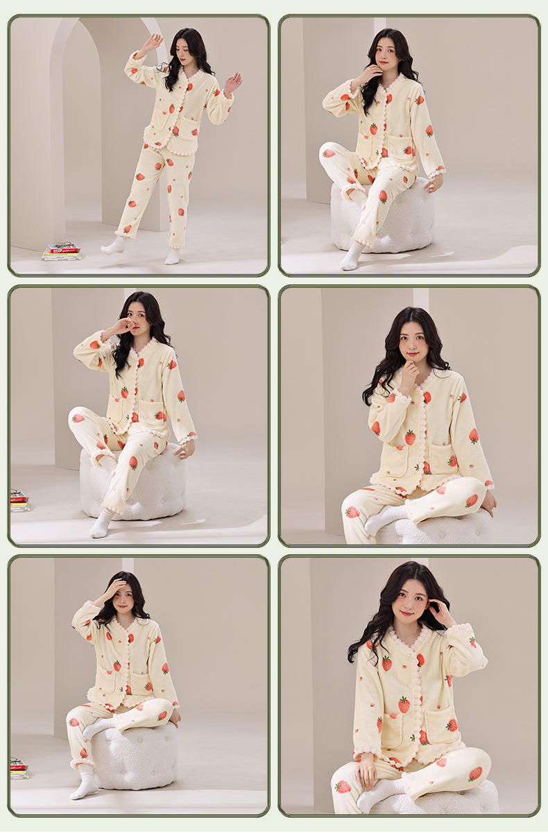 산호 양털 잠옷 여성의 기모 가을 겨울 럭셔리 작은 딸기 귀여운 스타일 홈 의류 플란넬 세트스토어 가기