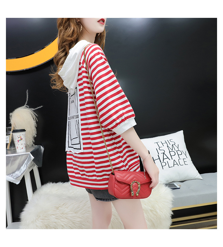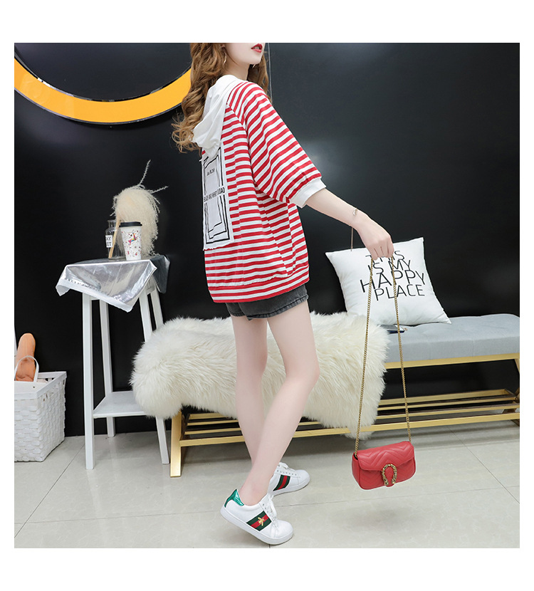 2026 여름 학생 후드 티셔츠 여성 반팔 한국 스타일 루즈핏 대형 티셔츠 ins 학생 반팔 상의스토어 가기