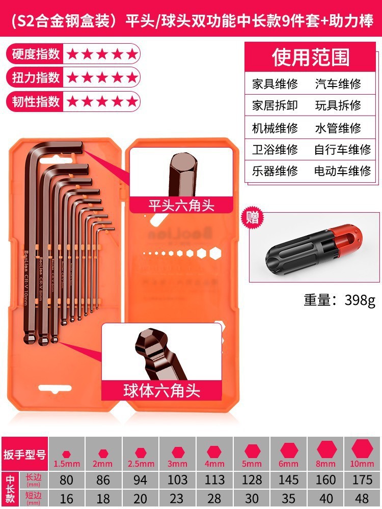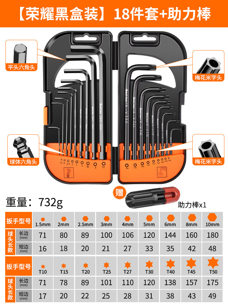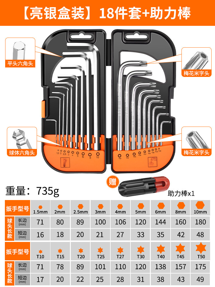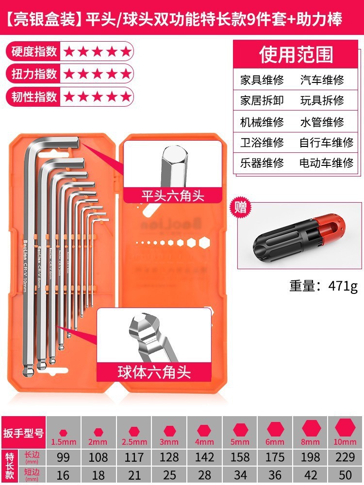 앨런 렌치 세트 내부 육각형 6 에지 Torx 렌치 긴 육각형 미터 드라이버 도구스토어 가기