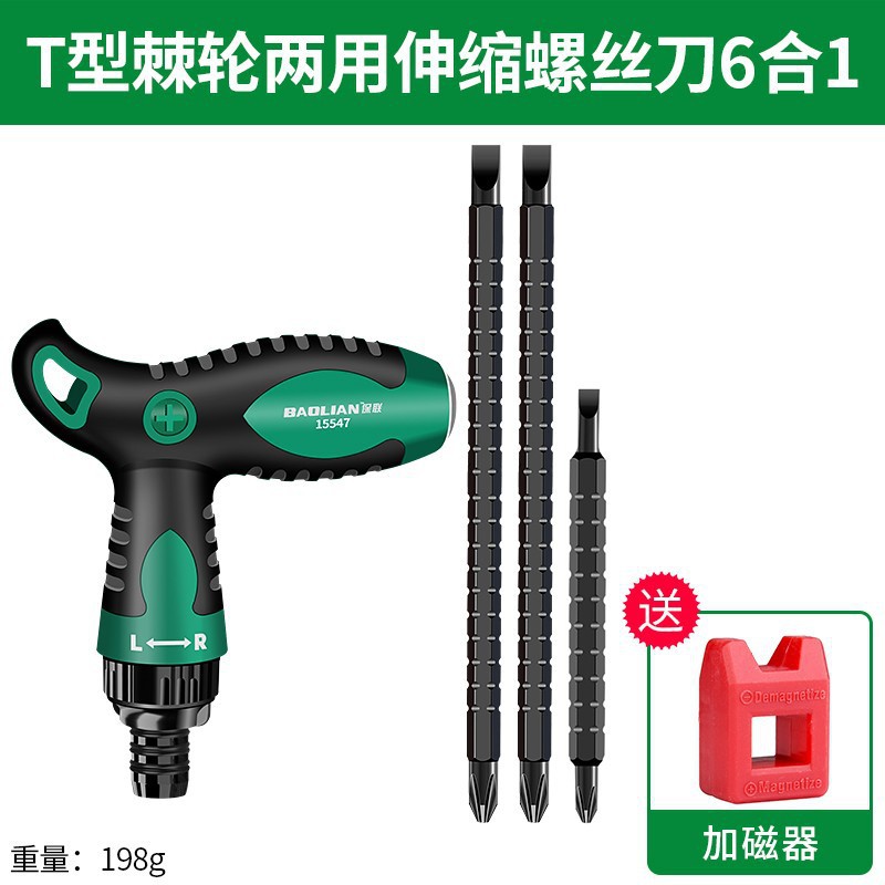• T자형 래칫 이중 목적 텔레스코픽 드라이버 6-in-1 [자석 포함]
