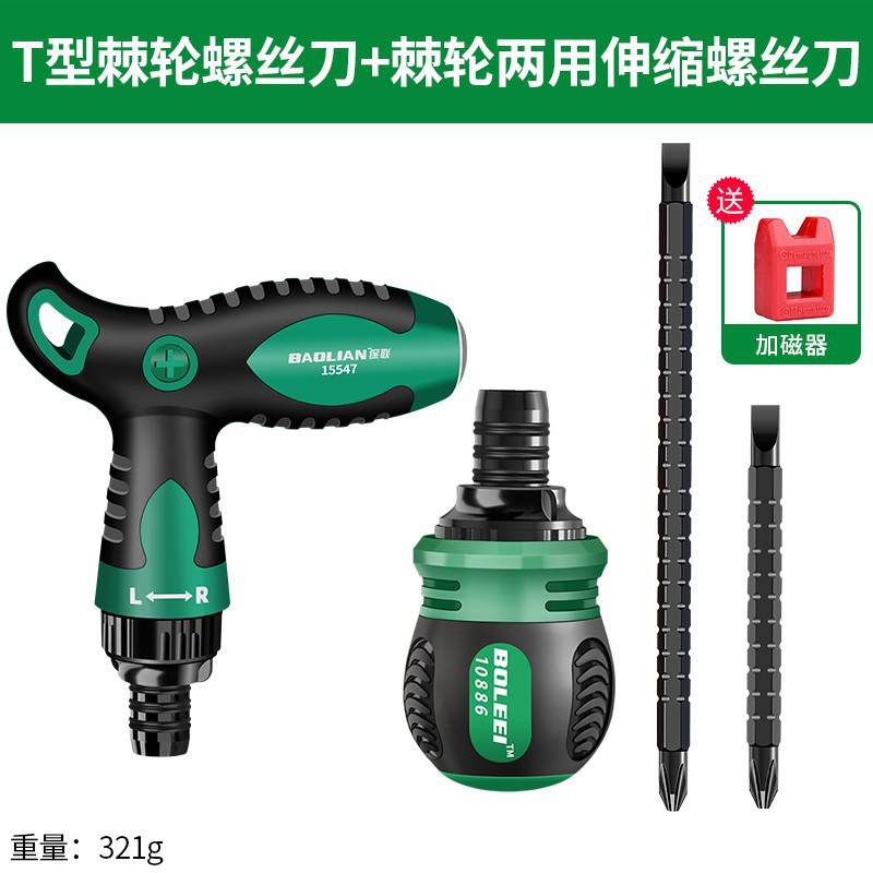 • T자형 래칫 드라이버 + 래칫 이중 목적 텔레스코픽 드라이버 [자석 포함]
