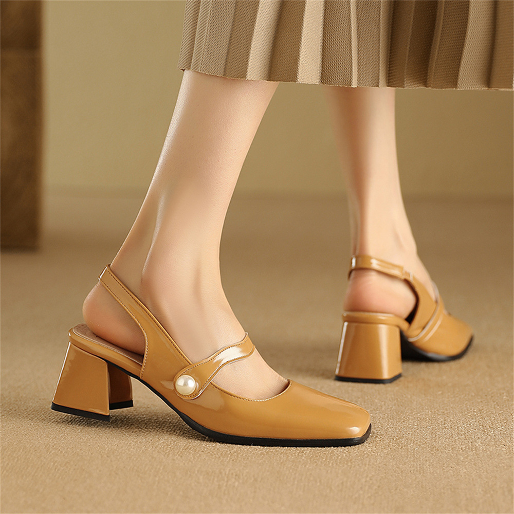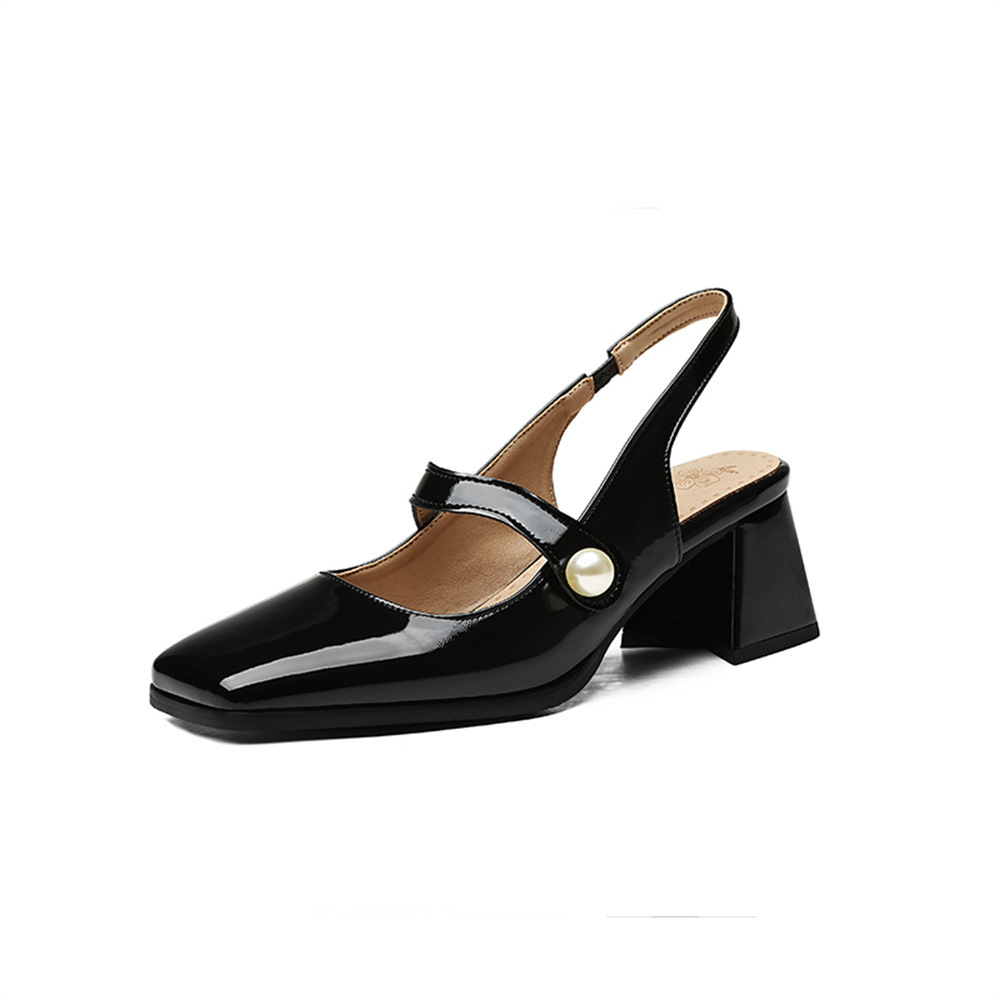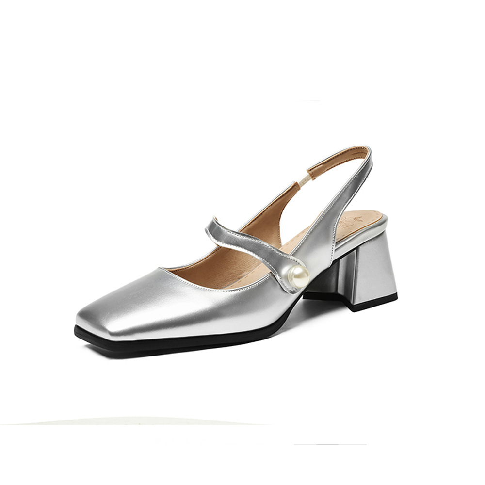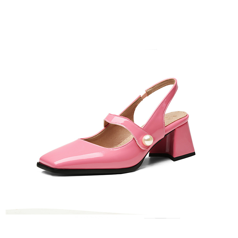2024 여름 새로운 대외 무역 하이힐 32-48 사이즈 스퀘어 헤드 작은 신선한 진주 숙녀 샌들