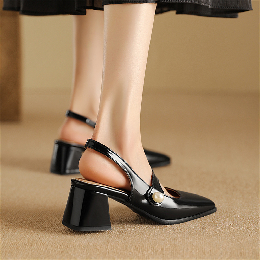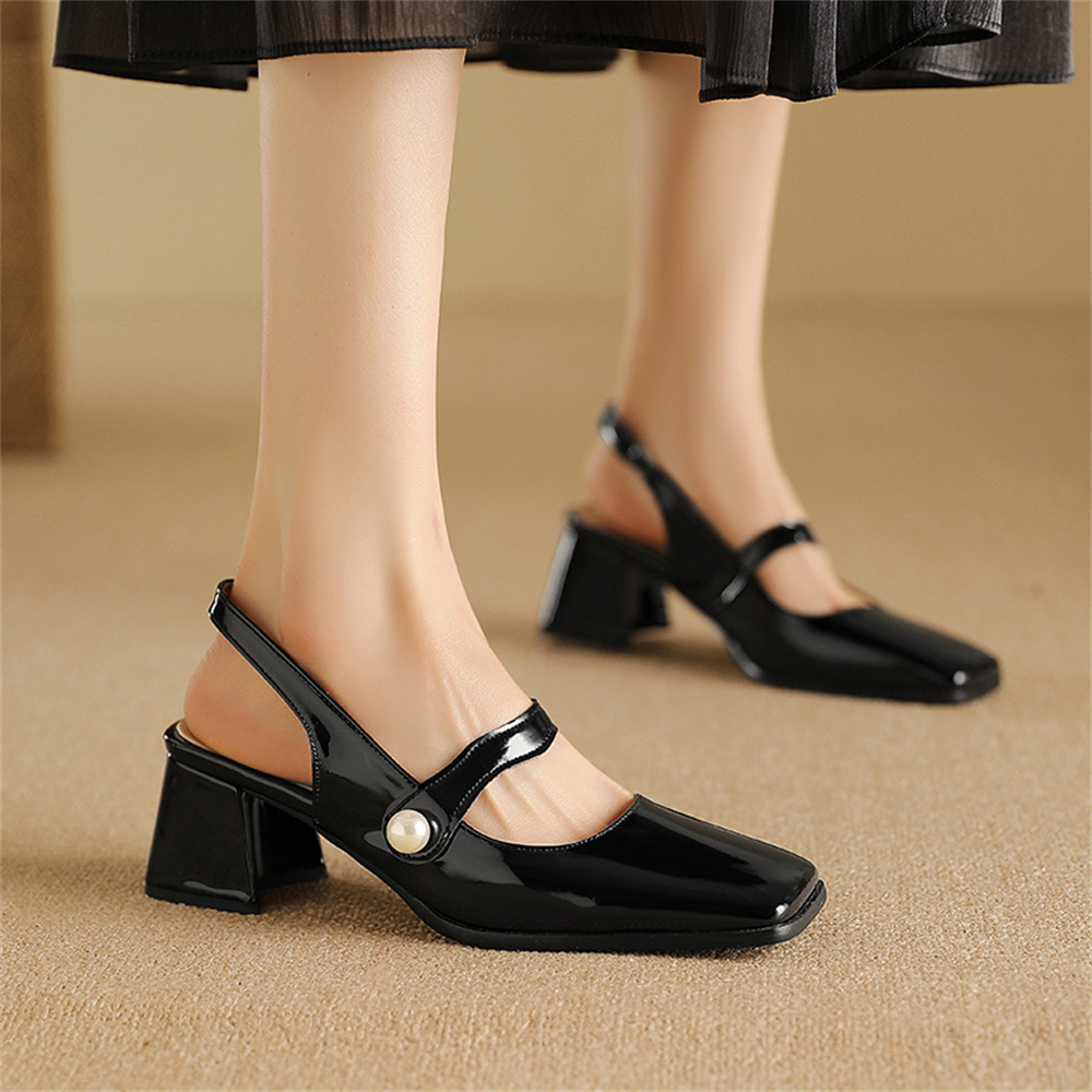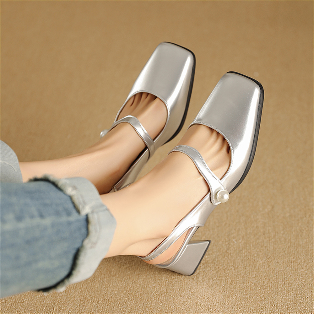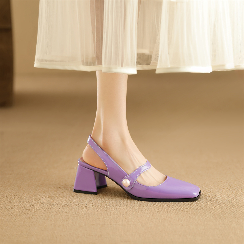 2024 여름 새로운 대외 무역 하이힐 32-48 사이즈 스퀘어 헤드 작은 신선한 진주 숙녀 샌들