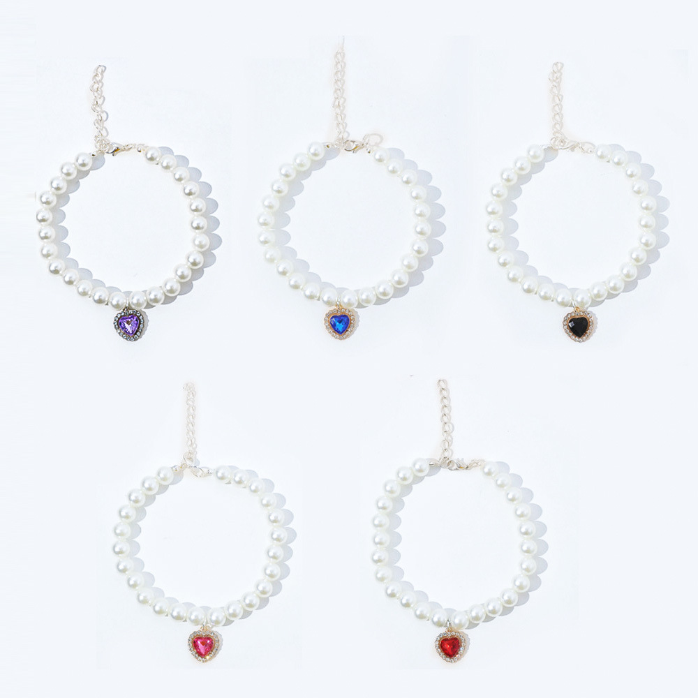 고양이 목걸이 진주 활 목걸이 펜던트 편안한 패션 작은 개 목걸이 애완 동물 장식 도매