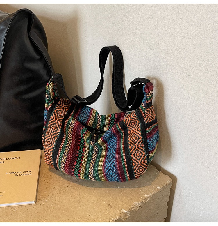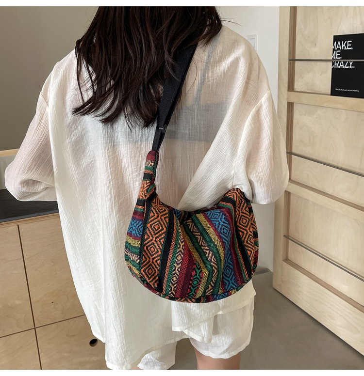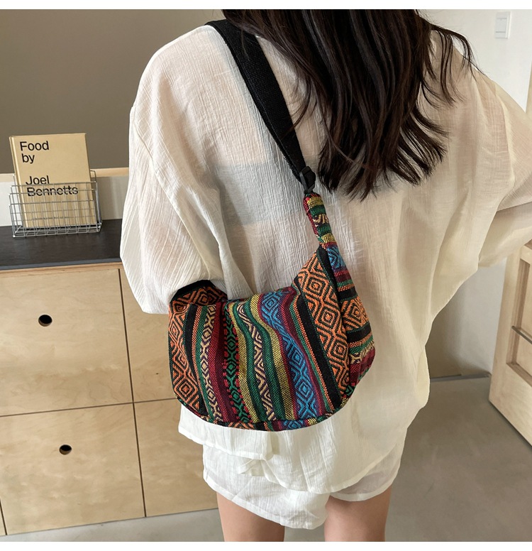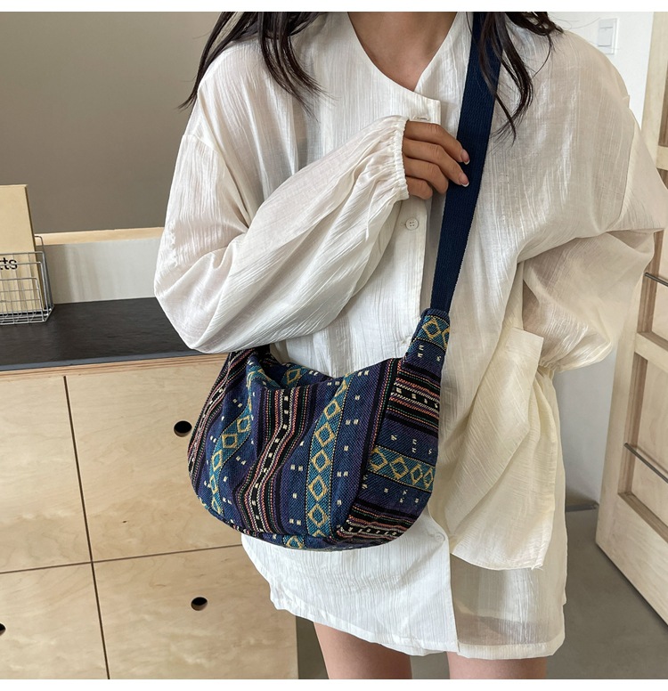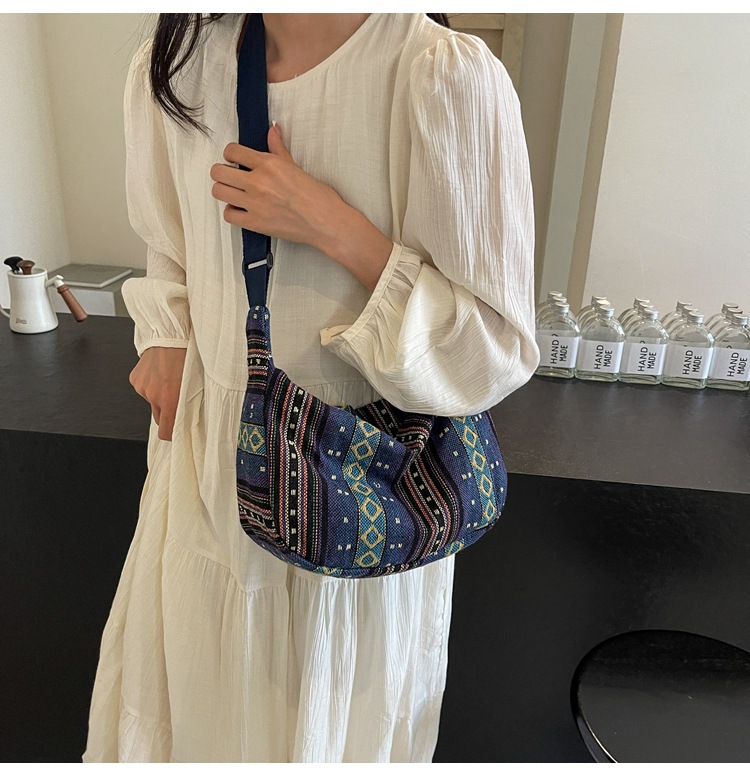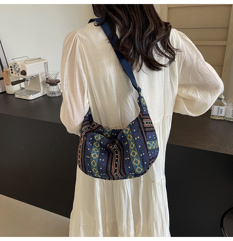 대용량 민족 스타일 가방 2024 새로운 유행 유행 크로스 바디 만두 백 Instagram 스타일 레트로 올 매치 숄더 백