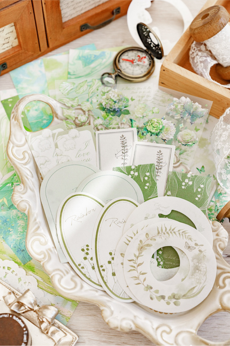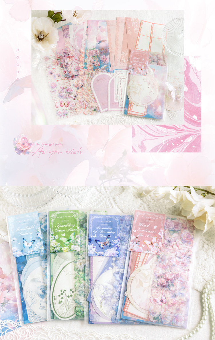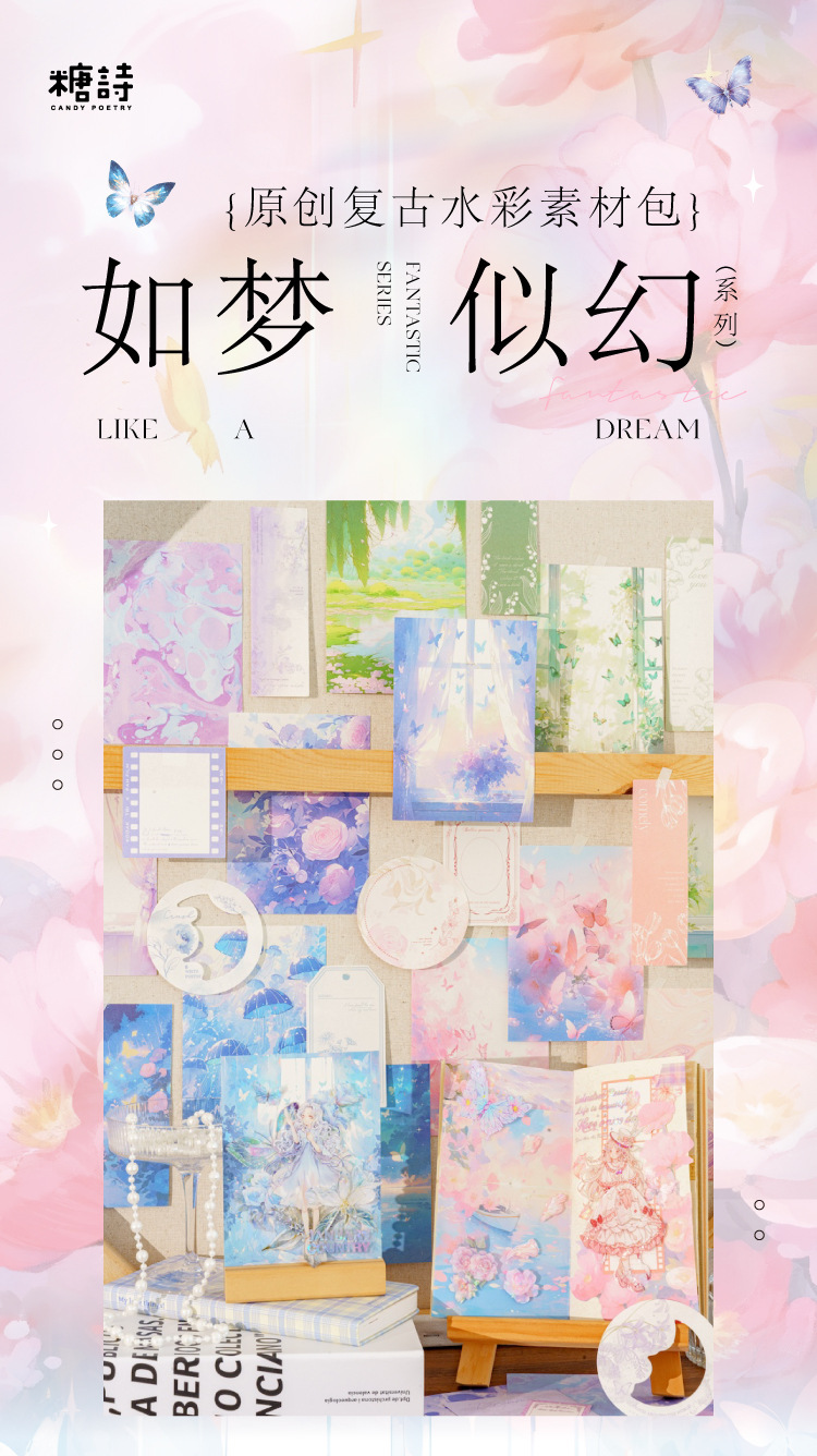 설탕시 소재 가방 꿈 같은 시리즈 INS 수채화 꽃 나비 손 계정 통증 가방 DIY 장식 배경 종이