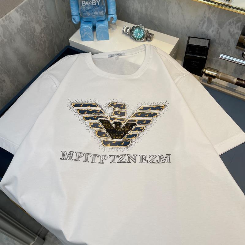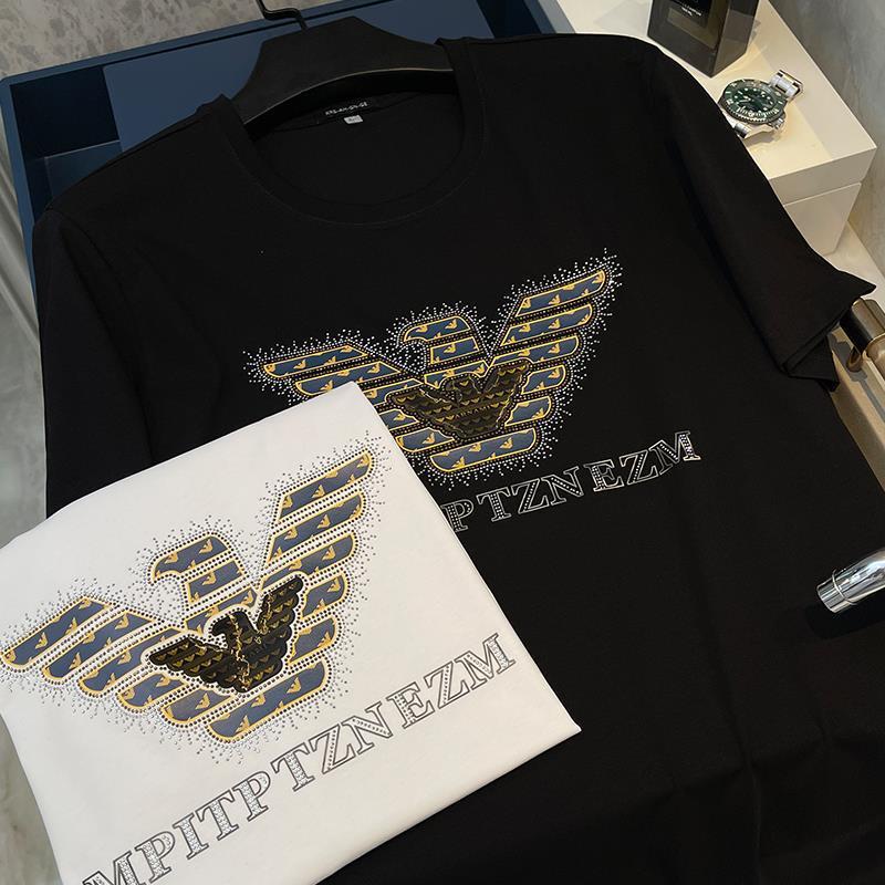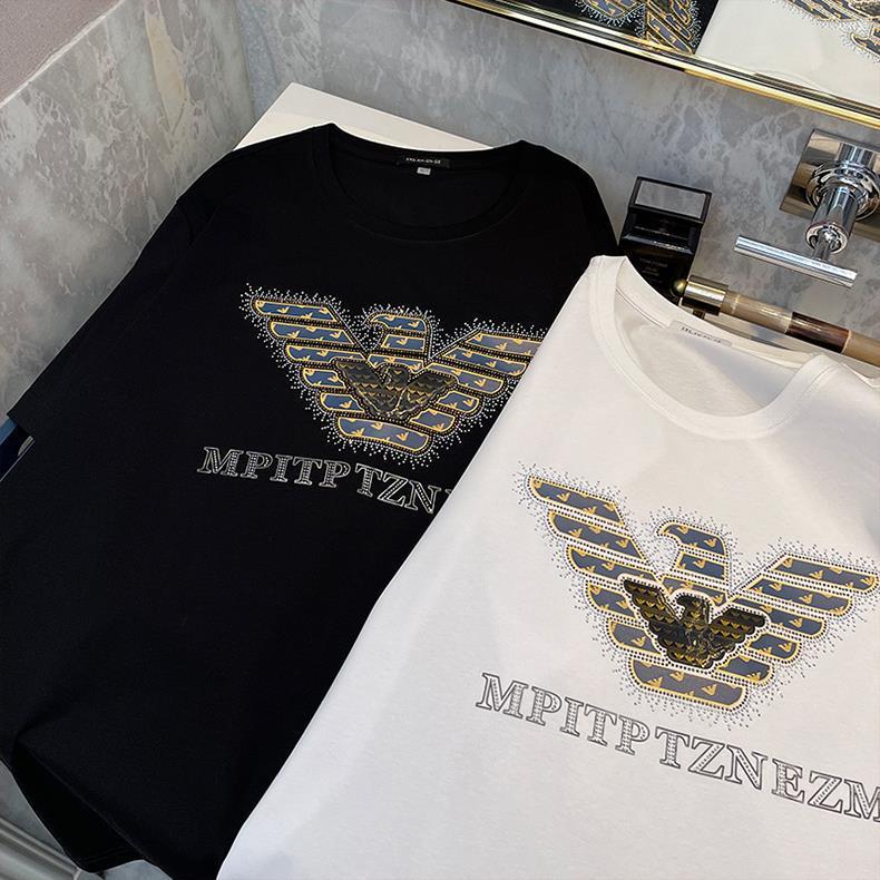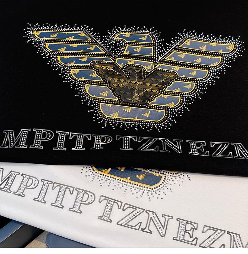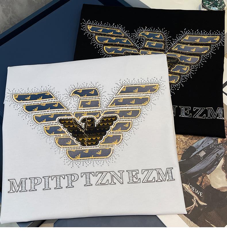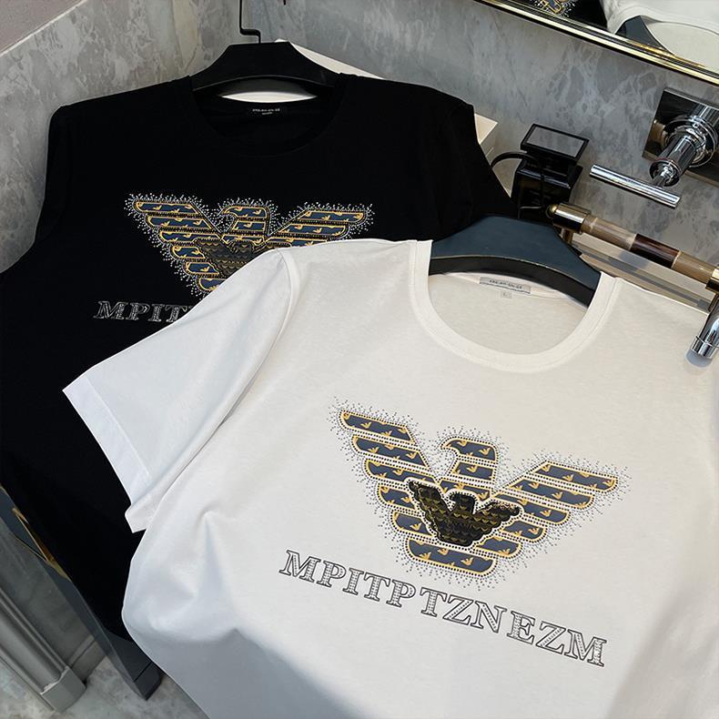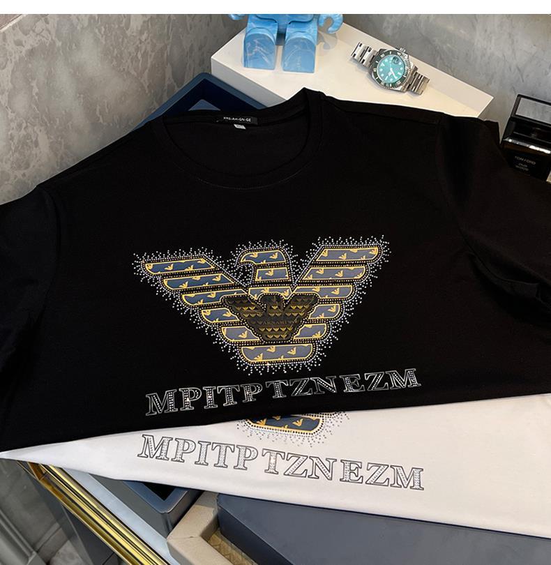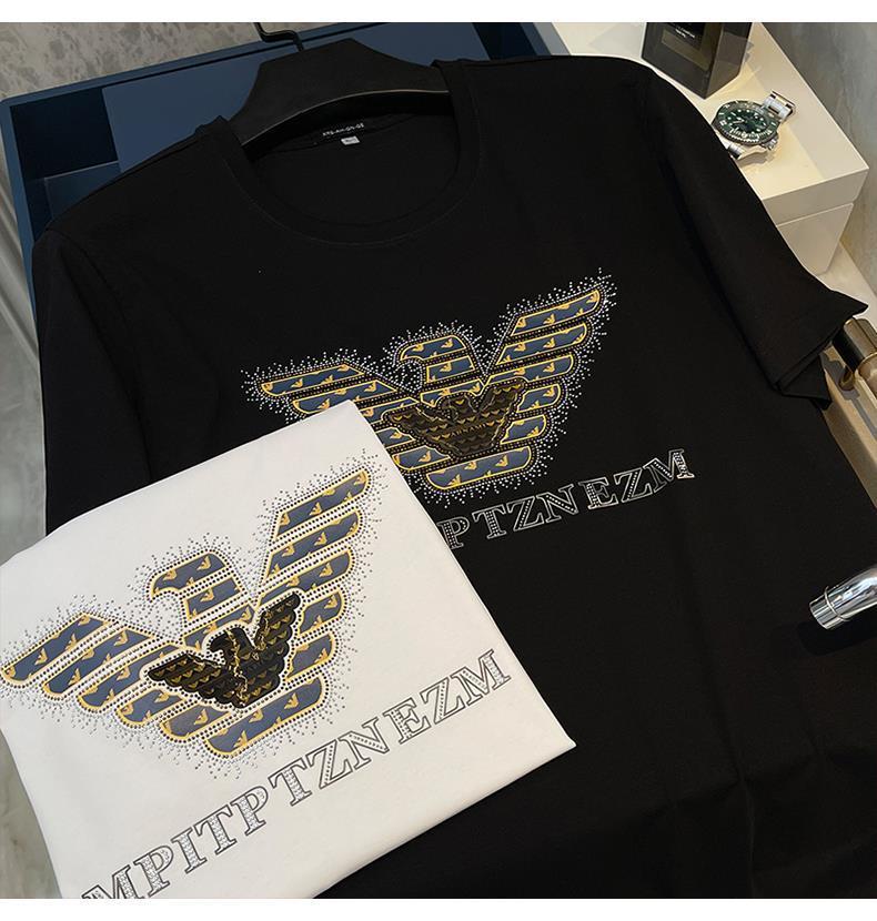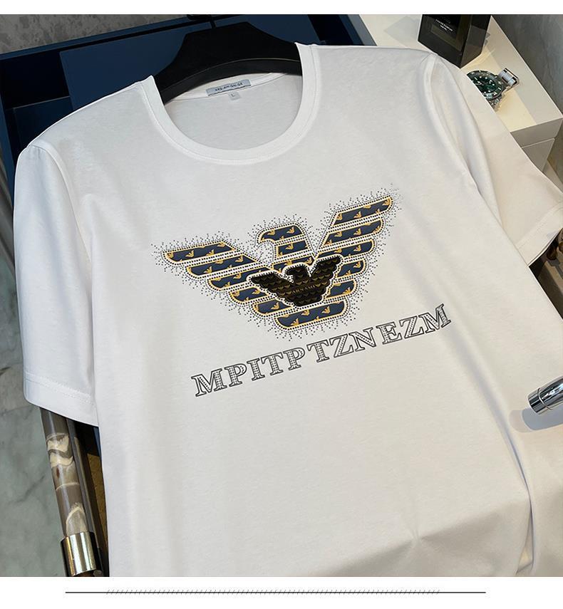 유럽 역 하이 퀄리티 남성 반팔 티셔츠 맞춤형 트렌드 핫 드릴링 여름 하이 엔드 퓨어 코튼 얇은 라운드 넥 퓨어 코튼 T스토어 가기
