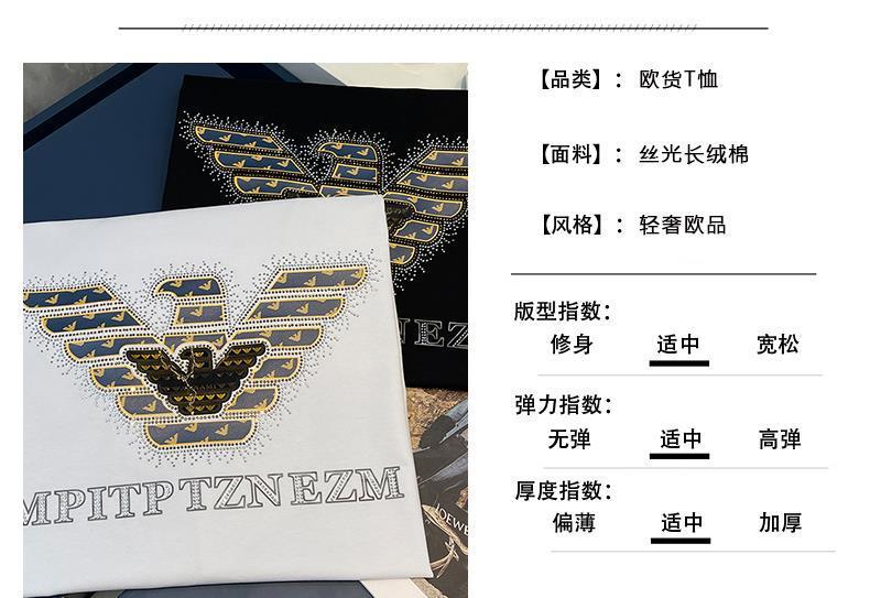 유럽 역 하이 퀄리티 남성 반팔 티셔츠 맞춤형 트렌드 핫 드릴링 여름 하이 엔드 퓨어 코튼 얇은 라운드 넥 퓨어 코튼 T