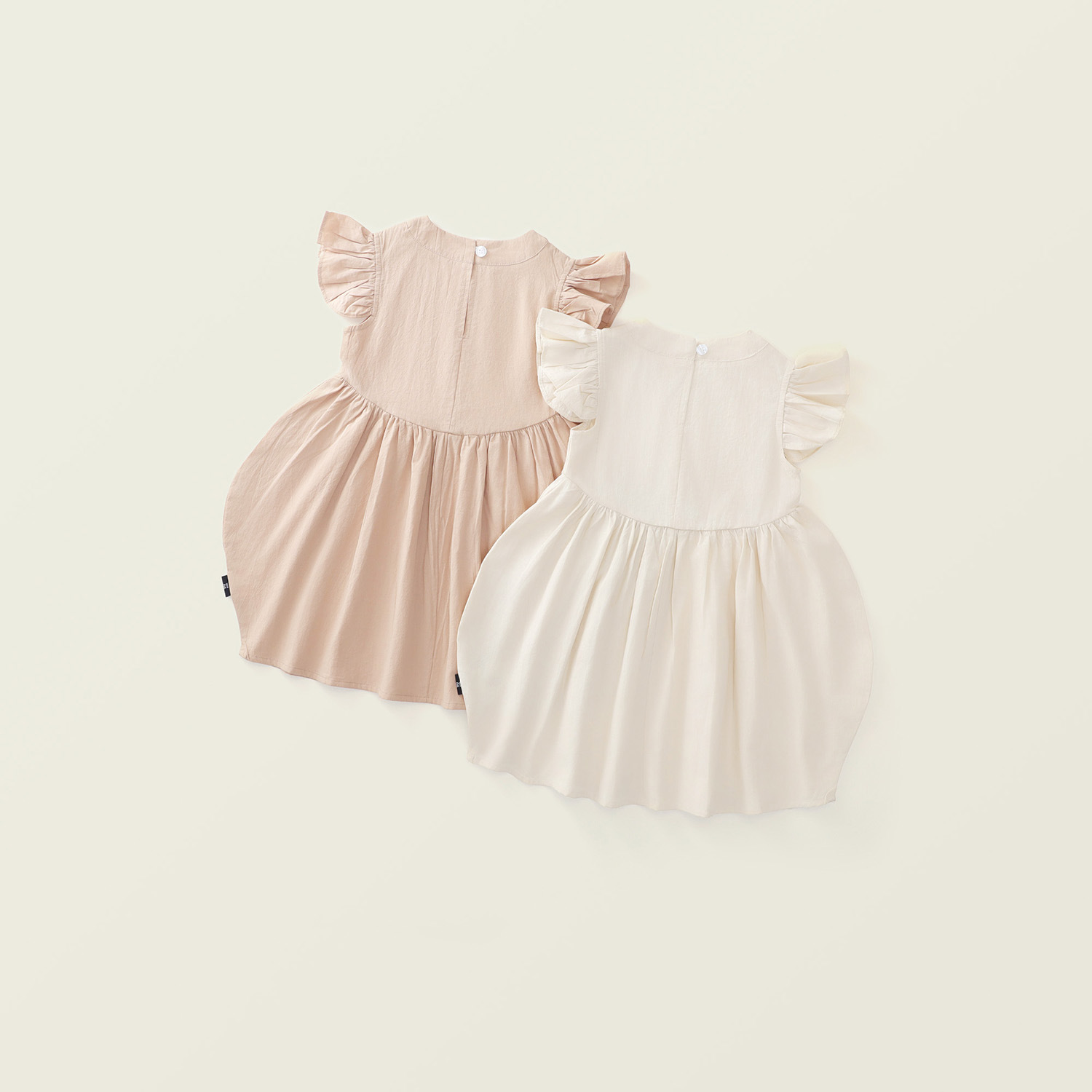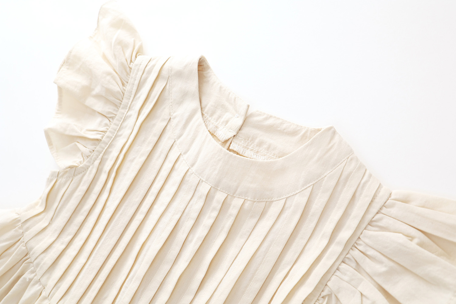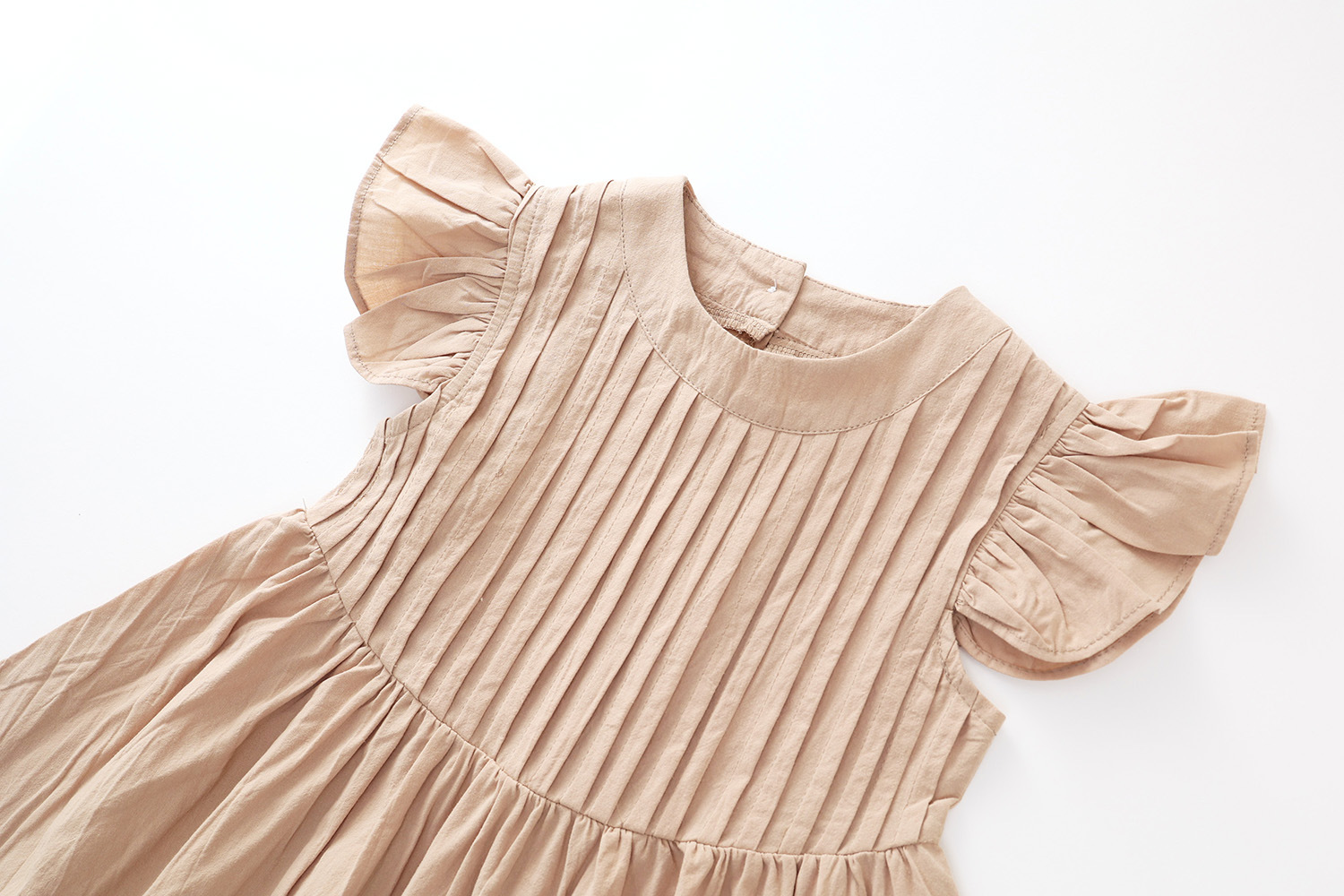 MDD 한국 스타일 아동복 프랑스 주름 원피스 2024 여름 스타일 수직 칼라 플라잉 슬리브 달콤한 공주 원피스 공주 원피스스토어 가기