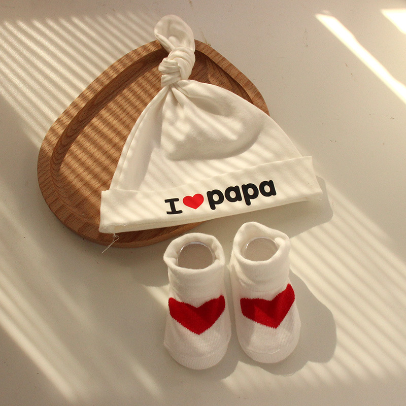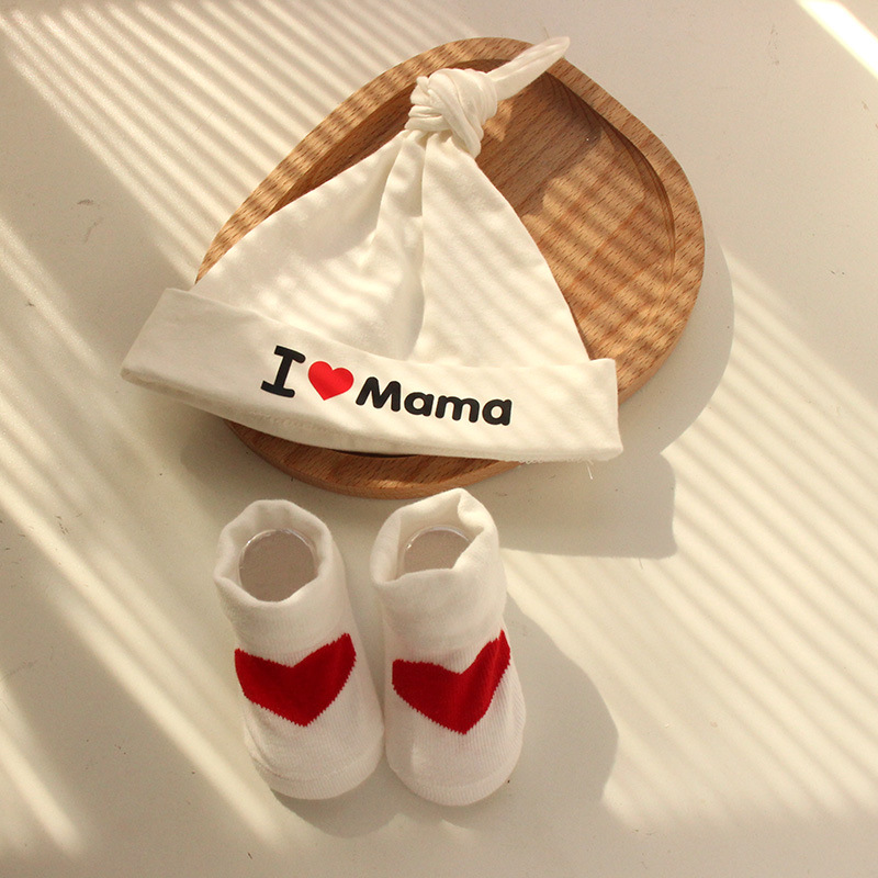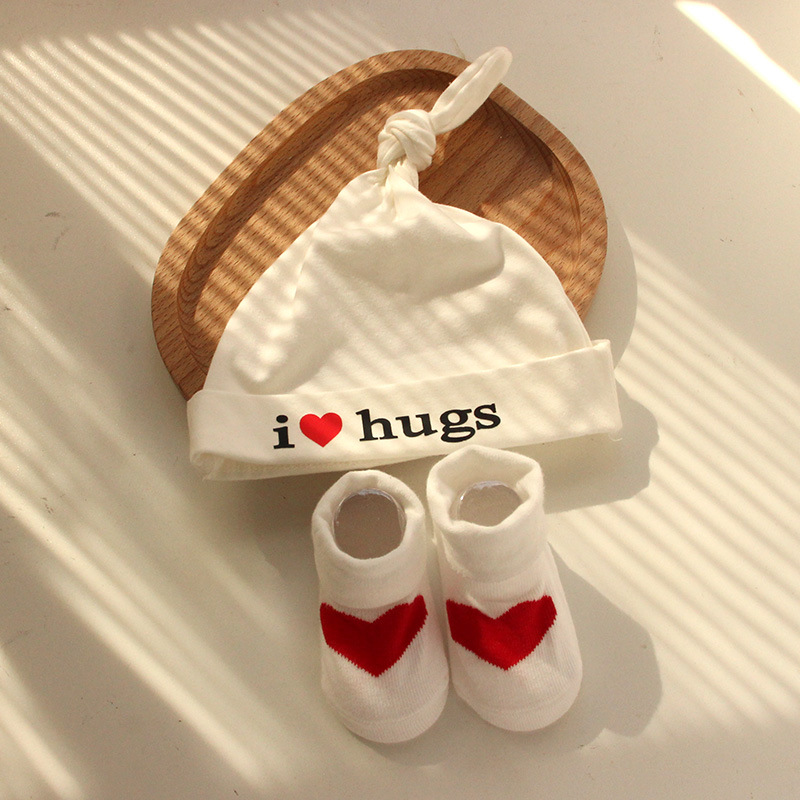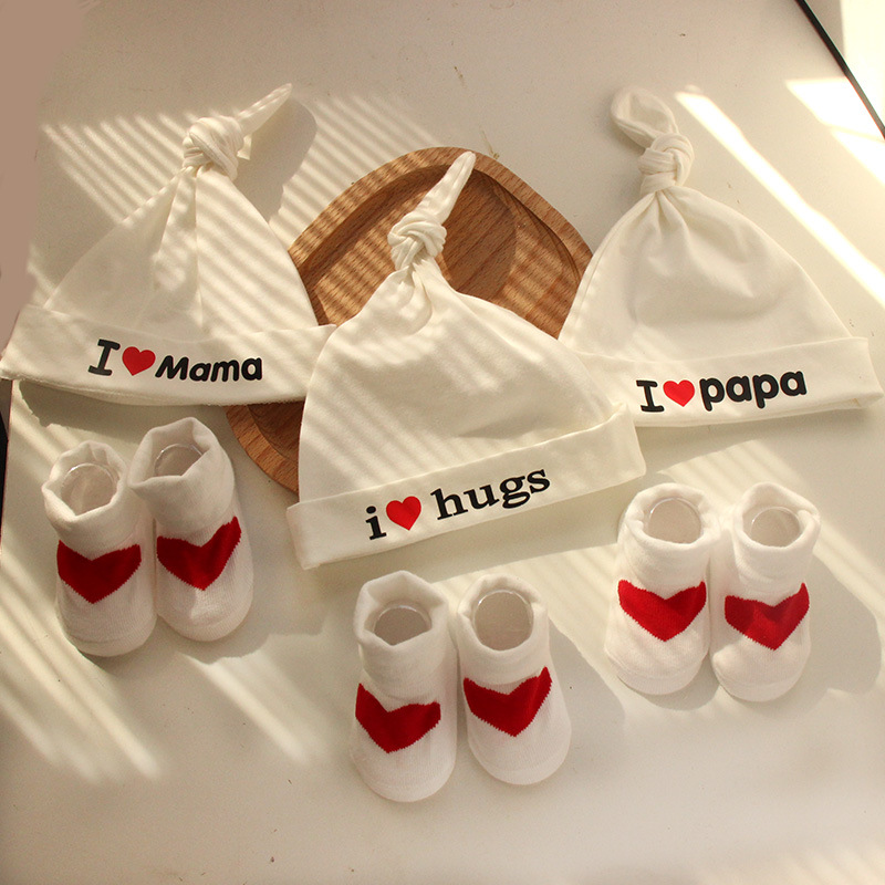 흰색 아기 모자 양말 여성 어린이 작은 달 나이 아기 귀여운 아기 봄과 가을 모자 안티 슬립 양말 세트스토어 가기