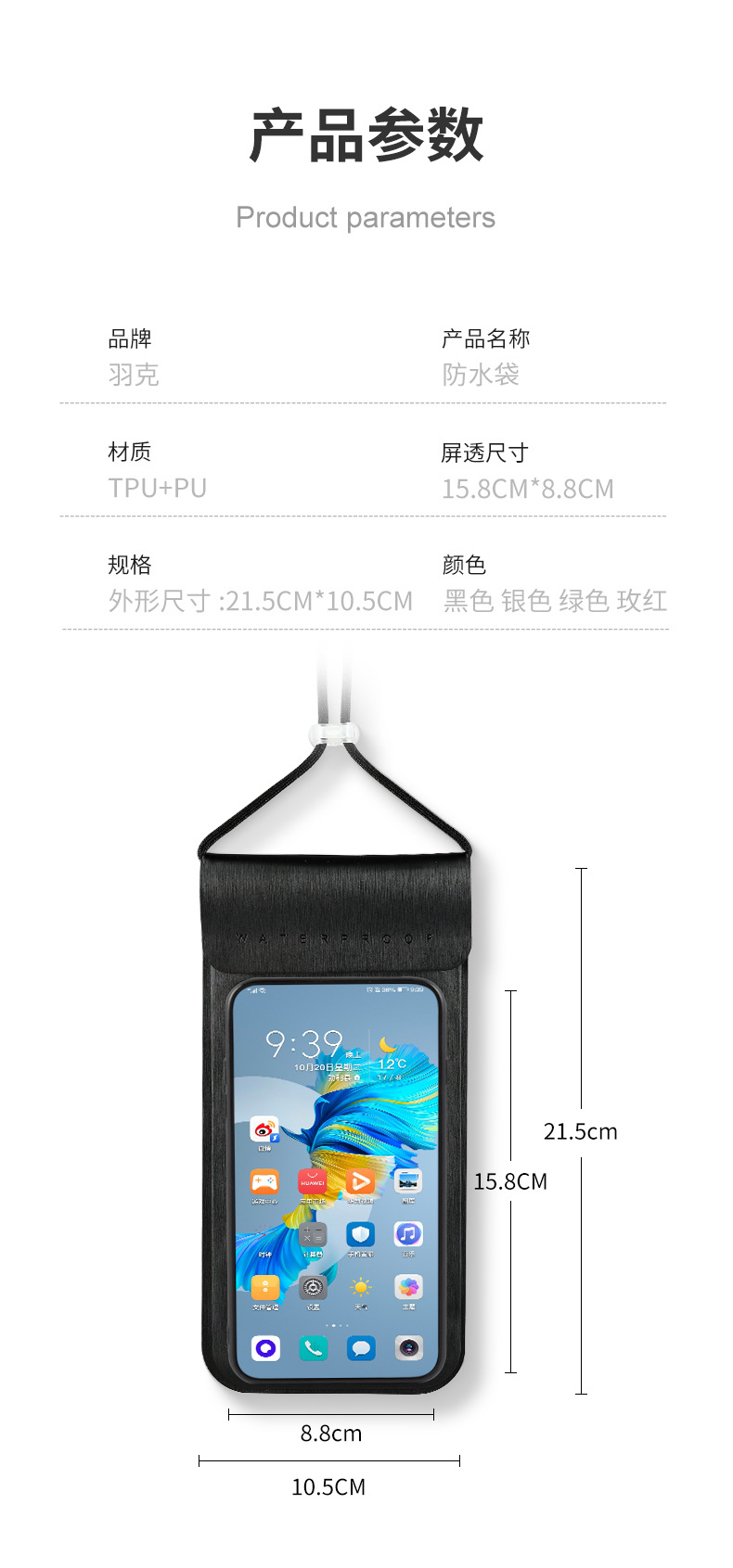휴대 전화 방수 가방 터치 스크린 수영 테이크 아웃 특수 온천 투명 밀봉 된 가방 끈 교수형 목 방수 휴대 전화 케이스