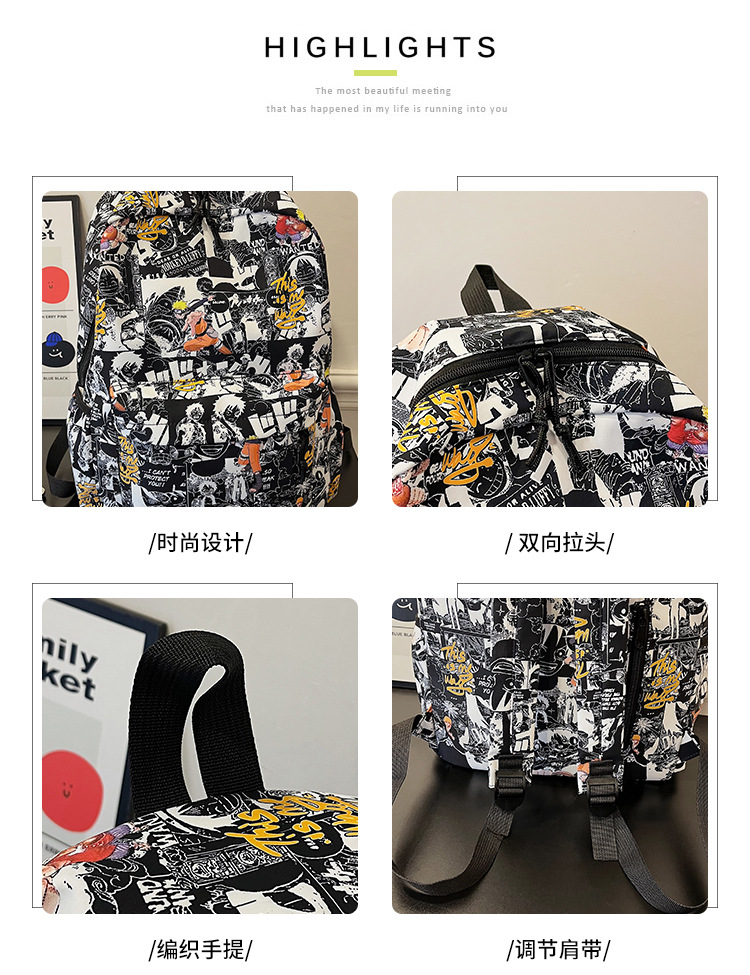 국경 간 Ins 귀여운 만화 배낭 여성 일본 유행 쿨 스쿨백 남자 대학 스타일 주니어 고등학교 대학 배낭