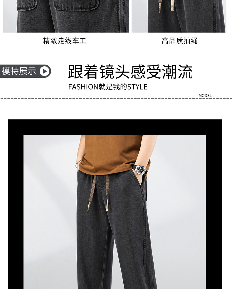 남성용 텐셀 와이드 레그 청바지 가을 두꺼운 2024 남성용 새로운 루즈 스트레이트 아이스 실크 드레이프 캐주얼 바지스토어 가기