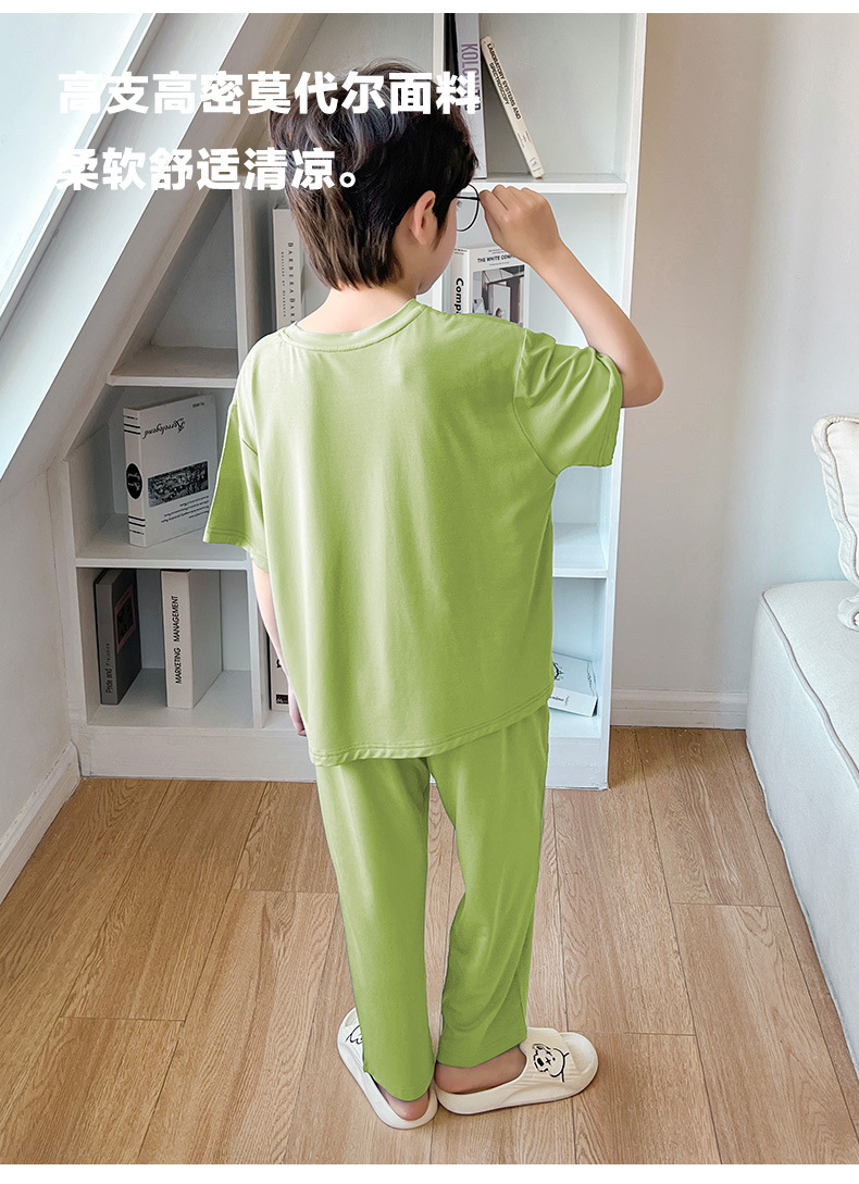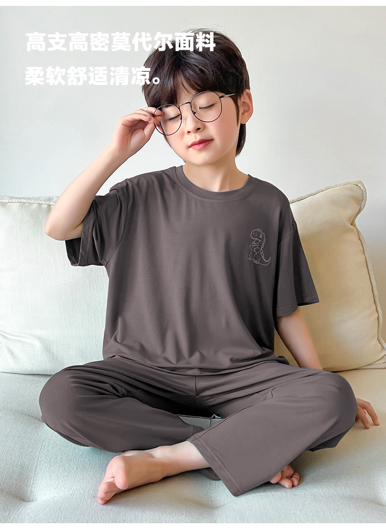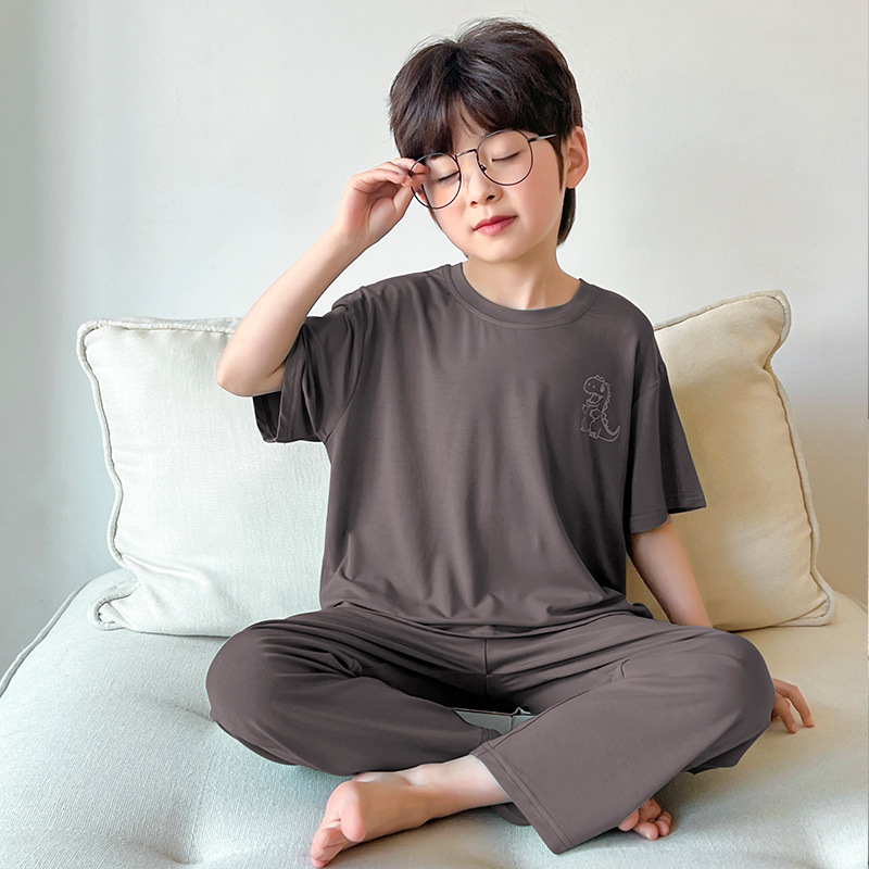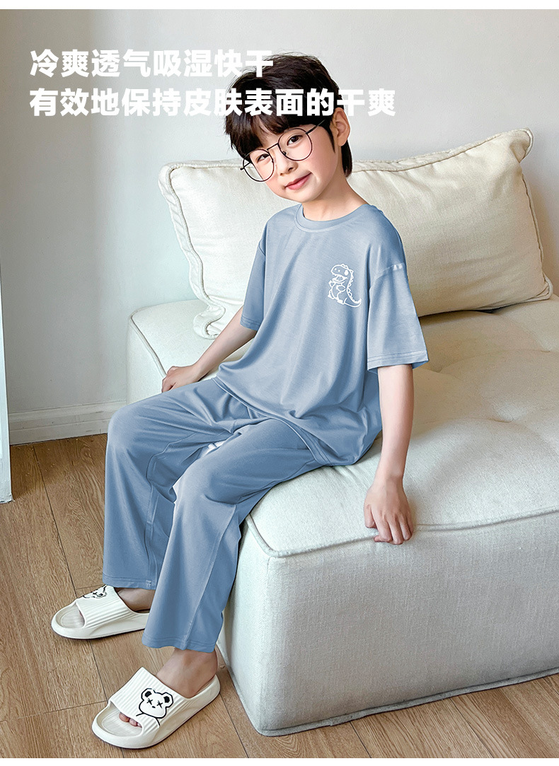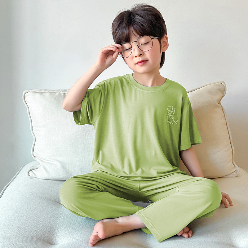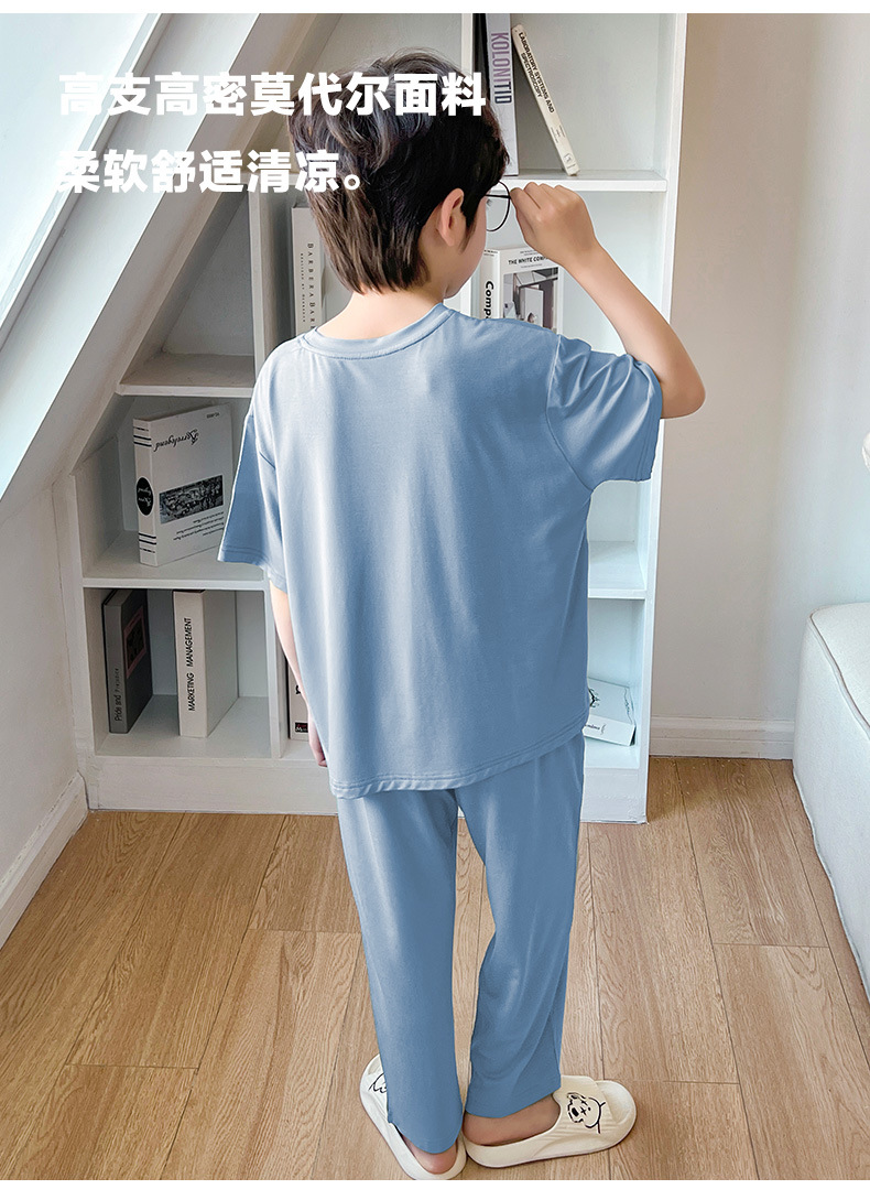 여름 모달 소년 잠옷 반팔 바지 세트 얇은 부드러운 편안한 가벼운 스포츠 스타일 야외 홈 옷스토어 가기