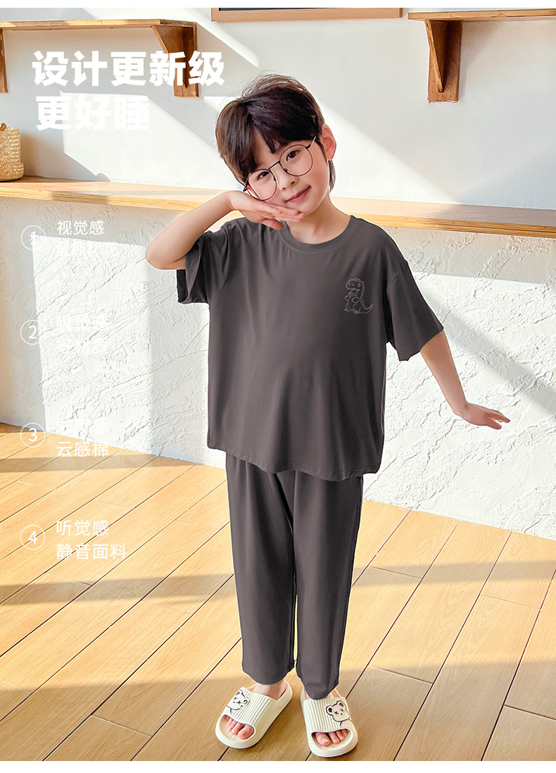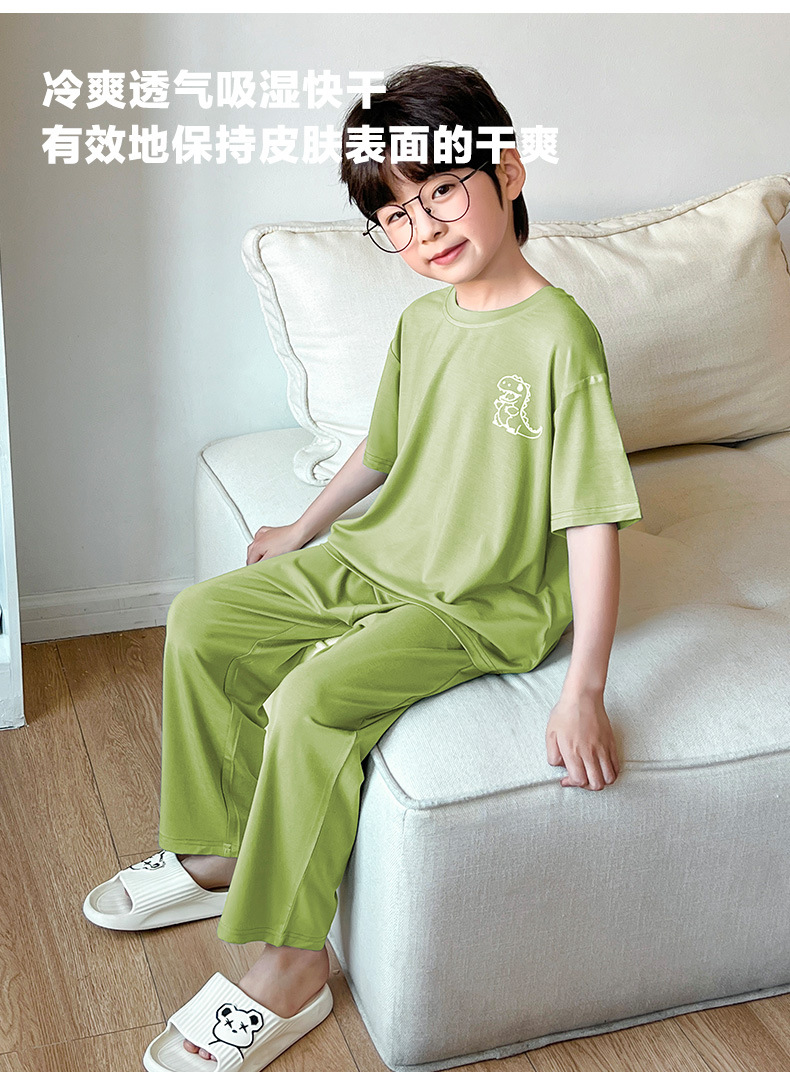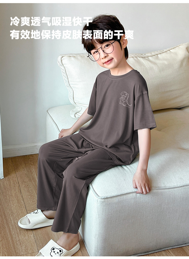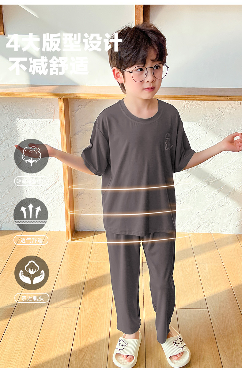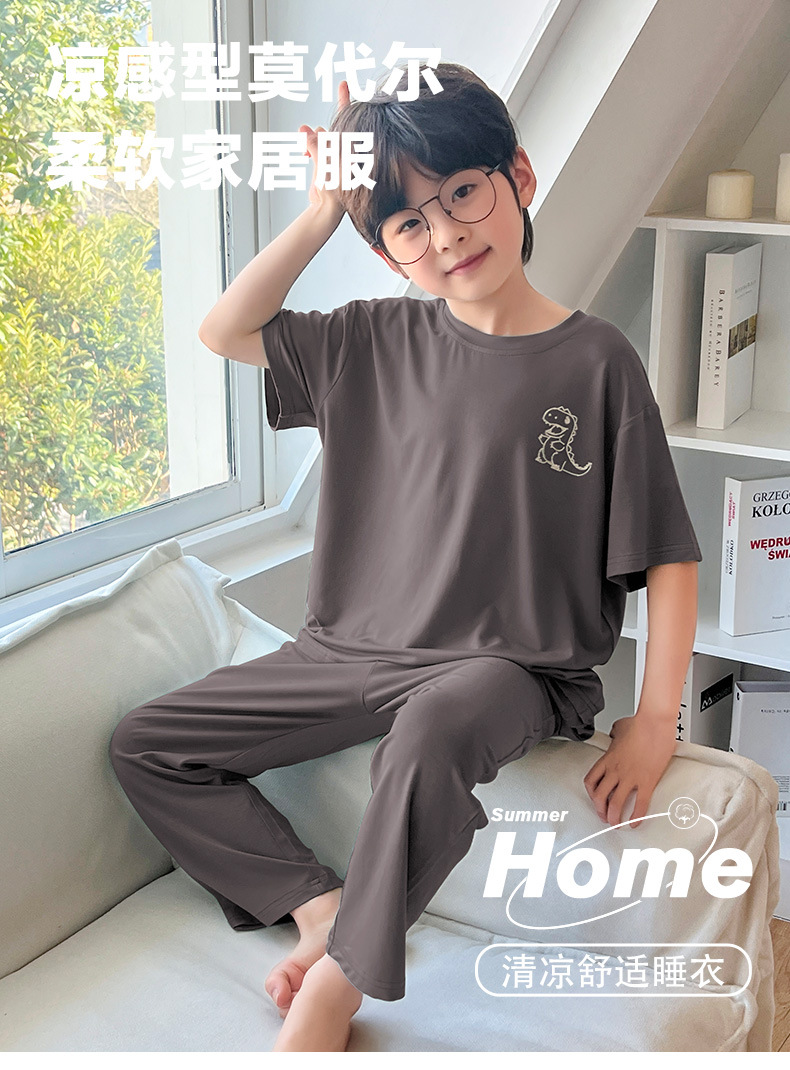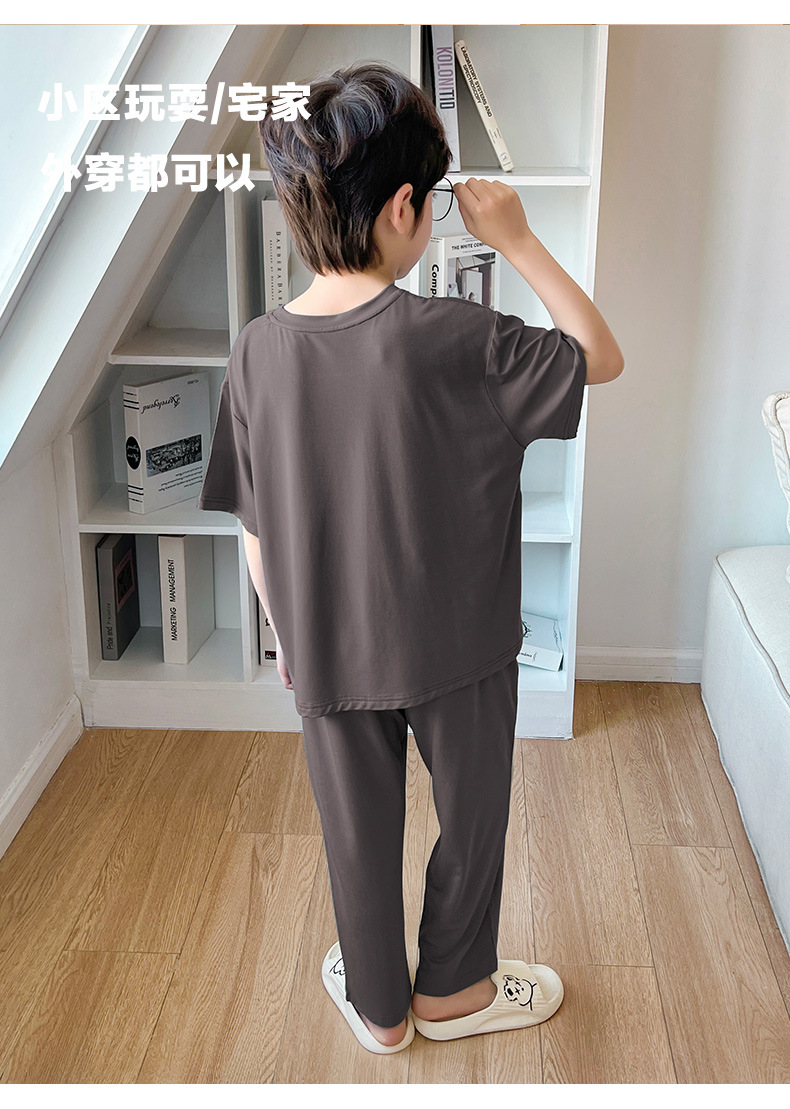 여름 모달 소년 잠옷 반팔 바지 세트 얇은 부드러운 편안한 가벼운 스포츠 스타일 야외 홈 옷스토어 가기