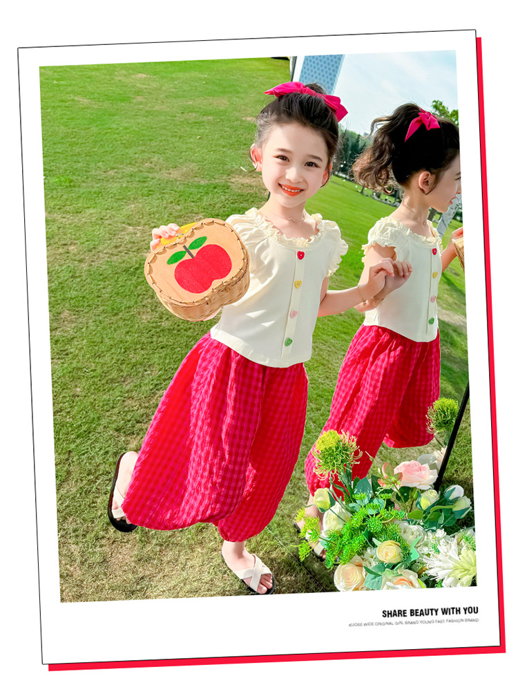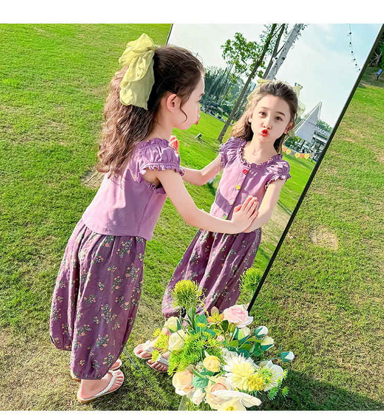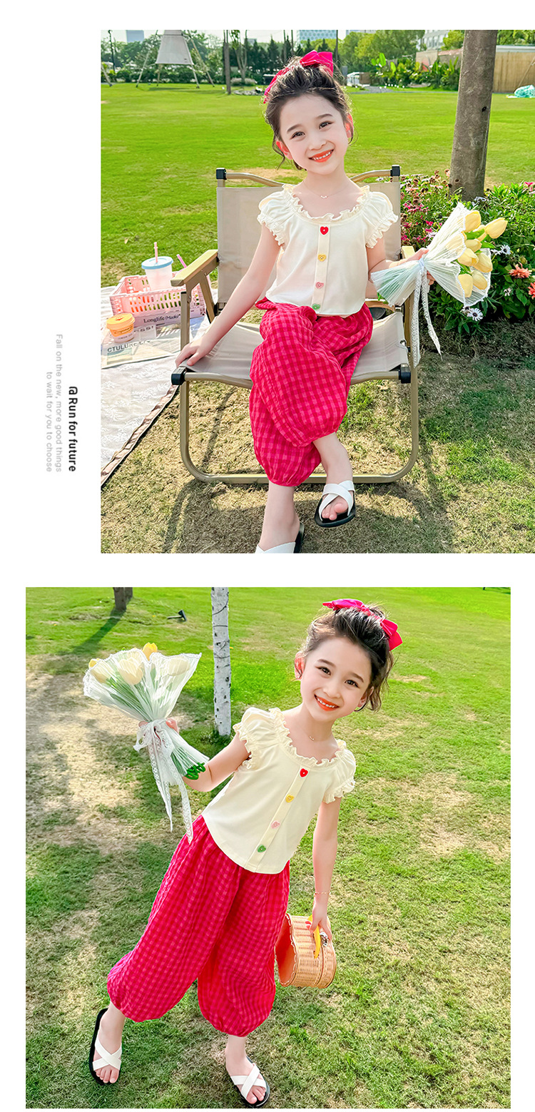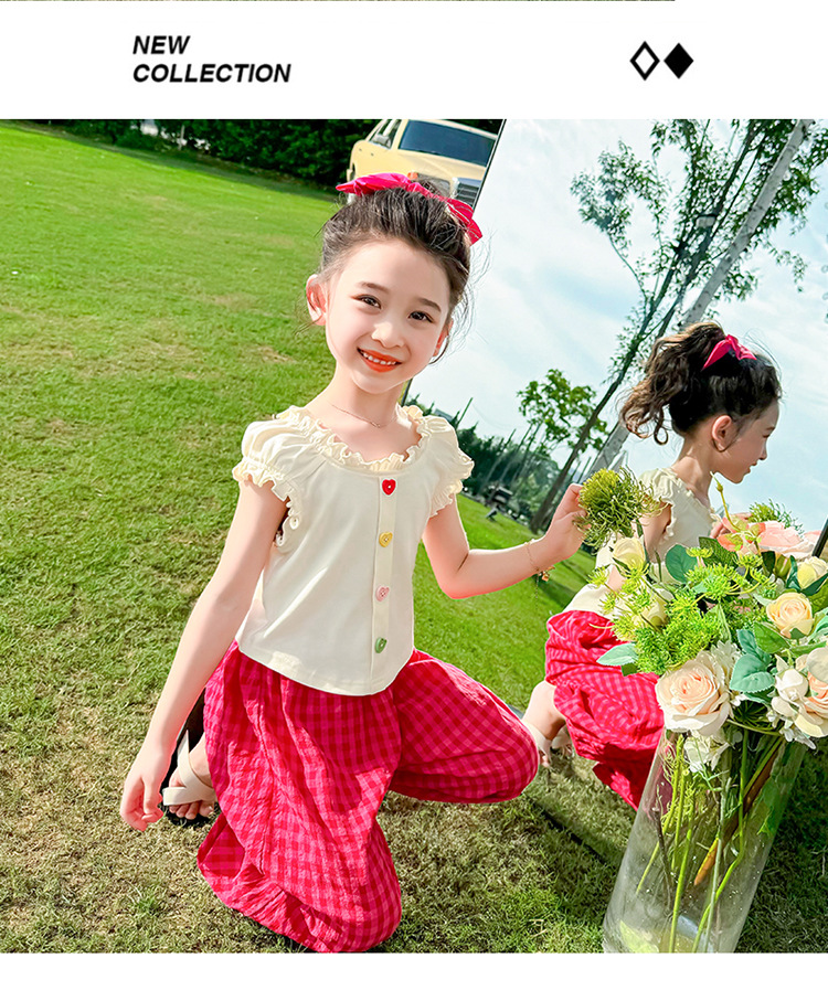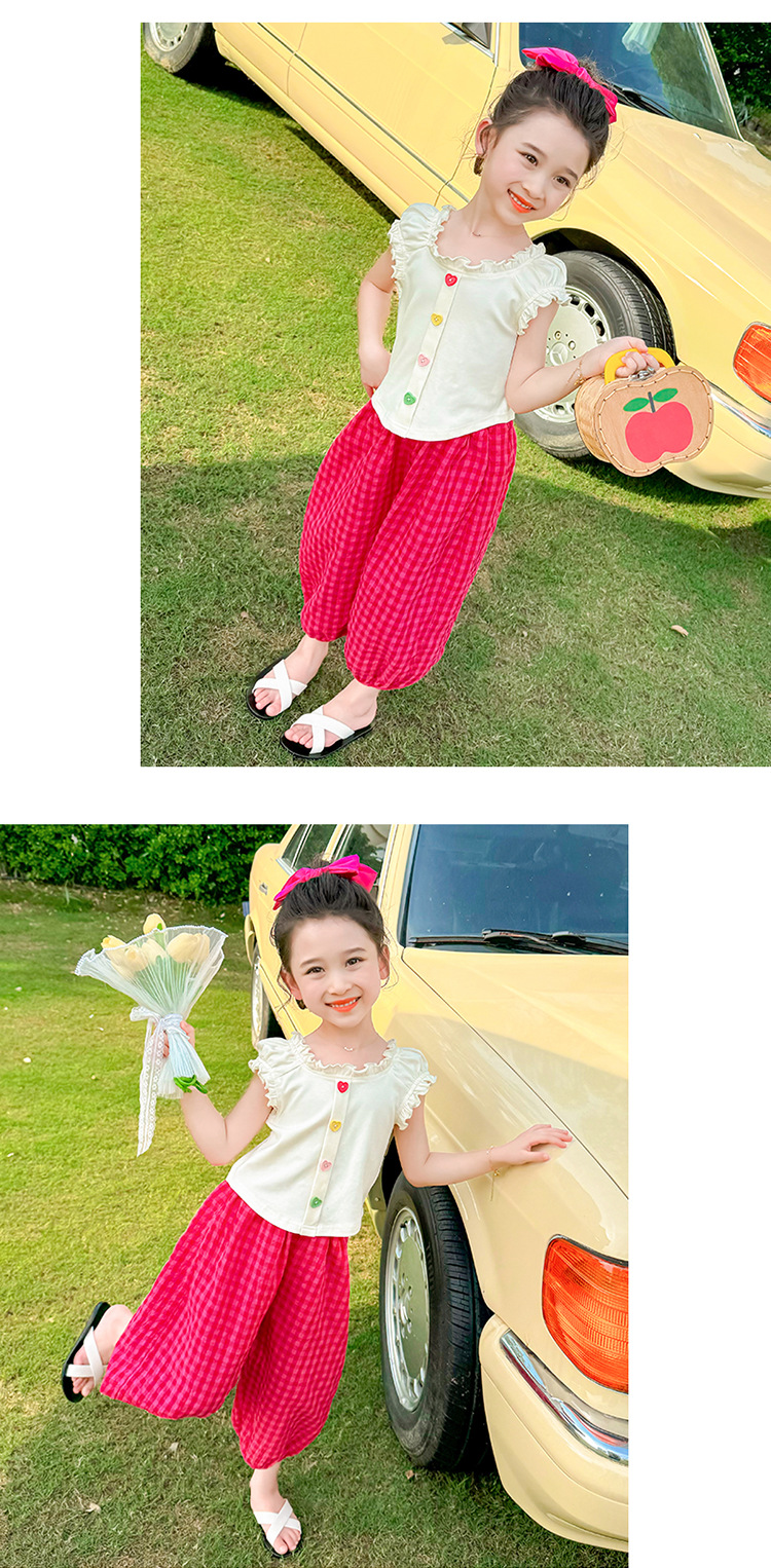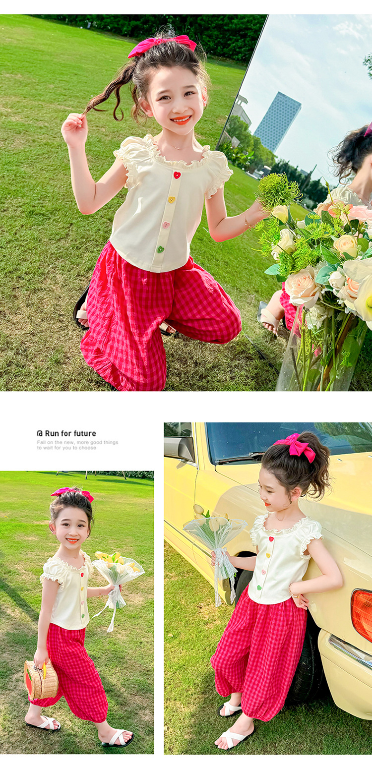 소녀 여름 세트 2024 새로운 패션 어린 소녀 사랑 버클 안티 모기 바지 세트 어린이 투피스 세트