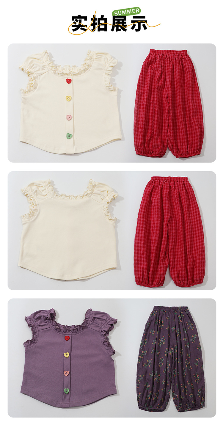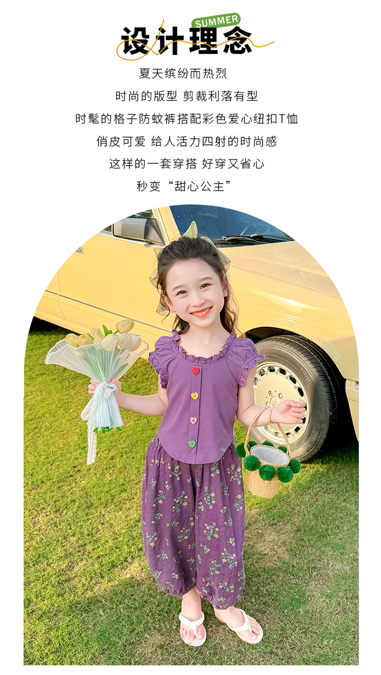 소녀 여름 세트 2024 새로운 패션 어린 소녀 사랑 버클 안티 모기 바지 세트 어린이 투피스 세트스토어 가기