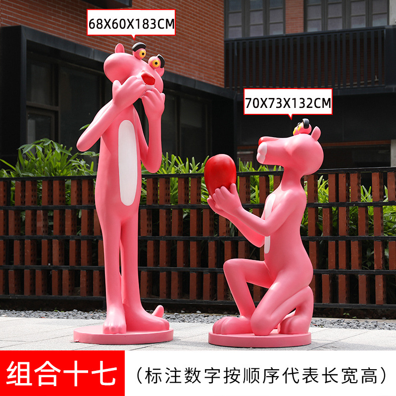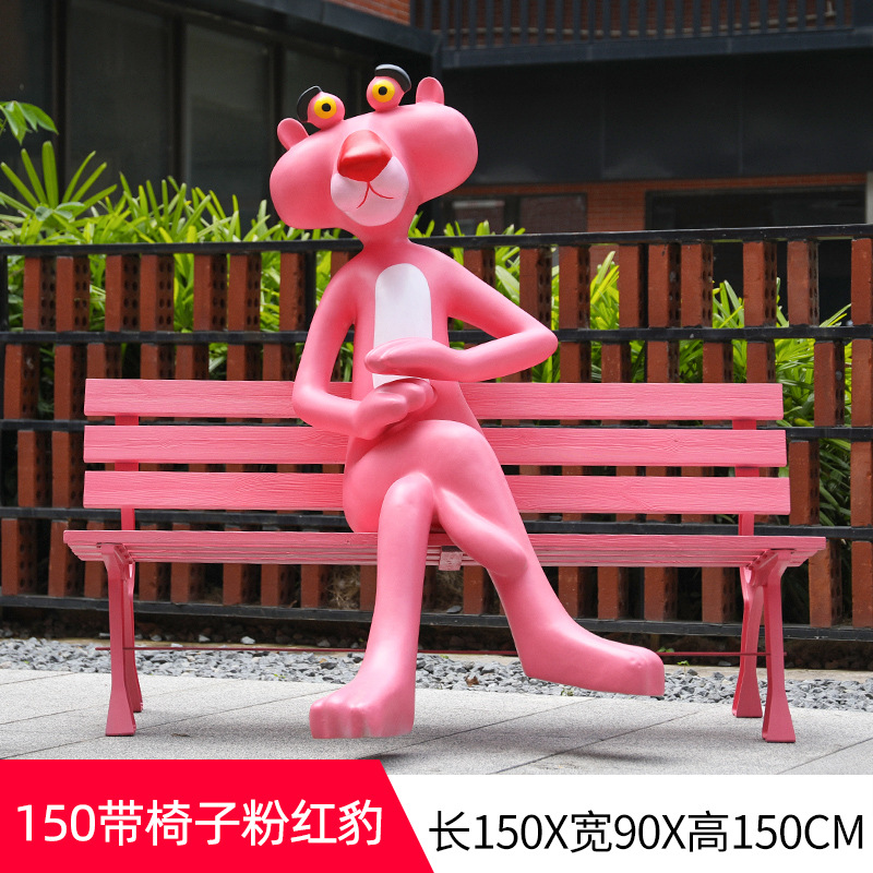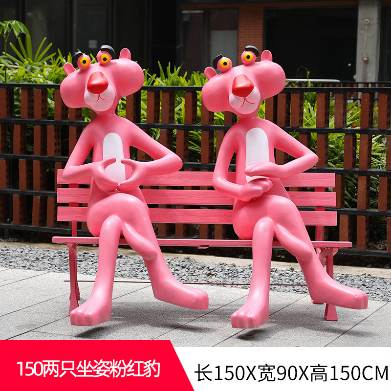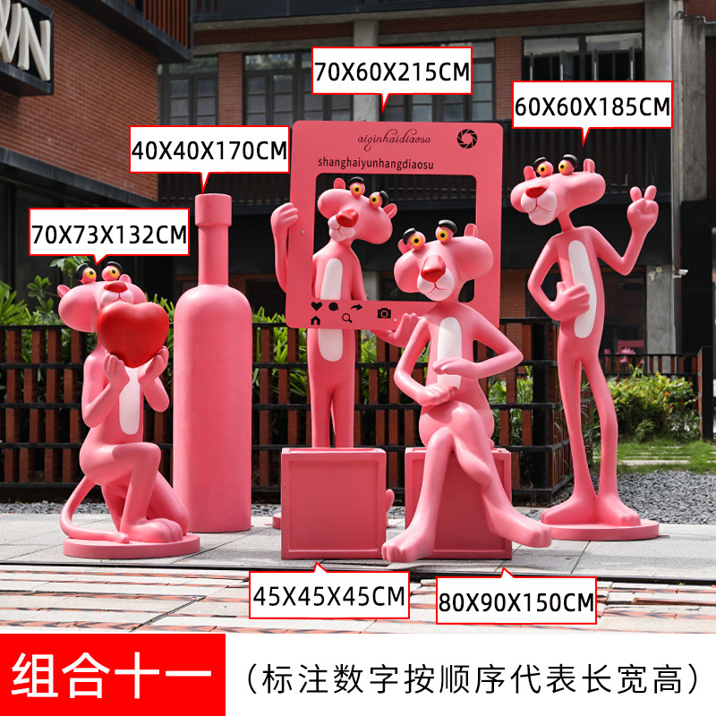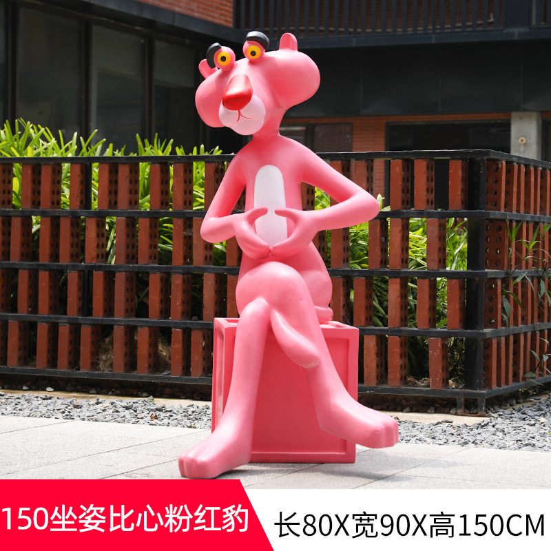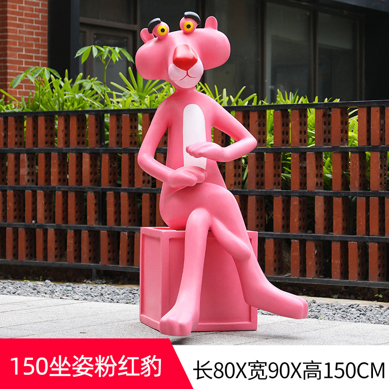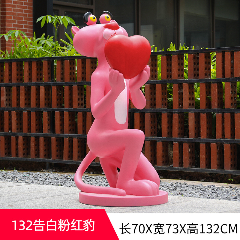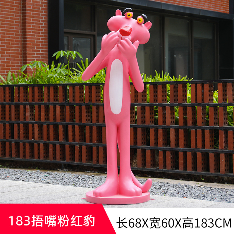 만화 핑크 표범 조각 야외 풍경 명소 쇼핑몰 못된 표범 인터넷 레드 카드 가게 문 바닥 장식 장식품스토어 가기