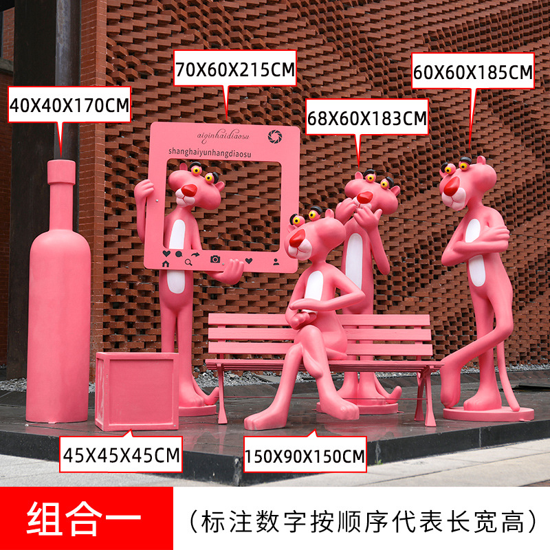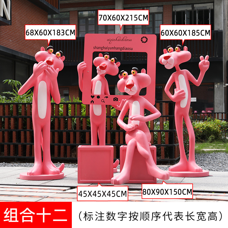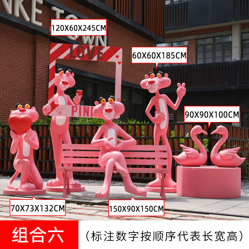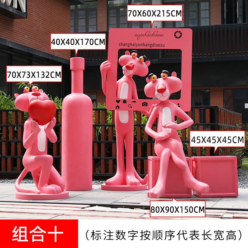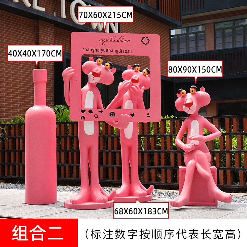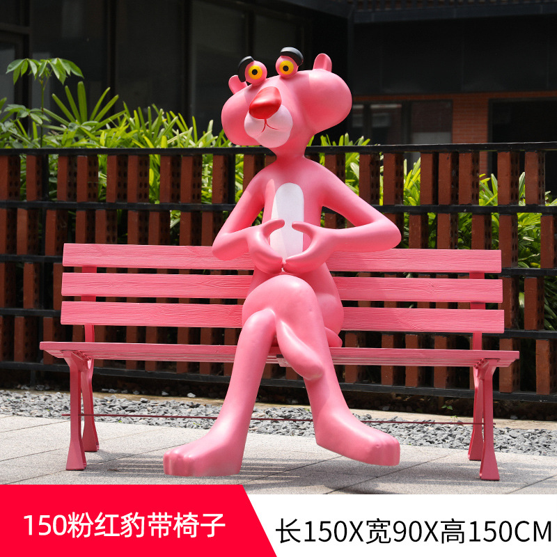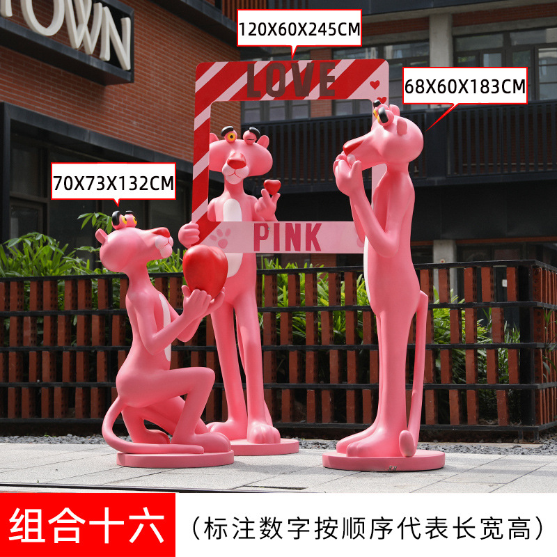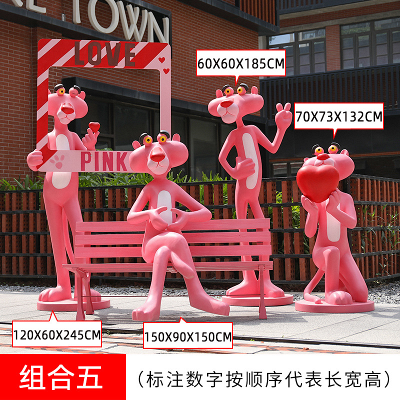 만화 핑크 표범 조각 야외 풍경 명소 쇼핑몰 못된 표범 인터넷 레드 카드 가게 문 바닥 장식 장식품스토어 가기