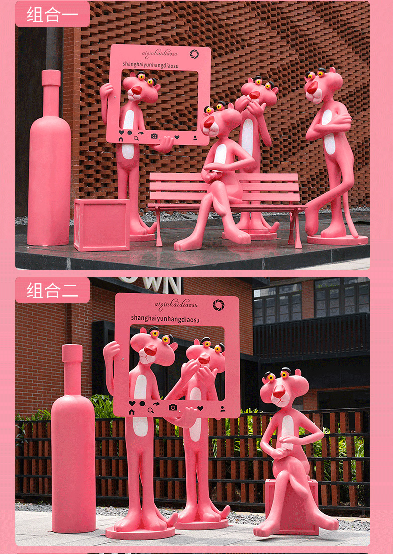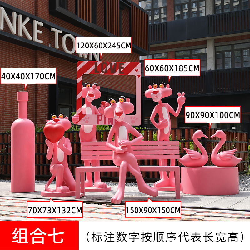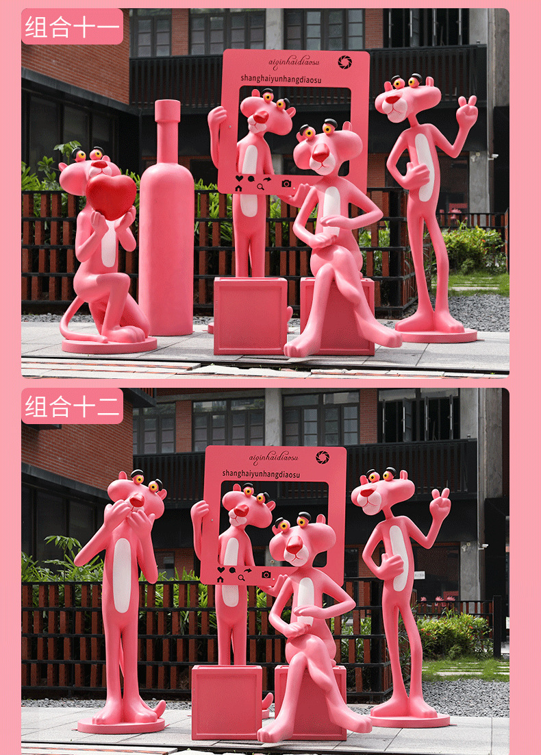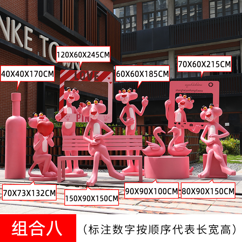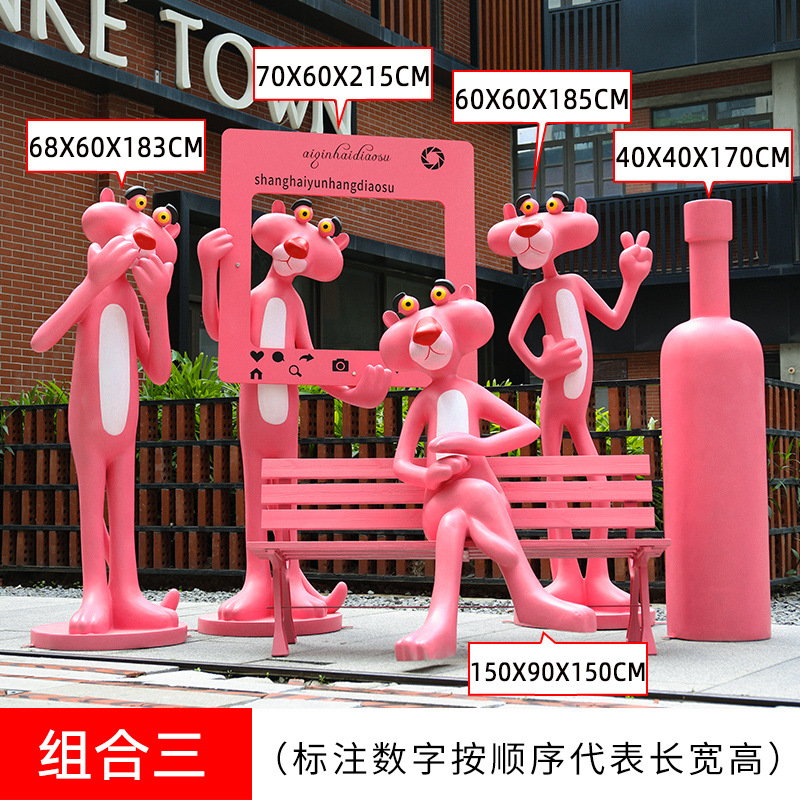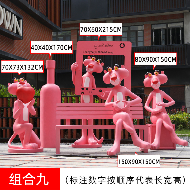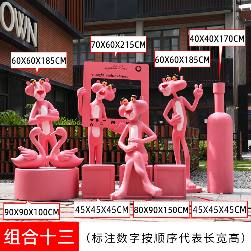 만화 핑크 표범 조각 야외 풍경 명소 쇼핑몰 못된 표범 인터넷 레드 카드 가게 문 바닥 장식 장식품스토어 가기