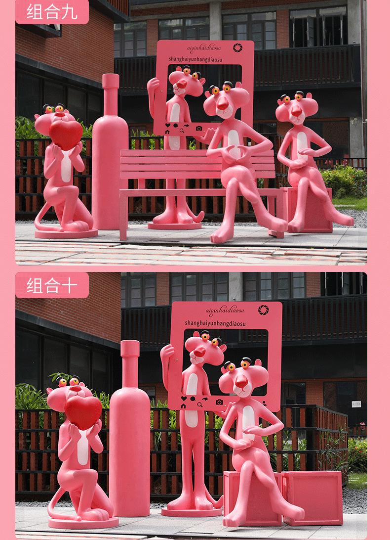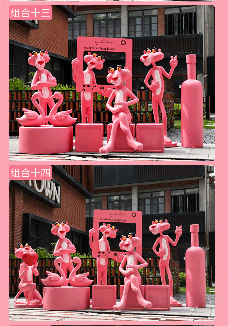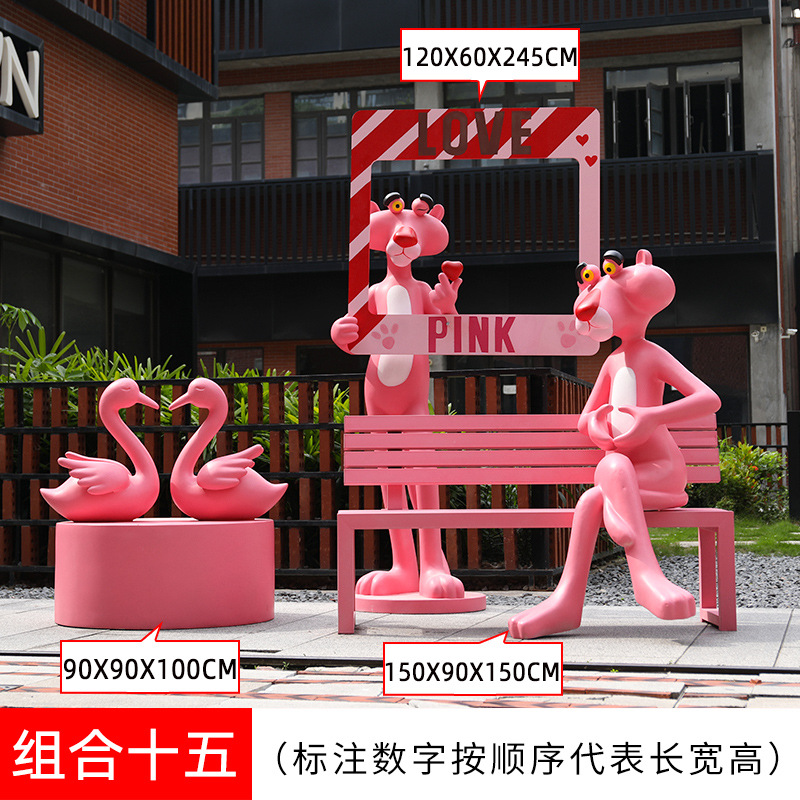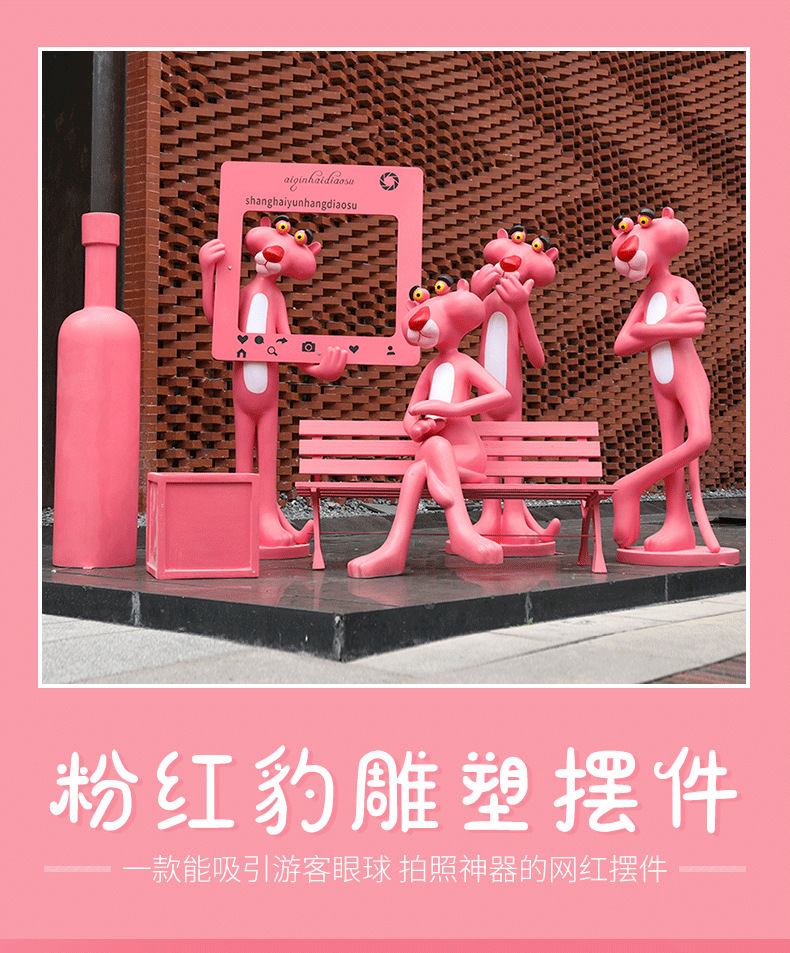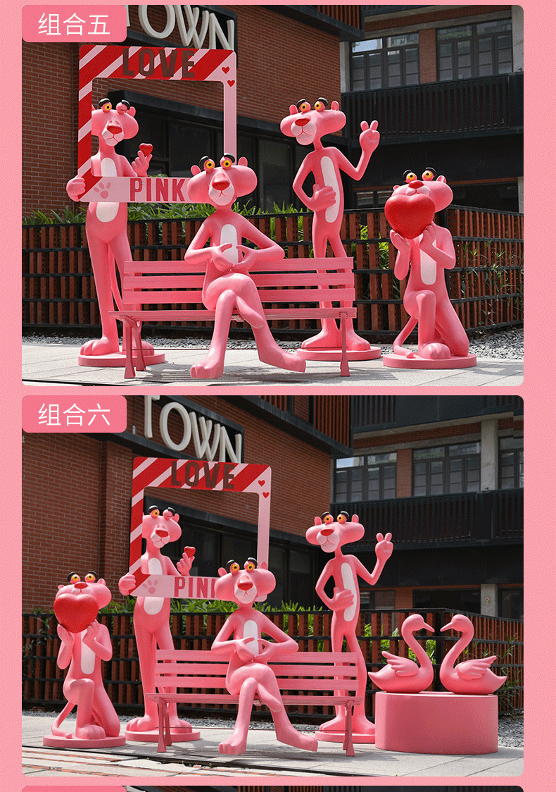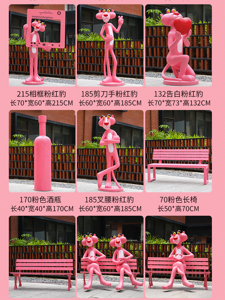 만화 핑크 표범 조각 야외 풍경 명소 쇼핑몰 못된 표범 인터넷 레드 카드 가게 문 바닥 장식 장식품스토어 가기