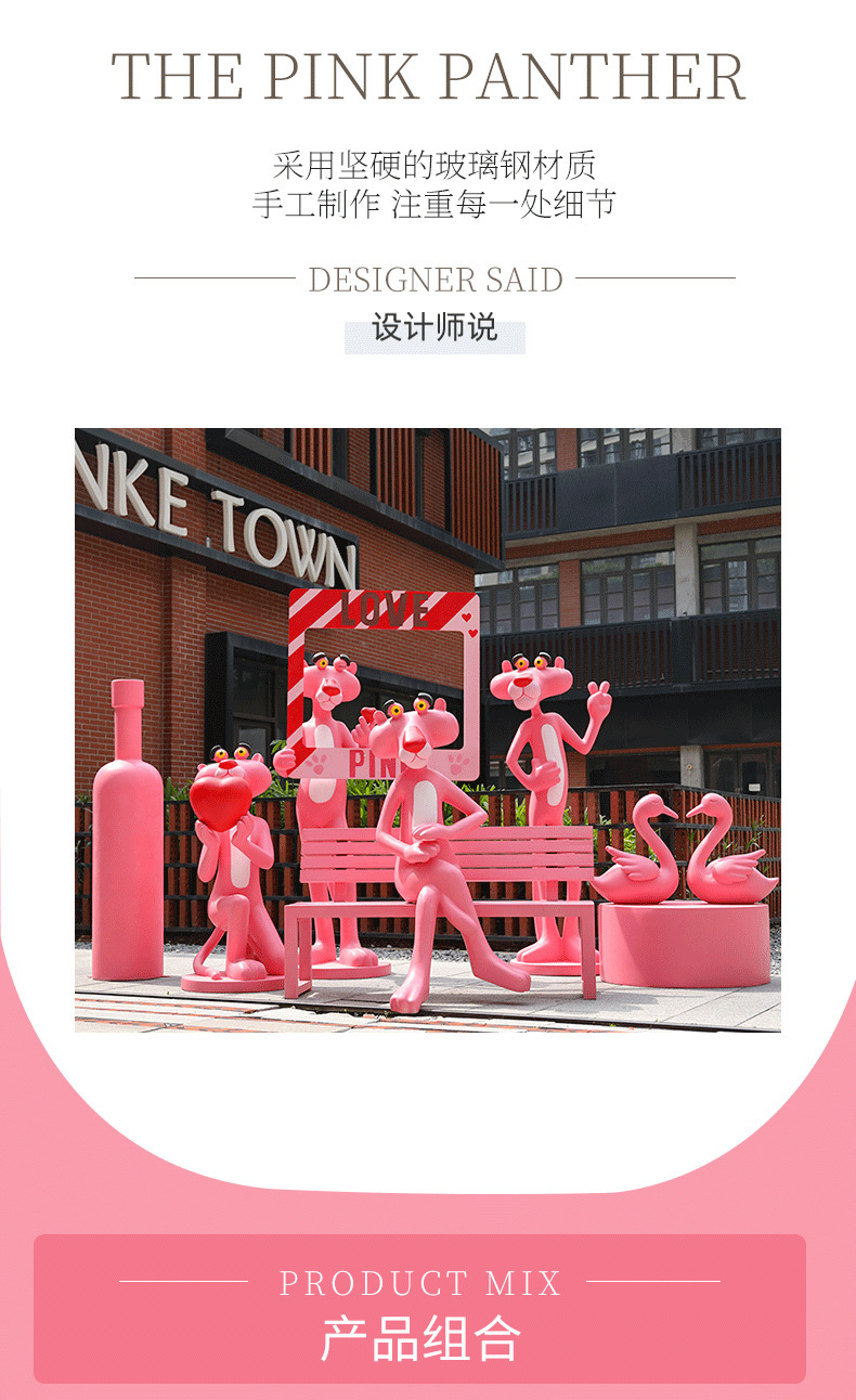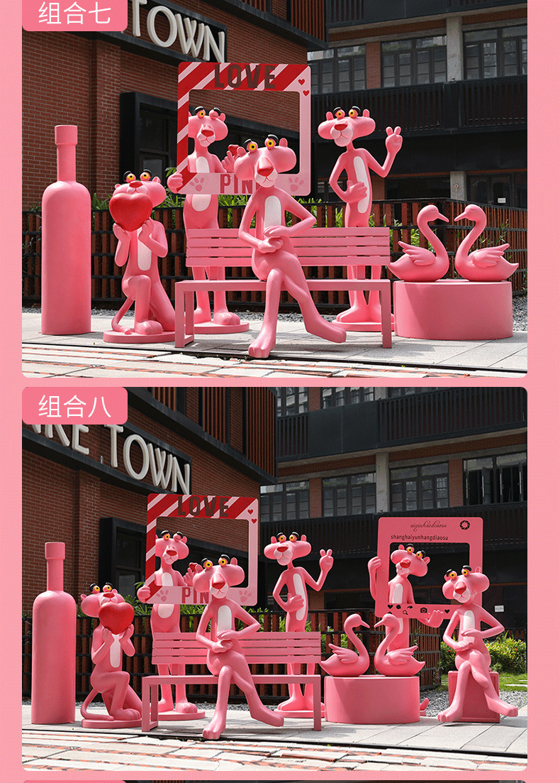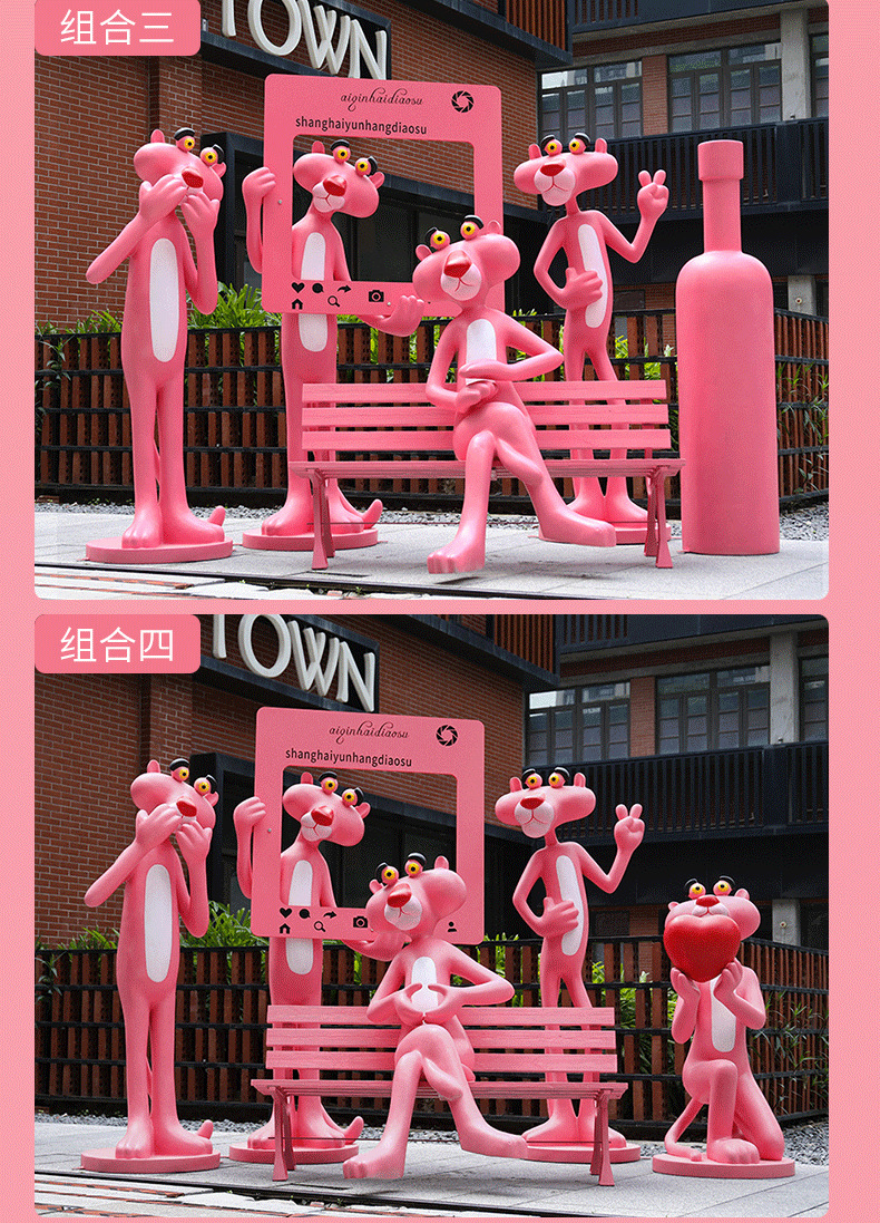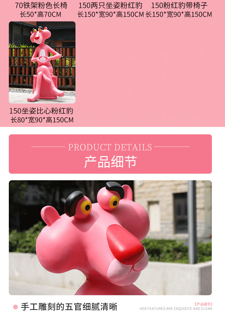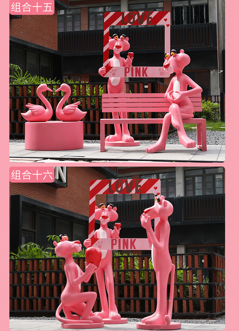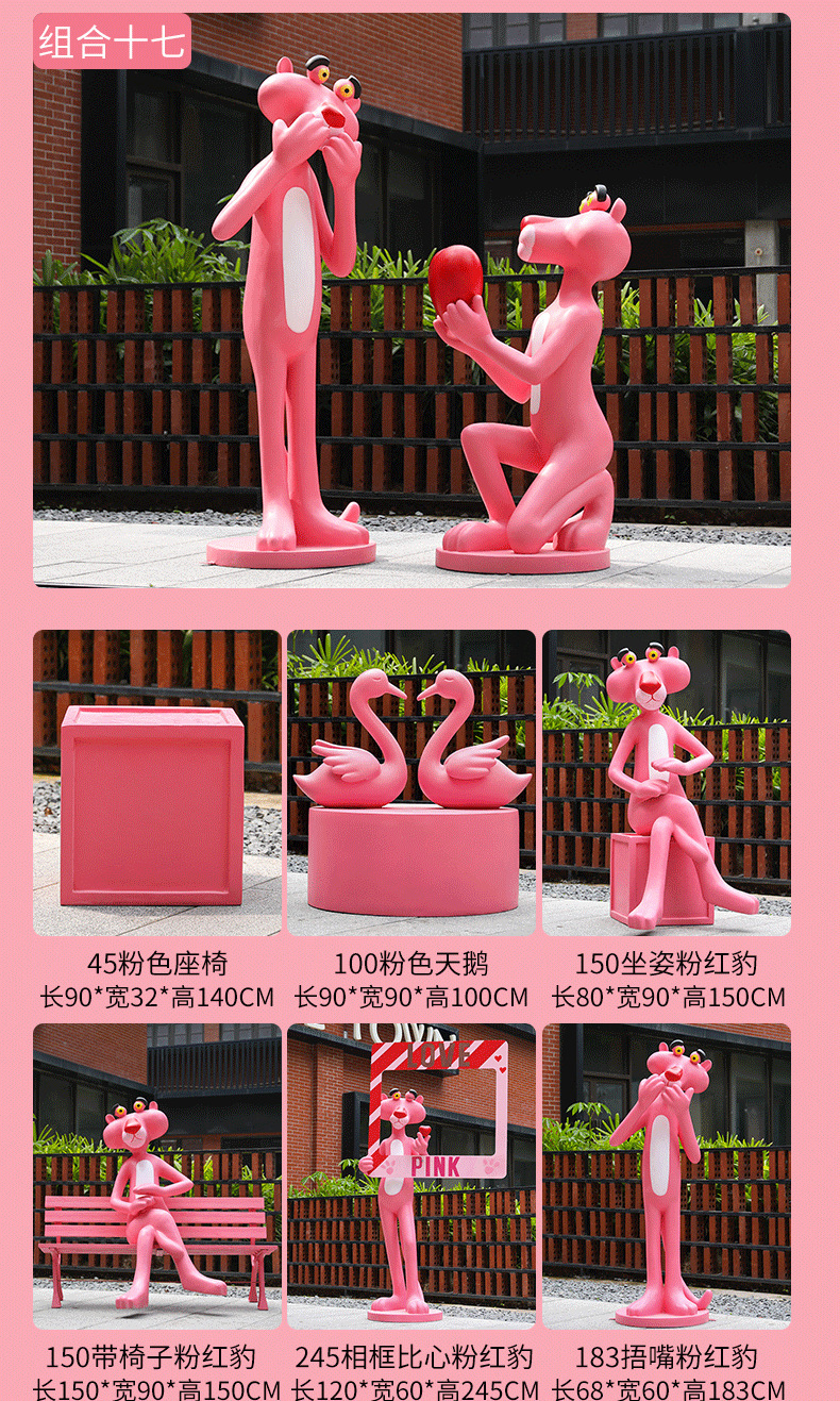 만화 핑크 표범 조각 야외 풍경 명소 쇼핑몰 못된 표범 인터넷 레드 카드 가게 문 바닥 장식 장식품스토어 가기