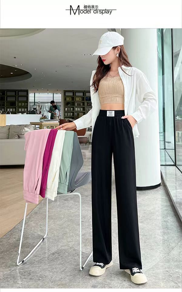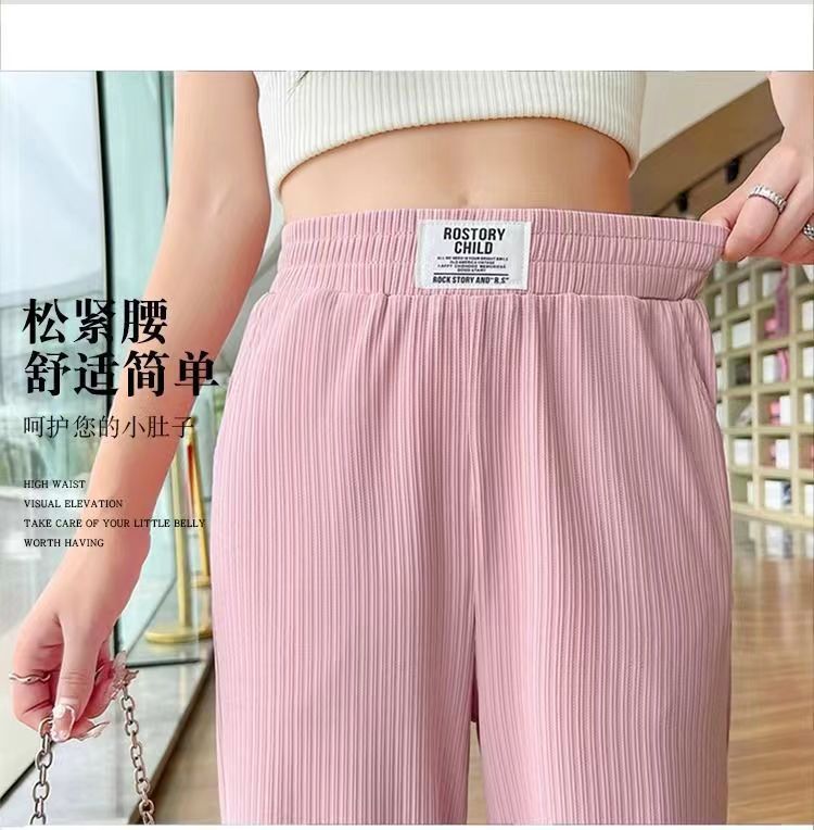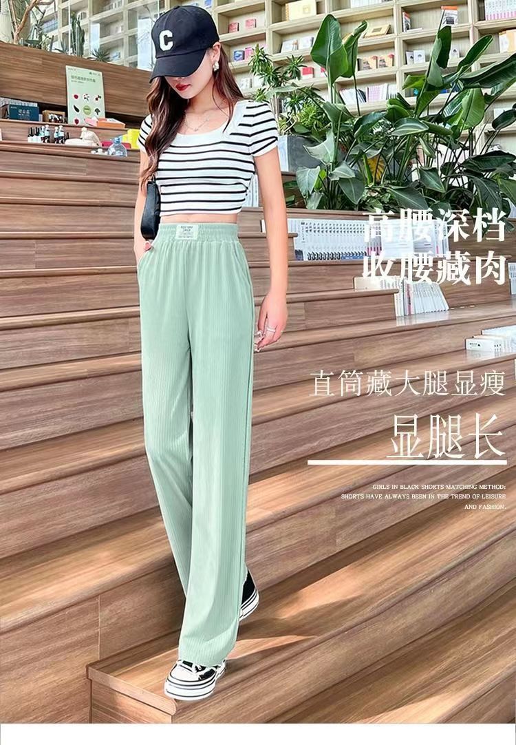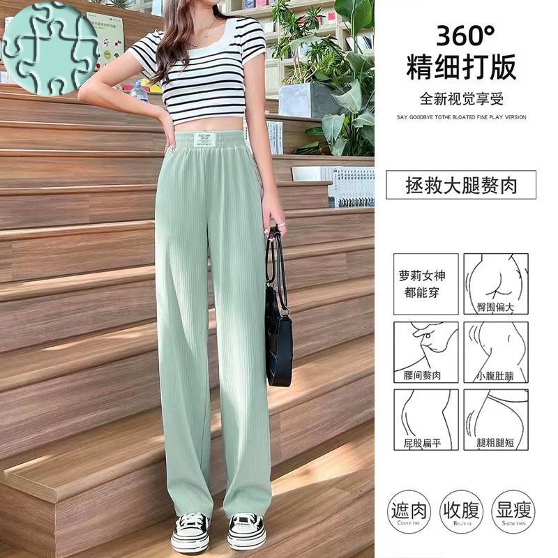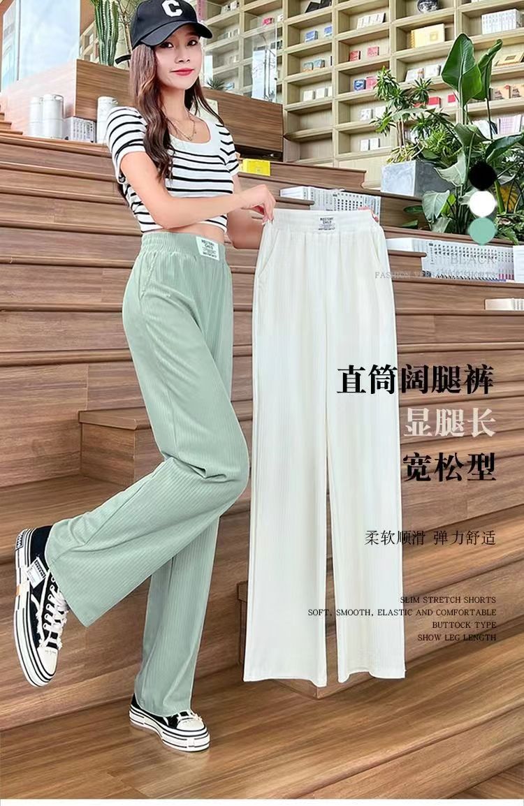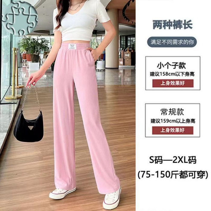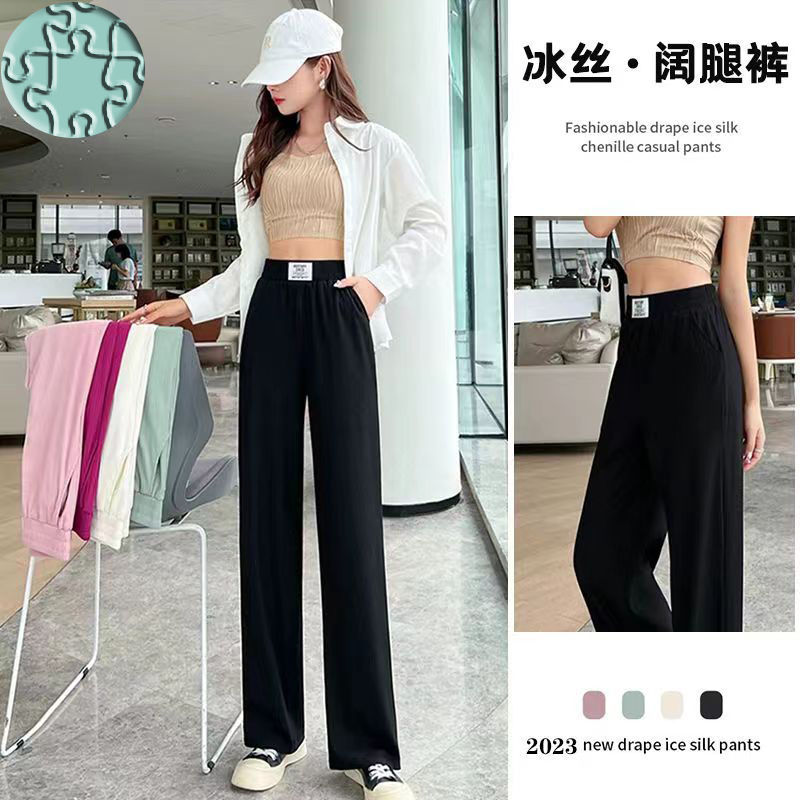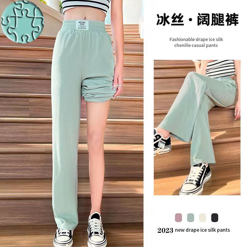 5 색 5 개 크기 좁은 얼음 실크 넓은 다리 바지 여성 여름 얇은 높은 허리 두드리는 똑바로 캐주얼 쿨 긴 바지스토어 가기