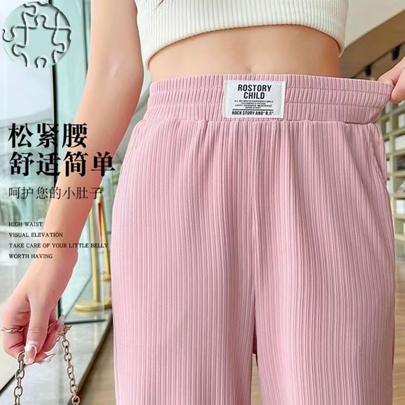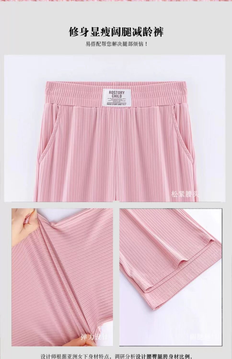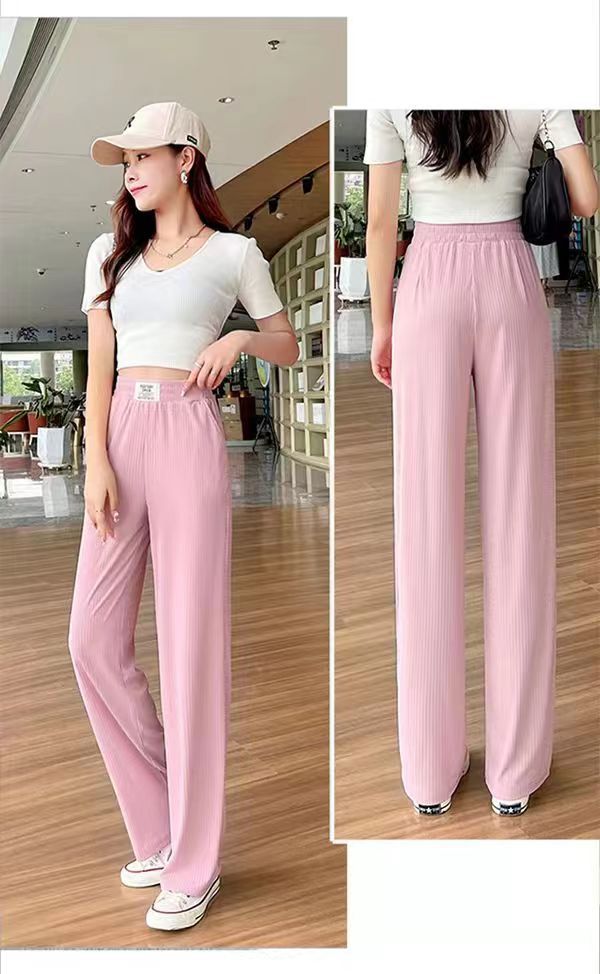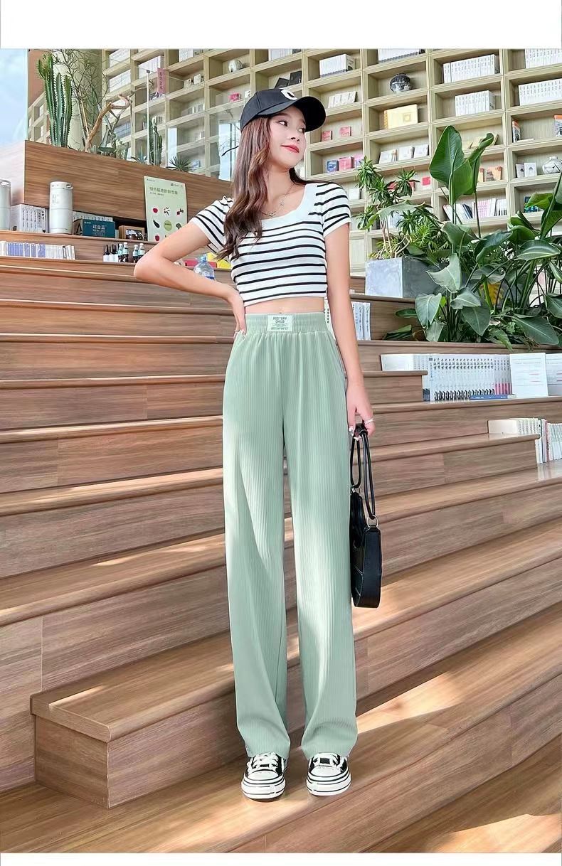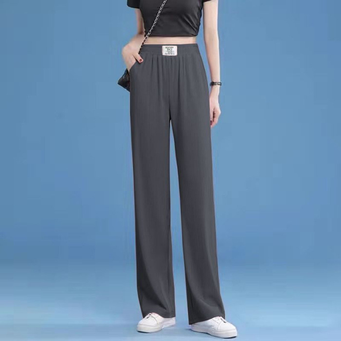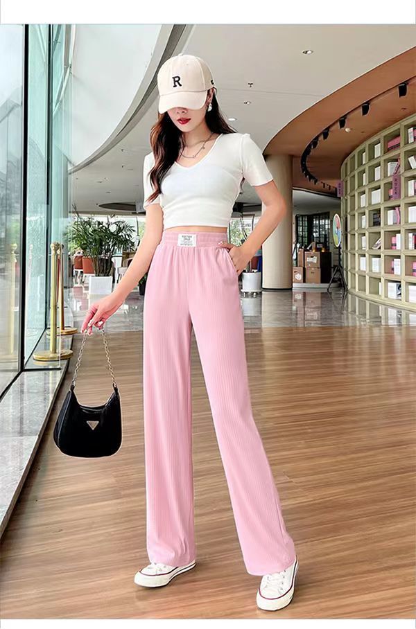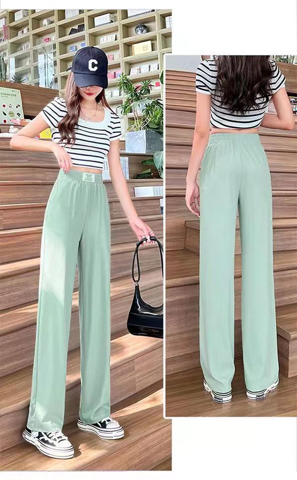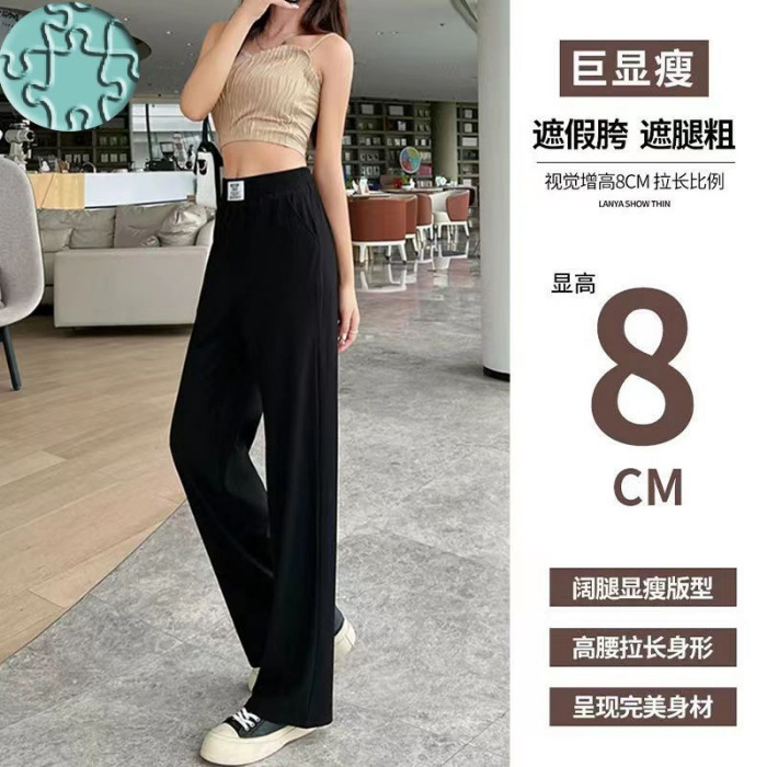 5 색 5 개 크기 좁은 얼음 실크 넓은 다리 바지 여성 여름 얇은 높은 허리 두드리는 똑바로 캐주얼 쿨 긴 바지스토어 가기