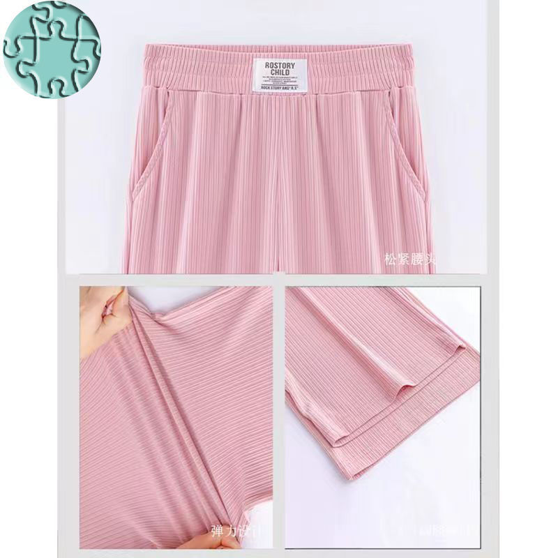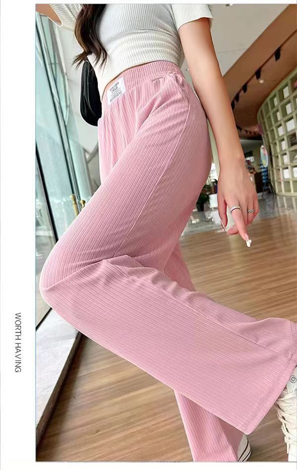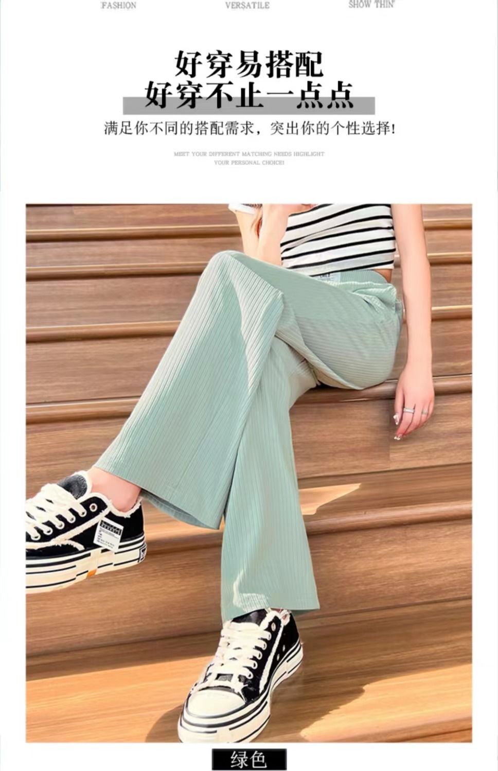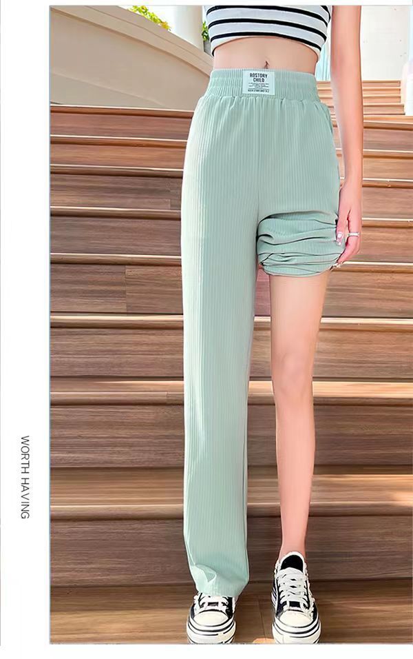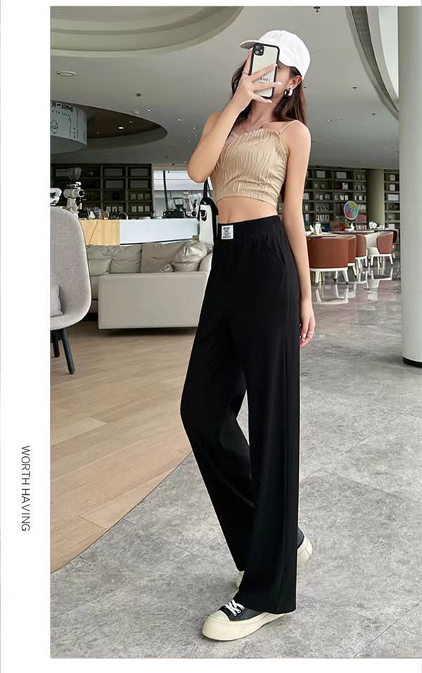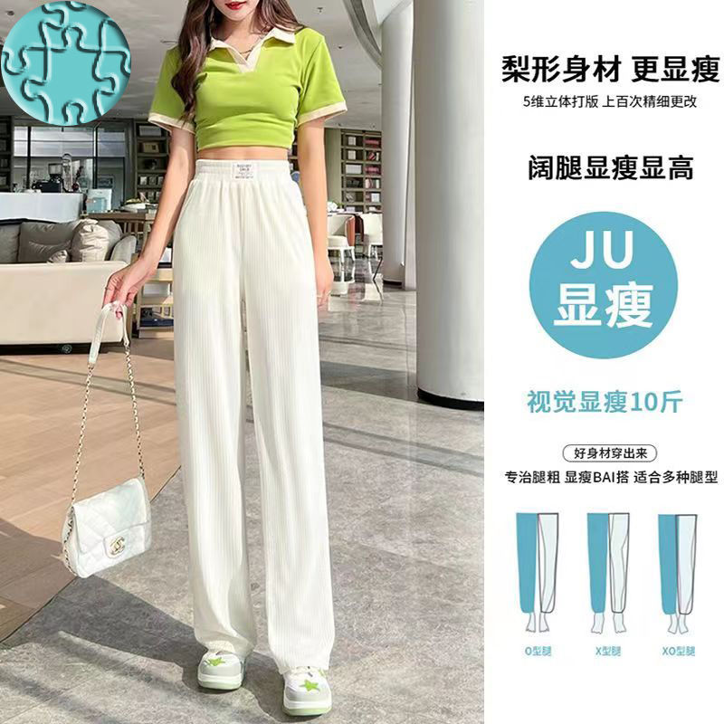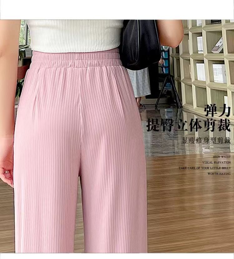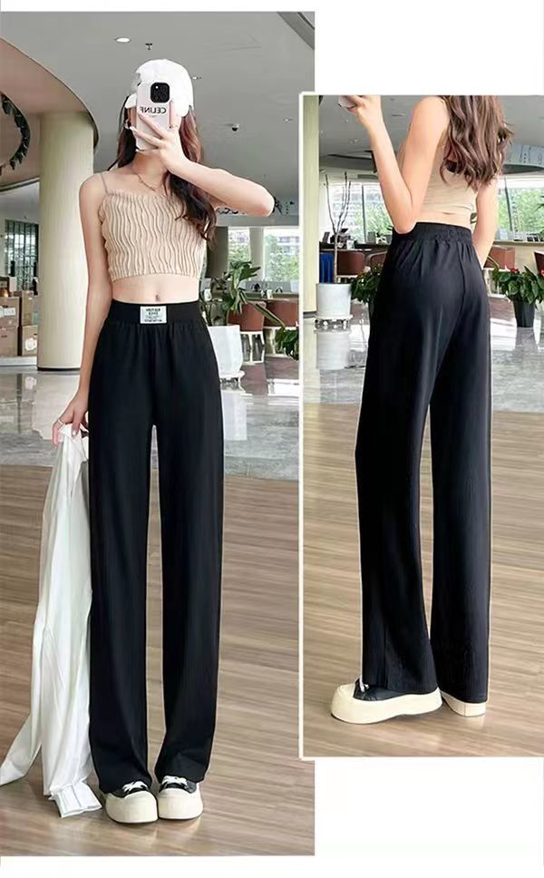 5 색 5 개 크기 좁은 얼음 실크 넓은 다리 바지 여성 여름 얇은 높은 허리 두드리는 똑바로 캐주얼 쿨 긴 바지스토어 가기