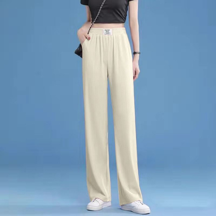 5 색 5 개 크기 좁은 얼음 실크 넓은 다리 바지 여성 여름 얇은 높은 허리 두드리는 똑바로 캐주얼 쿨 긴 바지