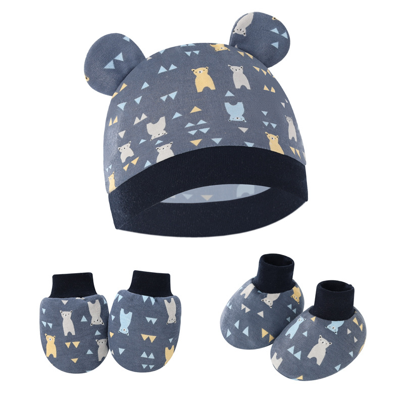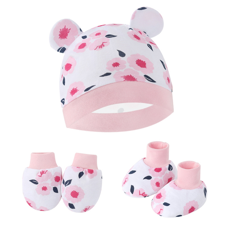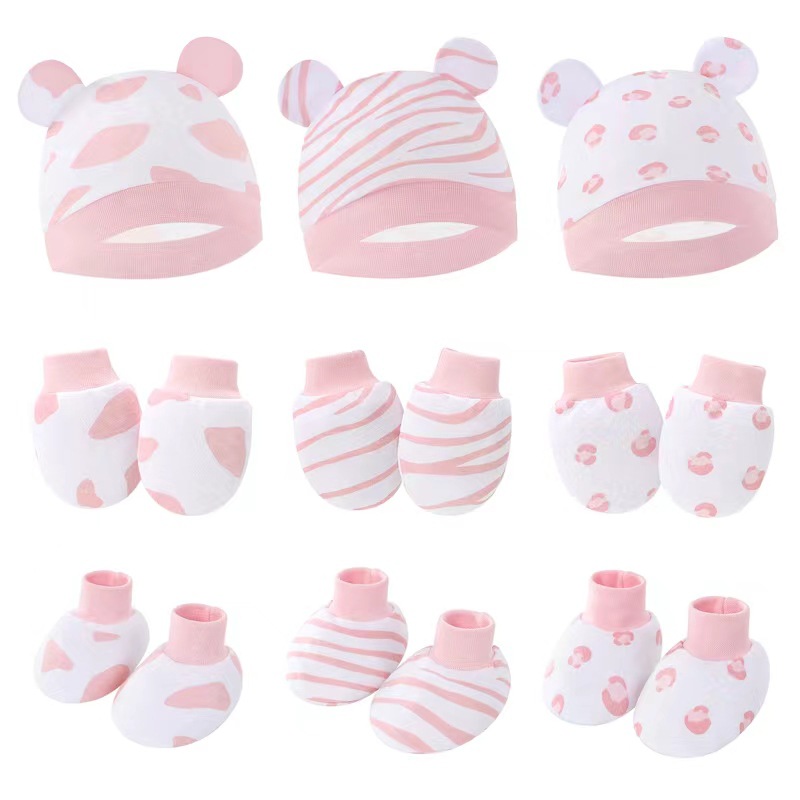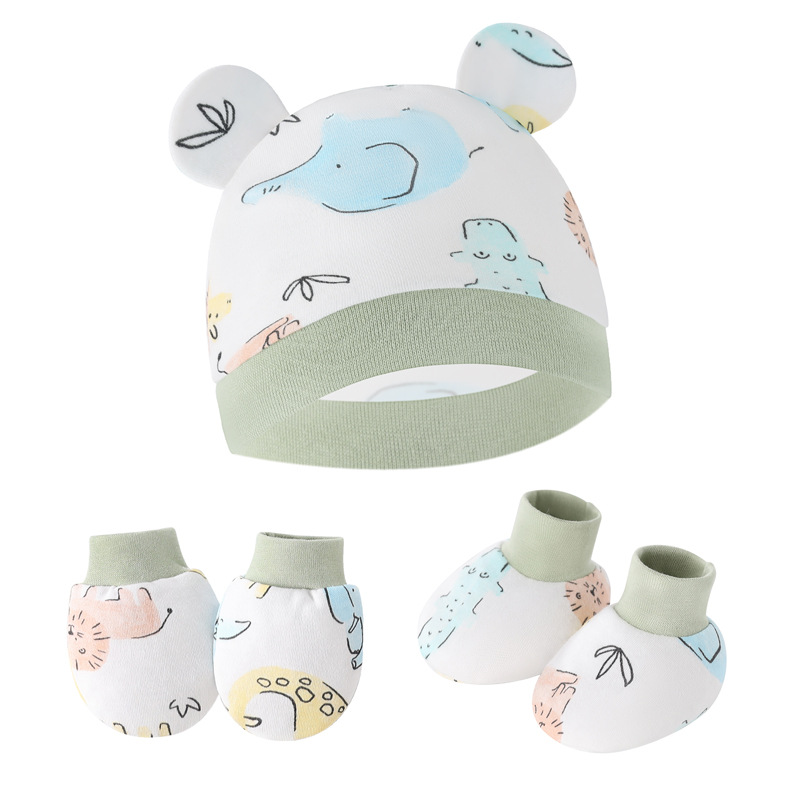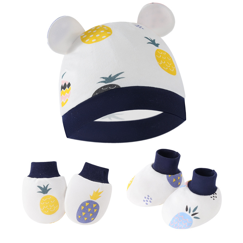 대외 무역 유럽과 미국의 신생아 태아 모자 안티 스크래치 장갑 발 커버 아기 모자 손과 발 커버 3 피스 아기 모자