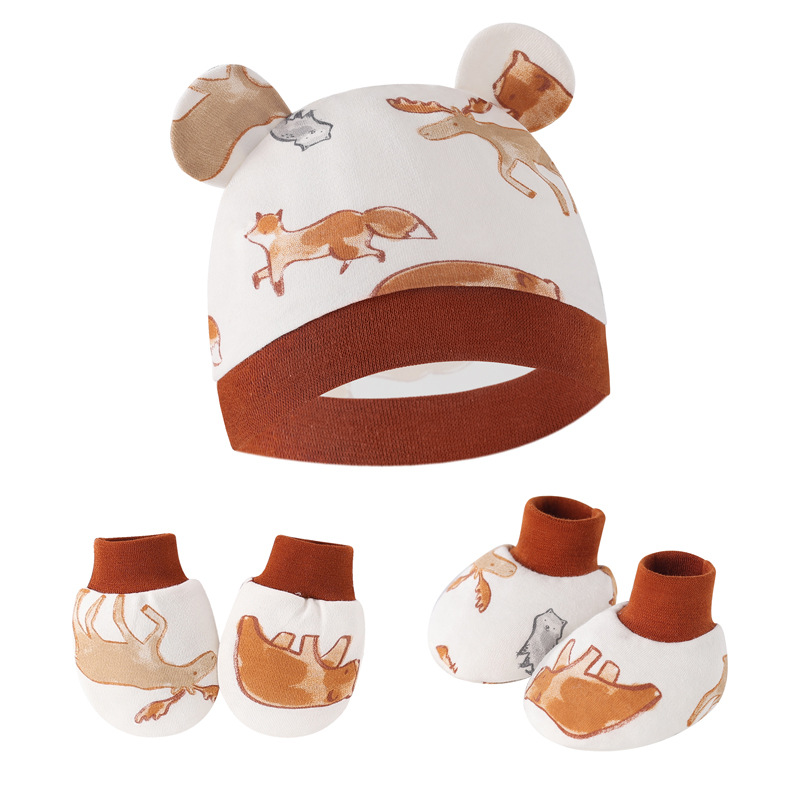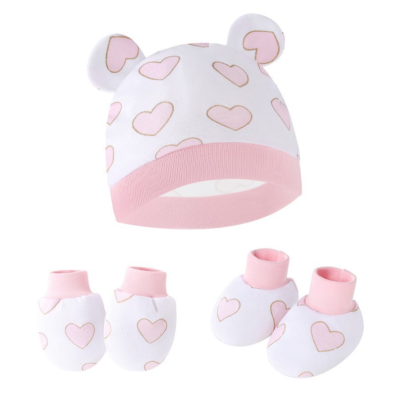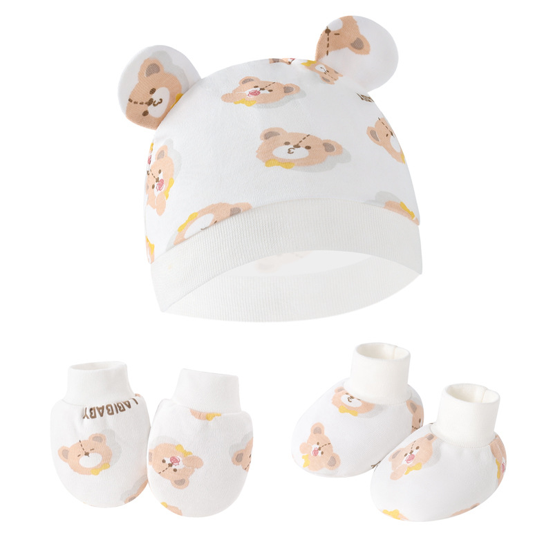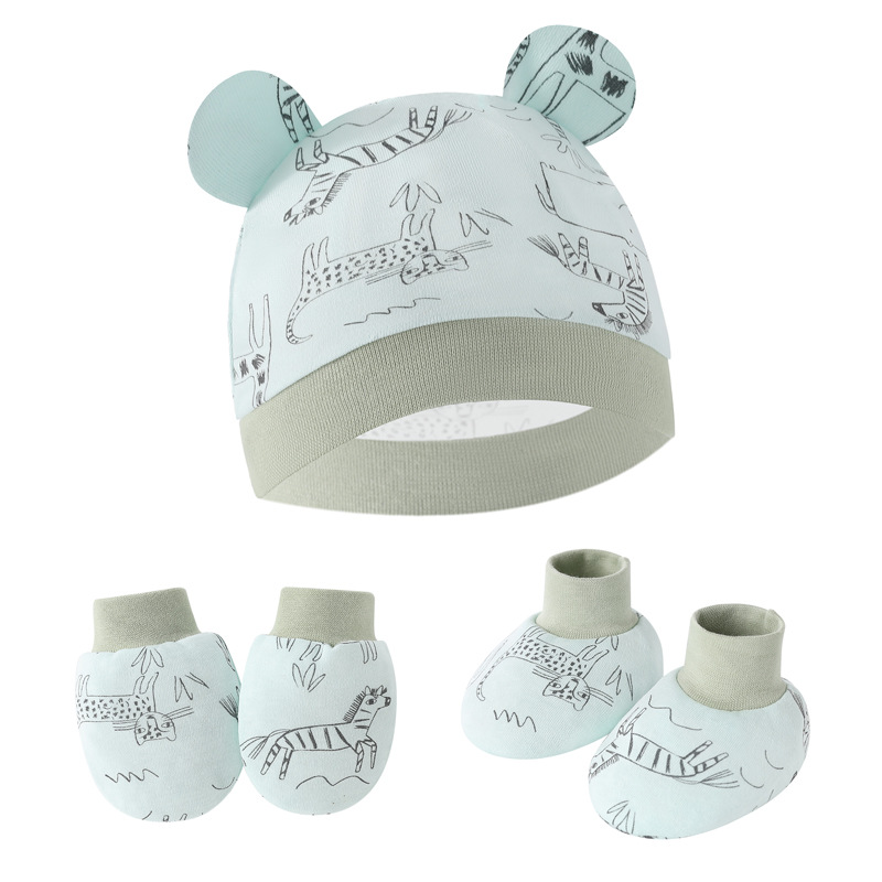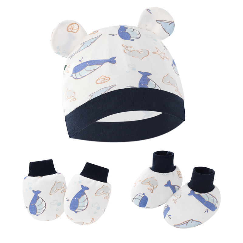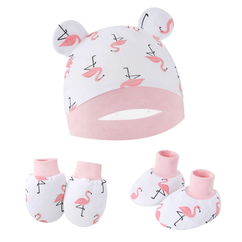 대외 무역 유럽과 미국의 신생아 태아 모자 안티 스크래치 장갑 발 커버 아기 모자 손과 발 커버 3 피스 아기 모자