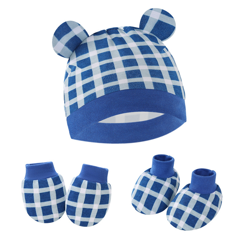 • 블루 체크 무늬 (모자 장갑 발 커버) 3 피스 세트