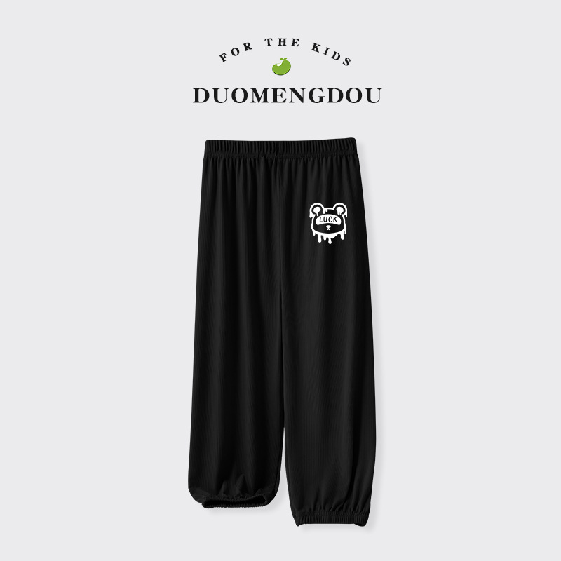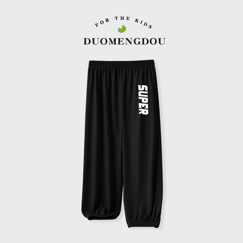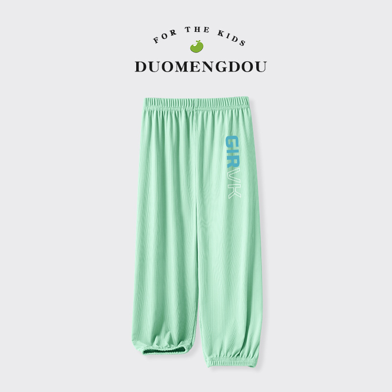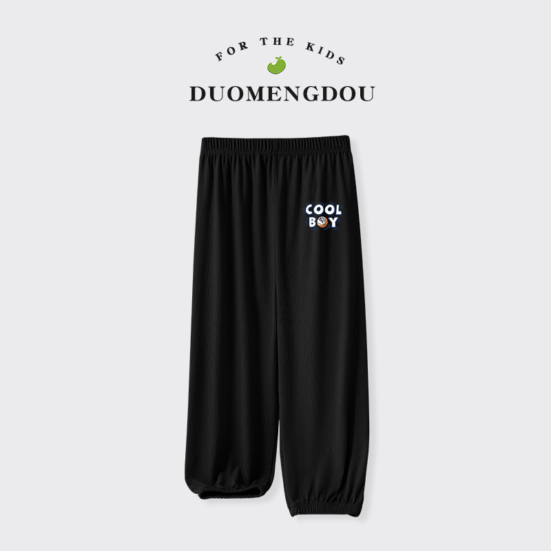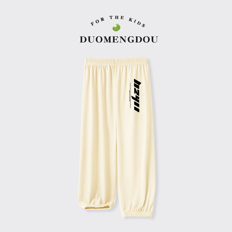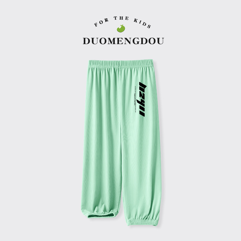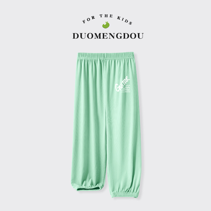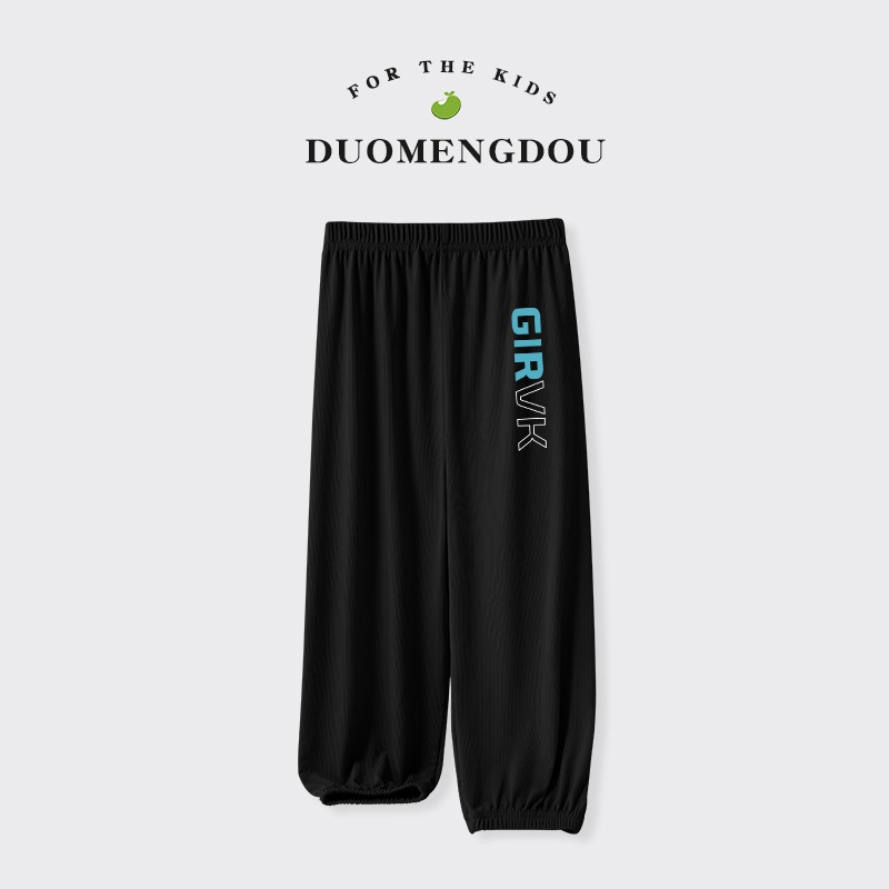 Du Mengdou 소년 얼음 실크 모기 방지 바지 중형 및 대형 어린이 2025 여름 야외 바지 편지 인쇄 다목적 바지 NAF