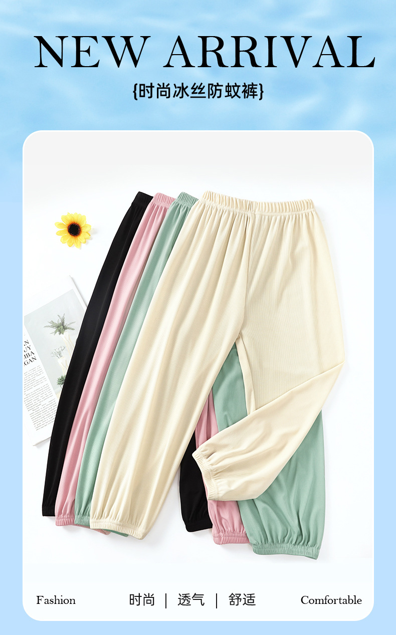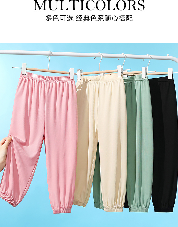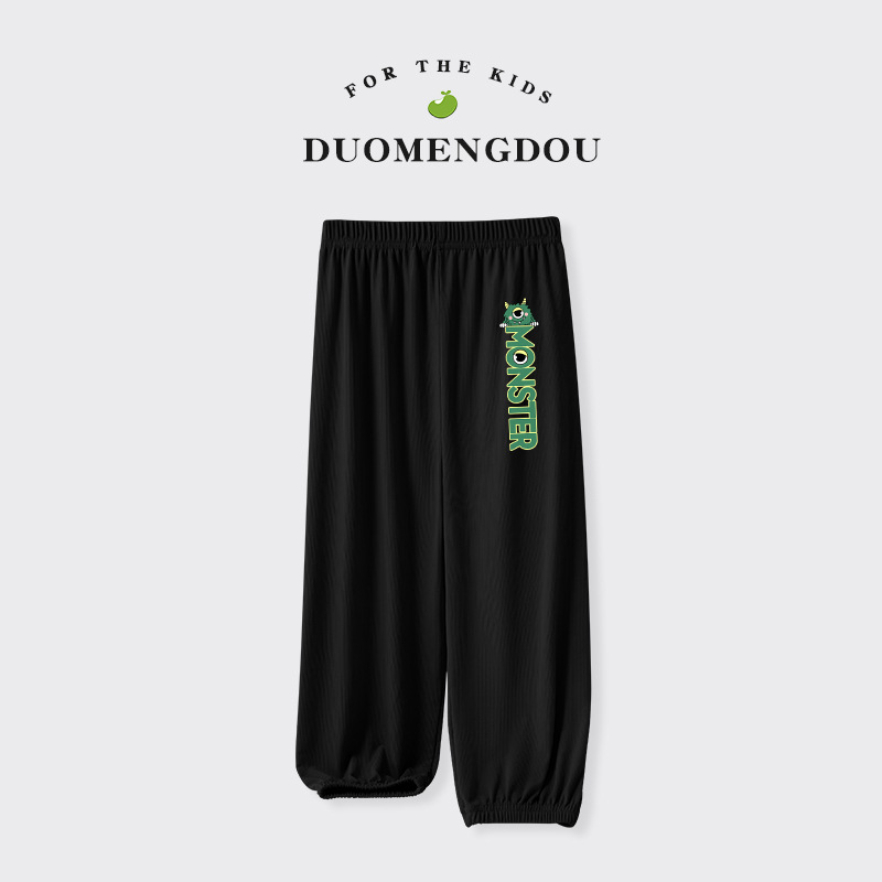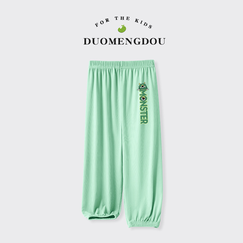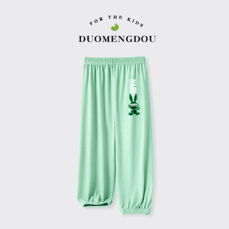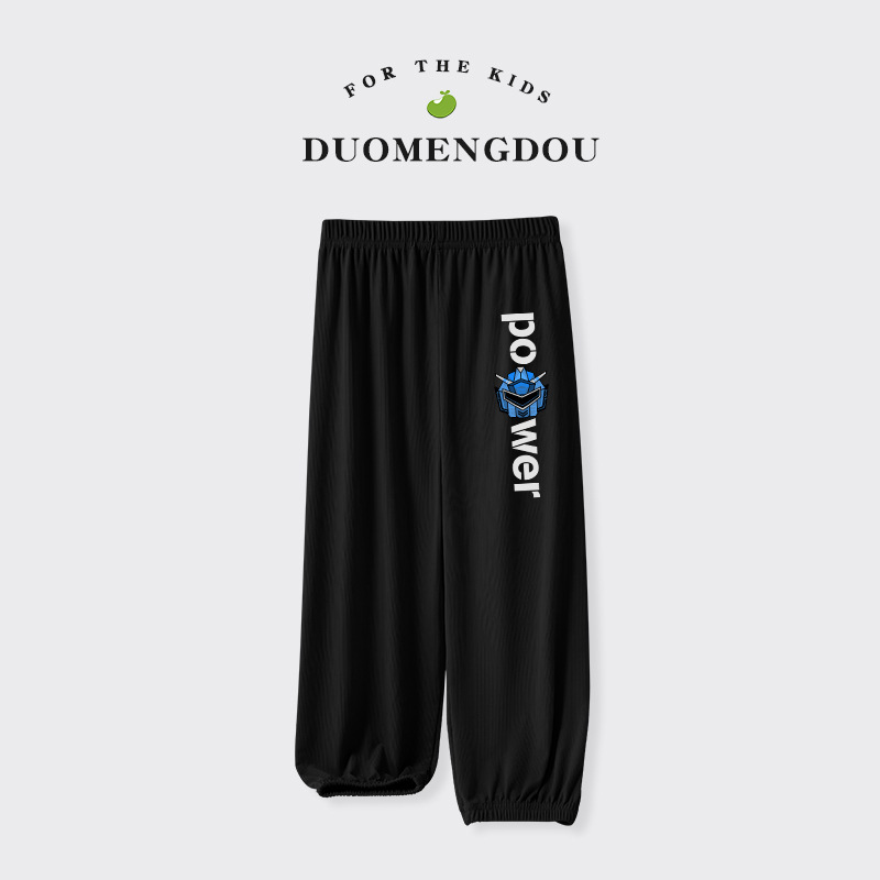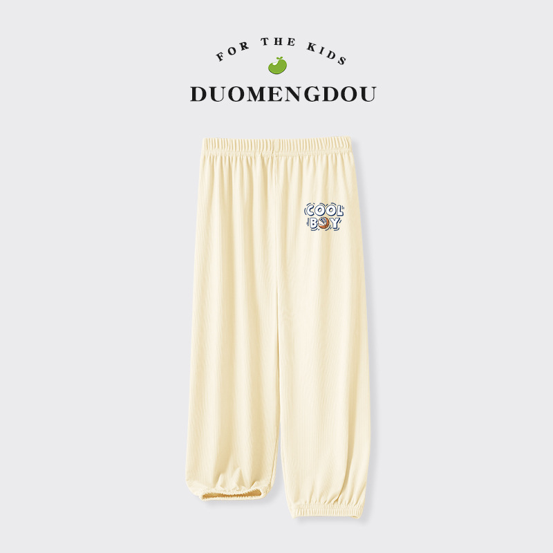 Du Mengdou 소년 얼음 실크 모기 방지 바지 중형 및 대형 어린이 2025 여름 야외 바지 편지 인쇄 다목적 바지 NAF