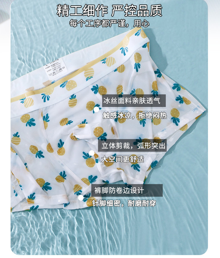 카렌 2024 새로운 아이스 실크 남자 속옷 여름 남자 복서 청소년 스포츠 복서 반바지