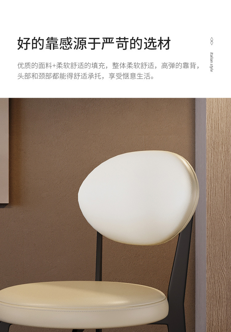 이탈리아 스타일 미니멀리스트 라이트 럭셔리 크림 스타일 다이닝 의자 현대 미니멀리스트 홈 디자이너 스타일 조용한 스타일 다이닝 테이블 의자 등받이스토어 가기