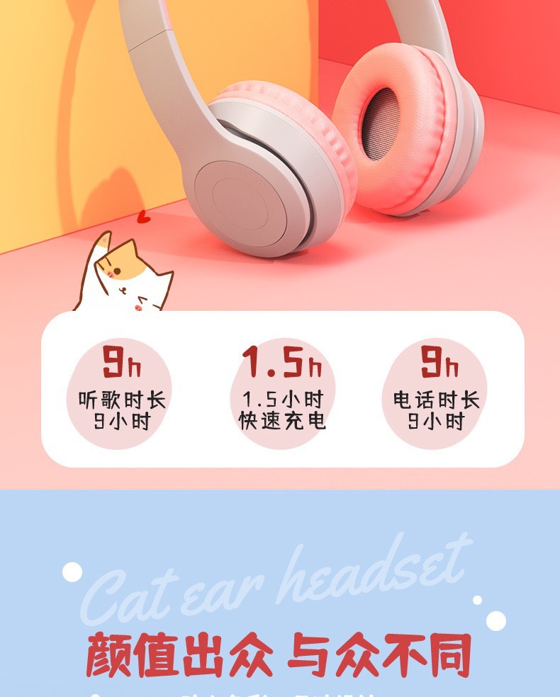 새로운 P47M 헤드 장착 고양이 귀 블루투스 헤드셋 빛나는 고양이 귀 무선 헤드셋스토어 가기