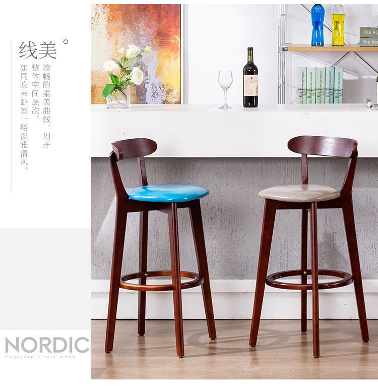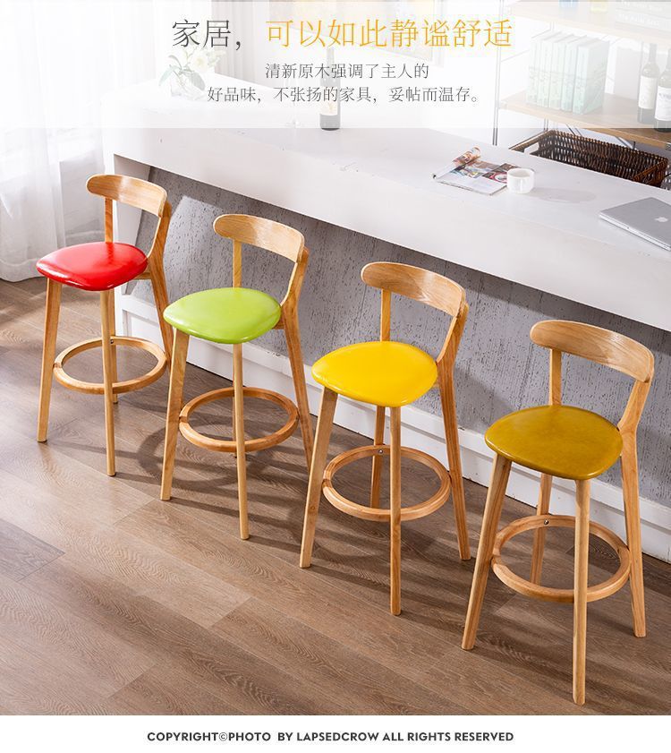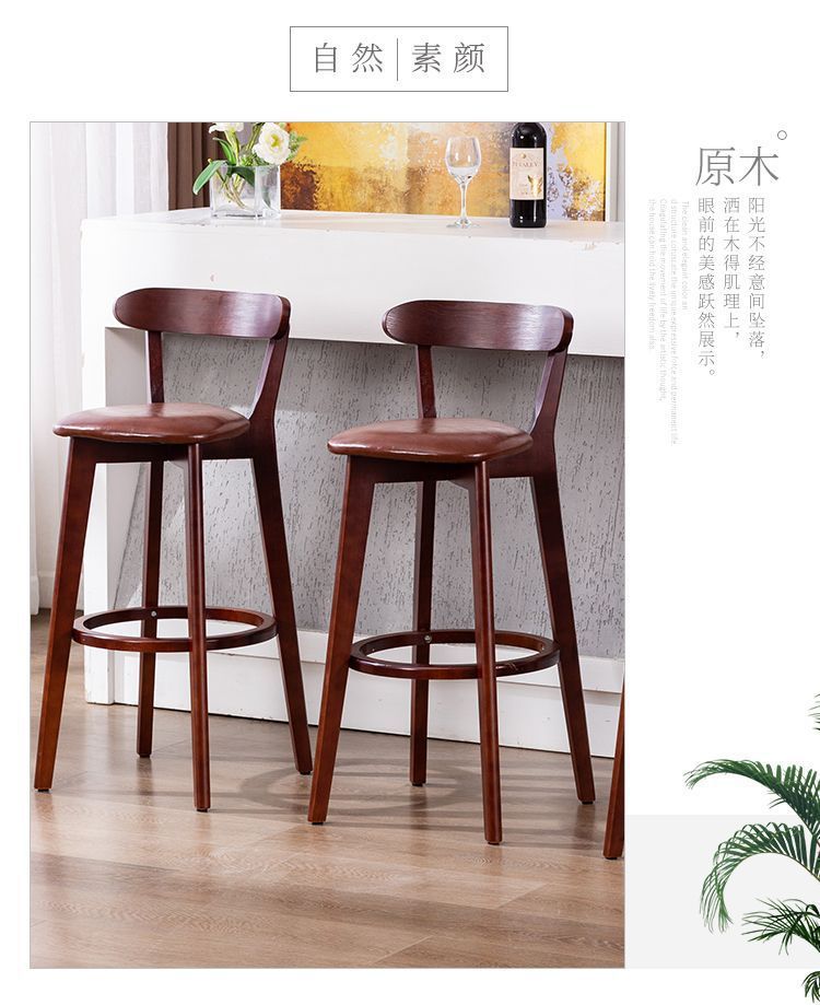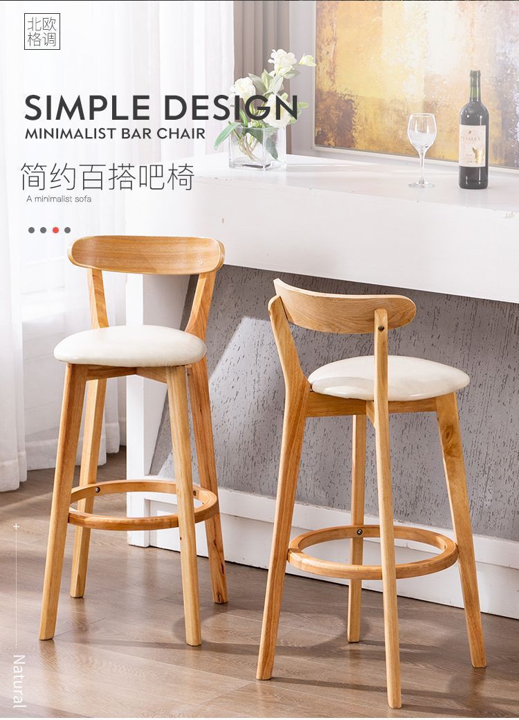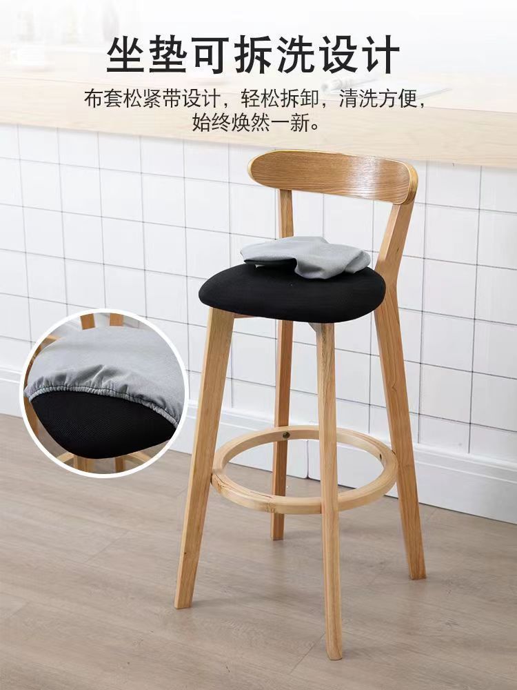 북유럽 솔리드 우드 바 의자 홈 등받이 하이 바 의자 현대 간단한 우유 차 가게 카페 프론트 데스크 바 의자