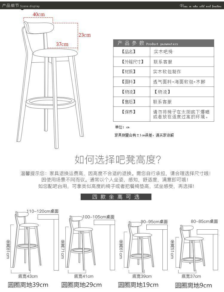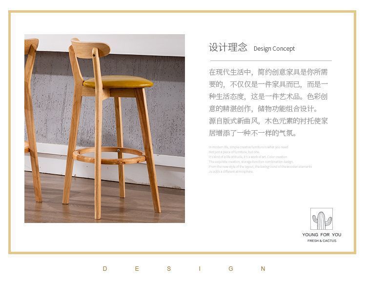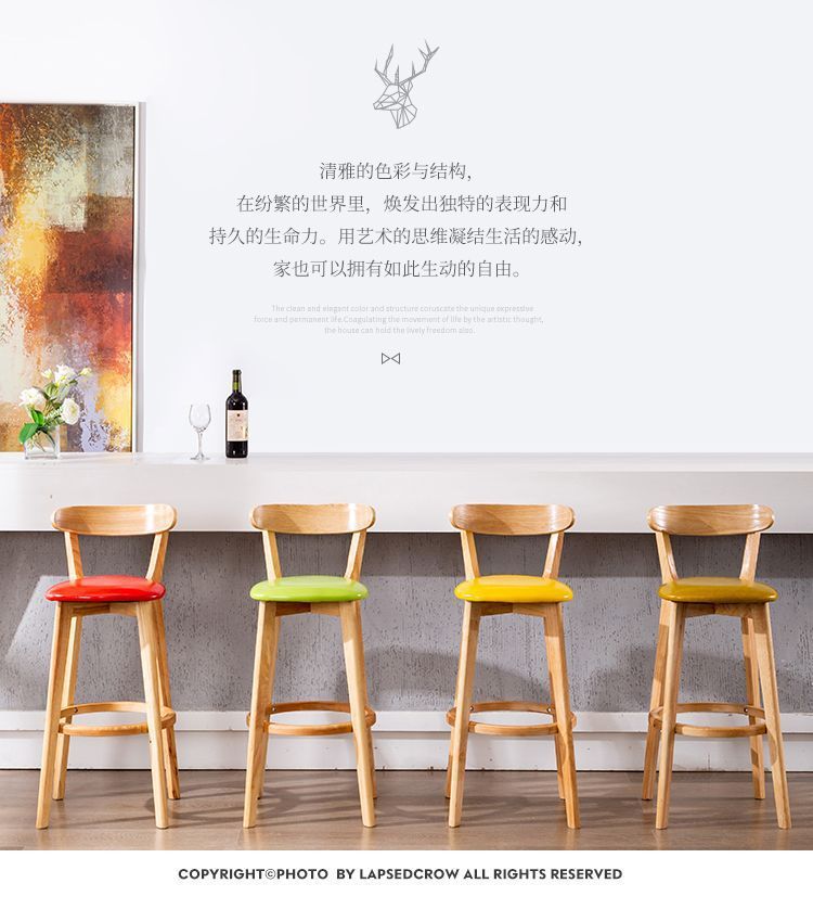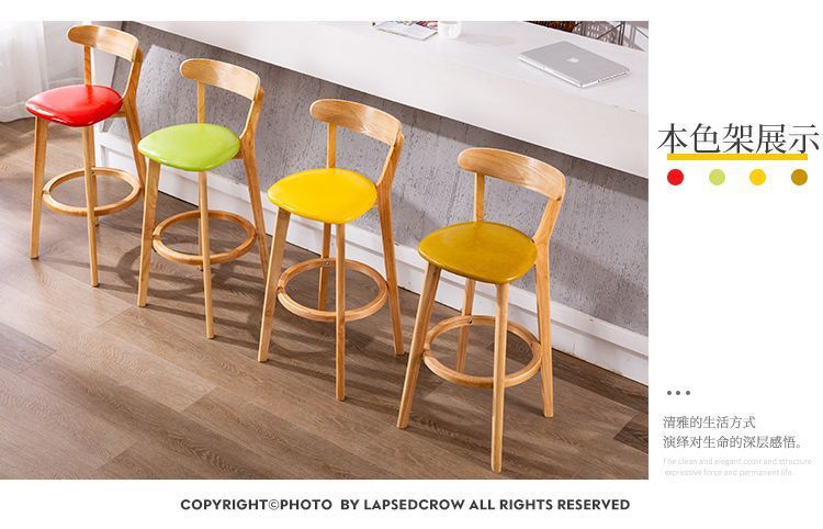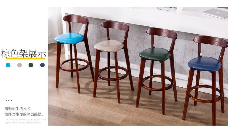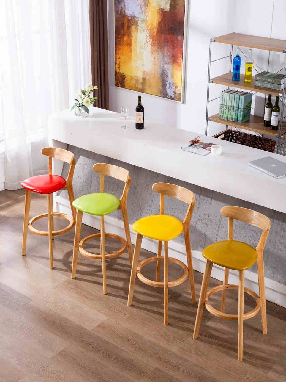북유럽 솔리드 우드 바 의자 홈 등받이 하이 바 의자 현대 간단한 우유 차 가게 카페 프론트 데스크 바 의자