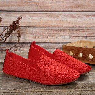대외 무역 플러스 사이즈 2024 새로운 광장 헤드 플랫 바닥 비행 캐주얼 신발 직조 여성 국경 신발