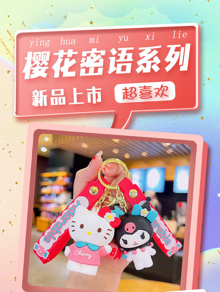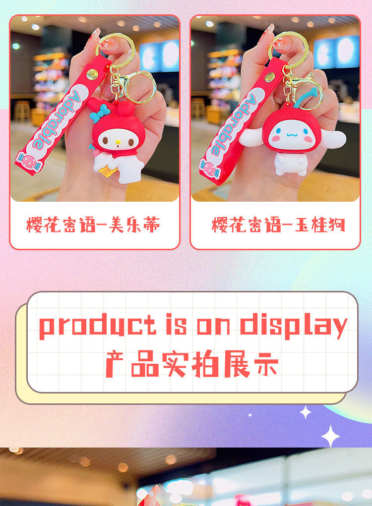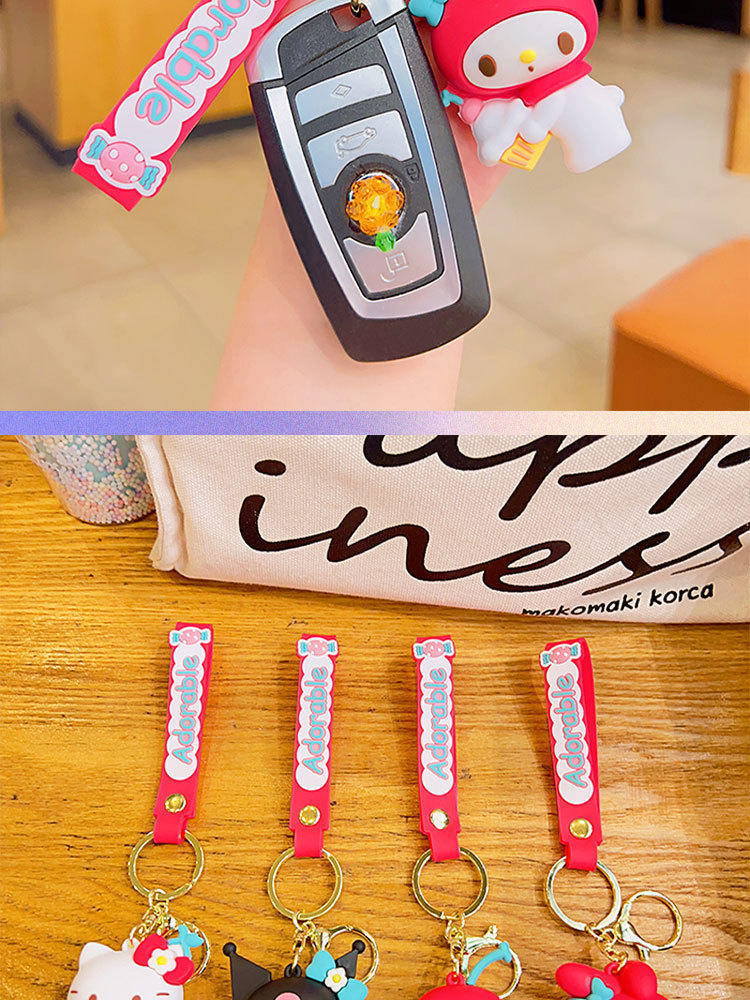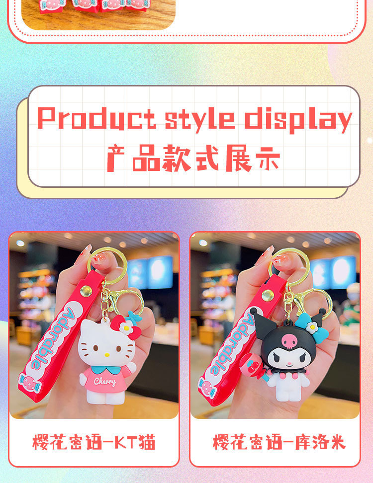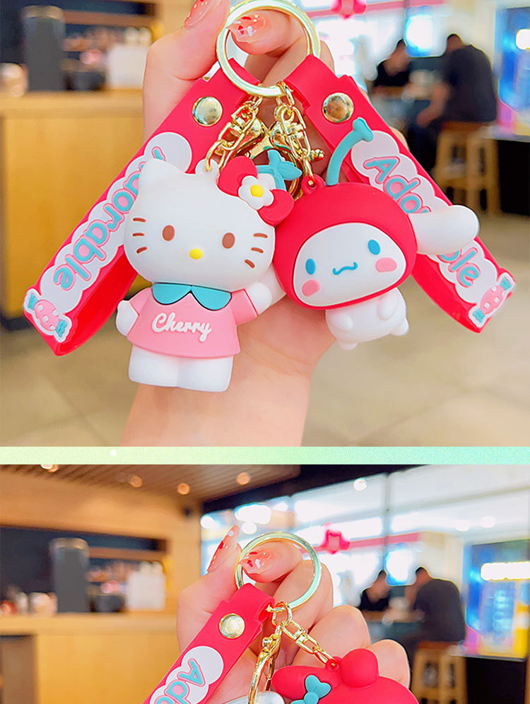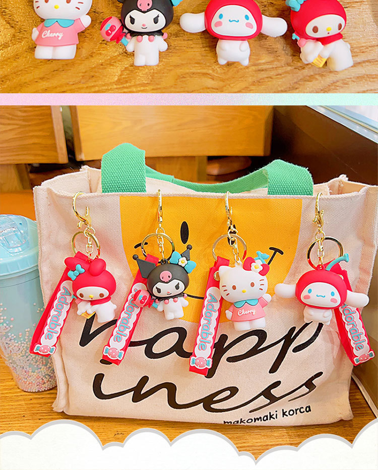 그물 빨간 체리 속삭임 산리오 키 체인 귀여운 KT 고양이 쿨로 미 펜던트 자동차 키 체인 작은 선물 배치스토어 가기