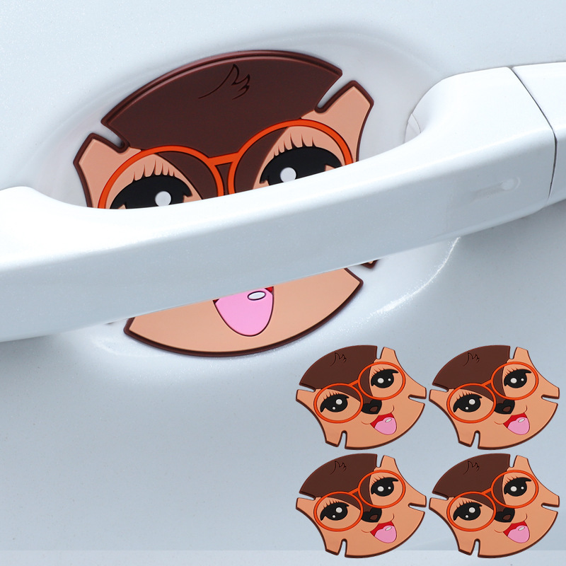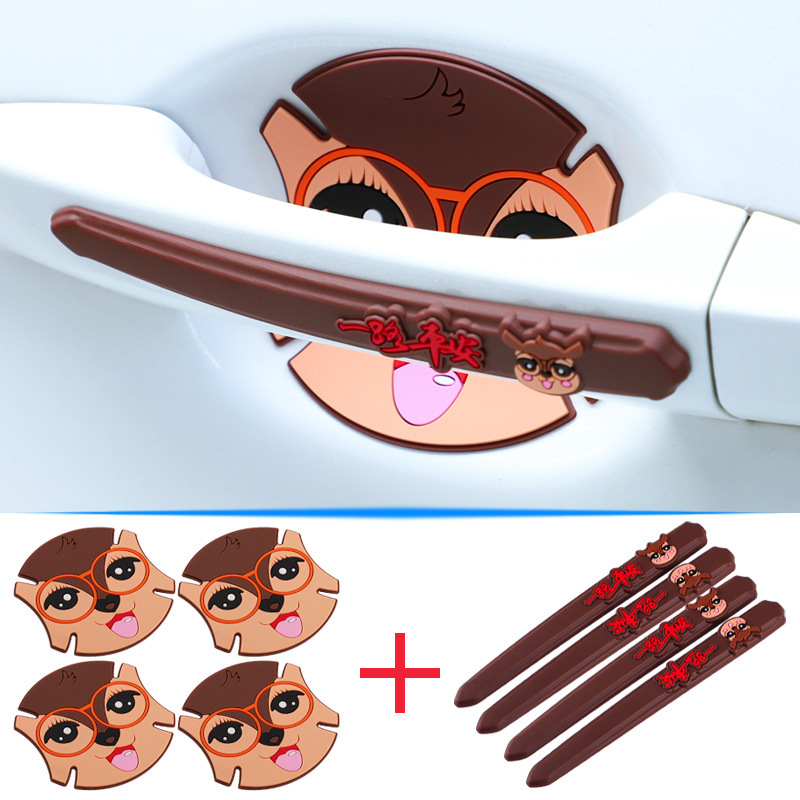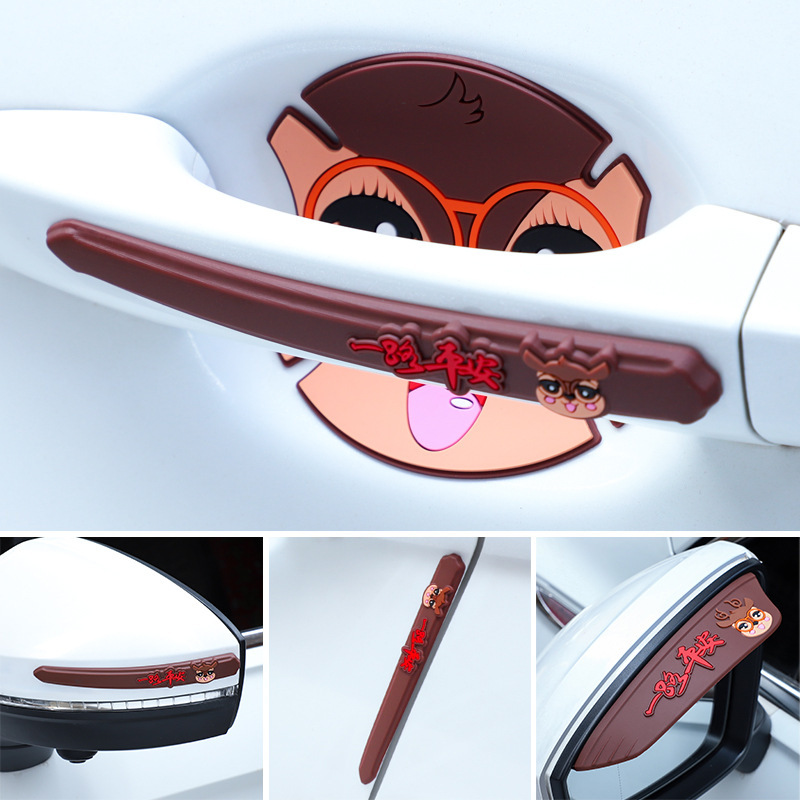 자동차 도어 보울 스티커 도어 충돌 방지 스트립 도어 핸들 안티 스크래치 스트립 백미러 장식 만화 핸들 필름 용품